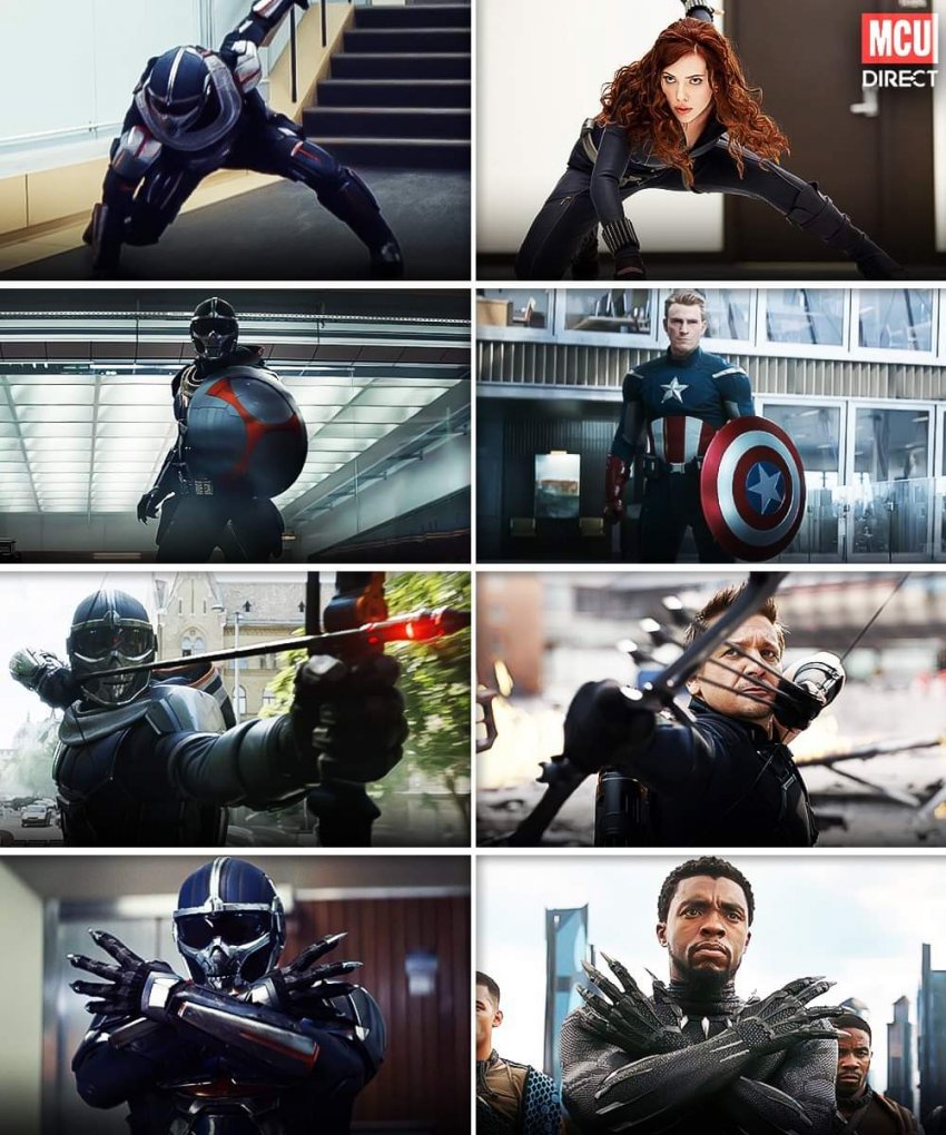블랙 팬서의 발톱 때문에 이 자세를 블랙 팬서의 동작으로 착각할 수 있지만, 이렇게 팔을 뻗는 자세는 스파이더맨의 자세와 유사한데, 블랙 위도우의 움직임 카피한 것이라는 의견도 있습니다.