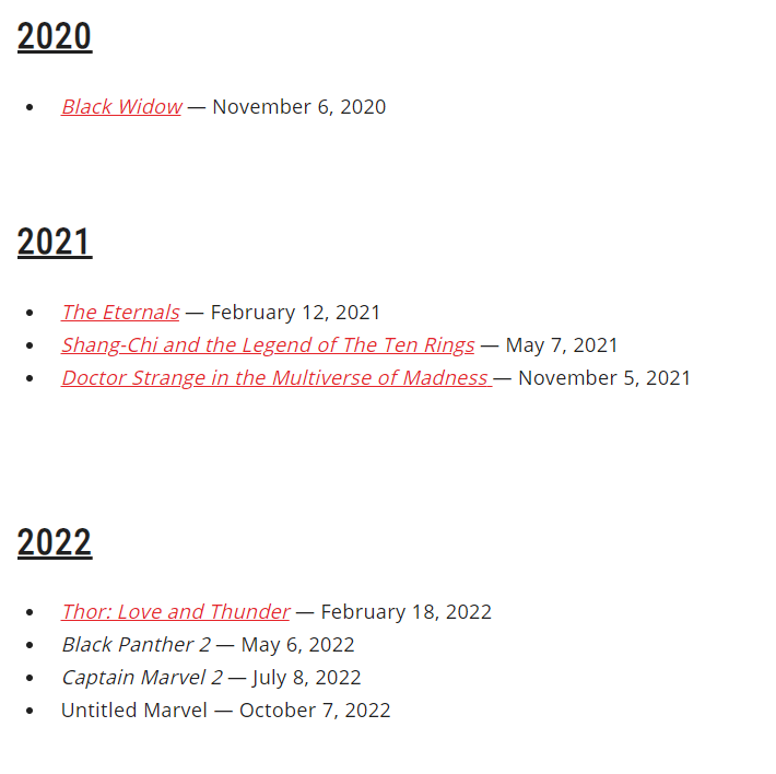이와 함께, <블랙 위도우> 이후 개봉될 페이즈 4 영화들의 리스트 역시 추가로 공개되었습니다.