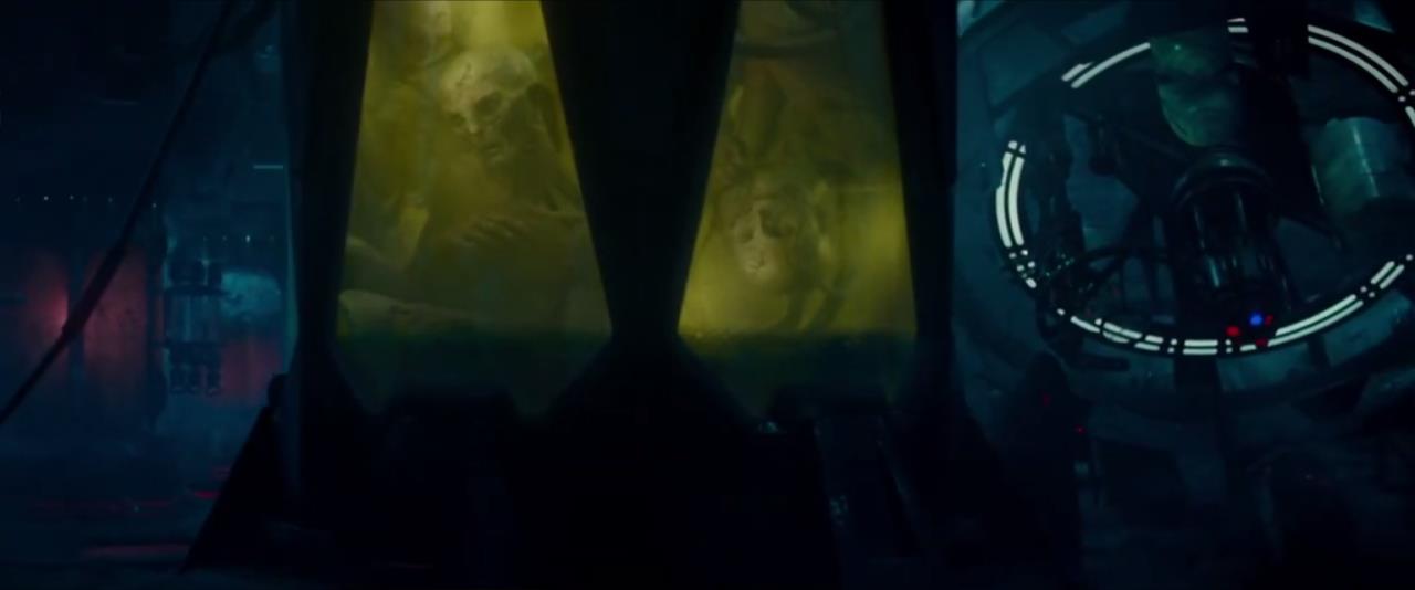 영화 <스타워즈: 라이즈 오브 스카이워커>의 도입부를 장식하는 퍼스트 오더 최고 지도자 카일로 렌과 구 은하 제국의 황제이자 현 시스 이터널과 파이널 오더의 수장인 다스 시디어스/쉬브 팰퍼틴이 만나는 장면입니다.