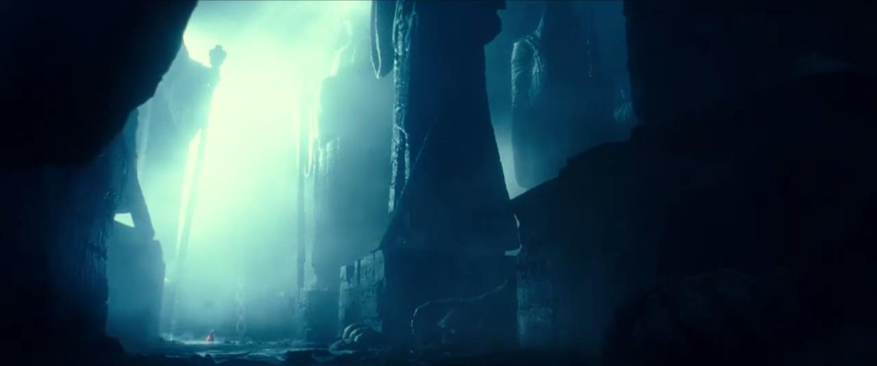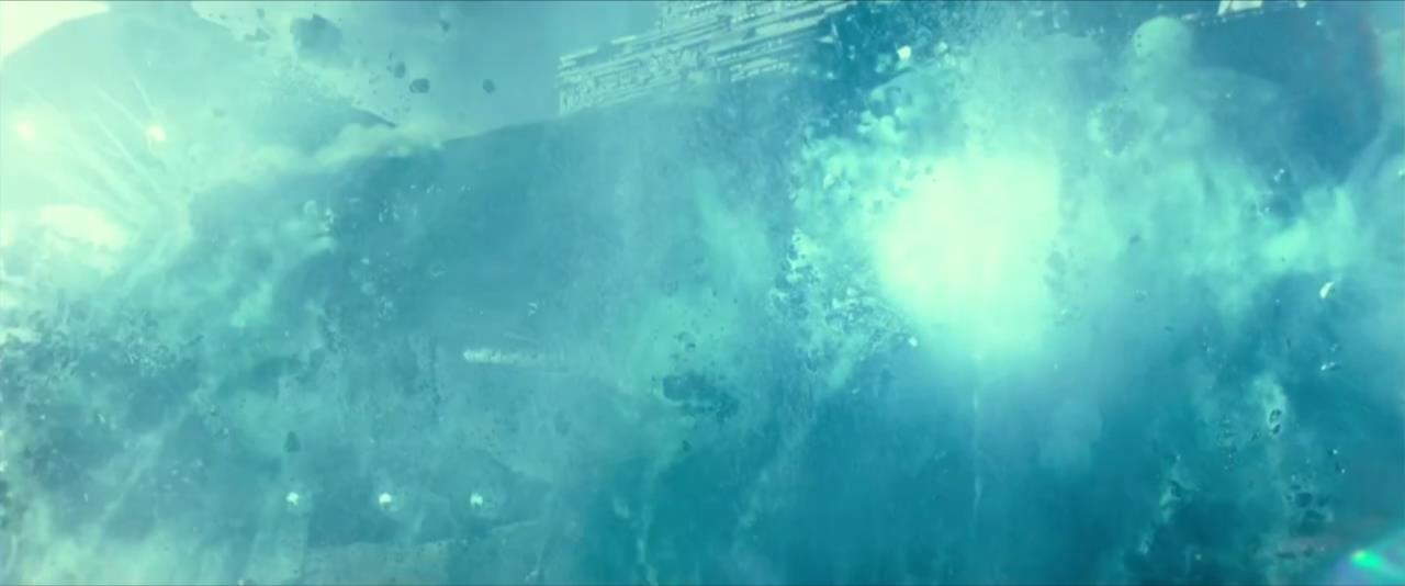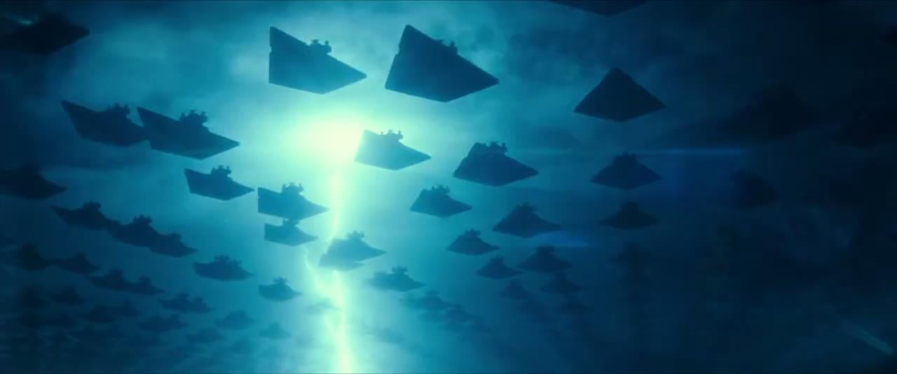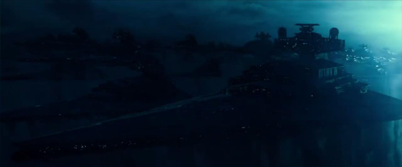예고편이 처음 나왔을 때는 수면 위로 떠오르는 인상이었지만, 실제론 뚫고 나오는 자이스턴급 스타 디스트로이어들.