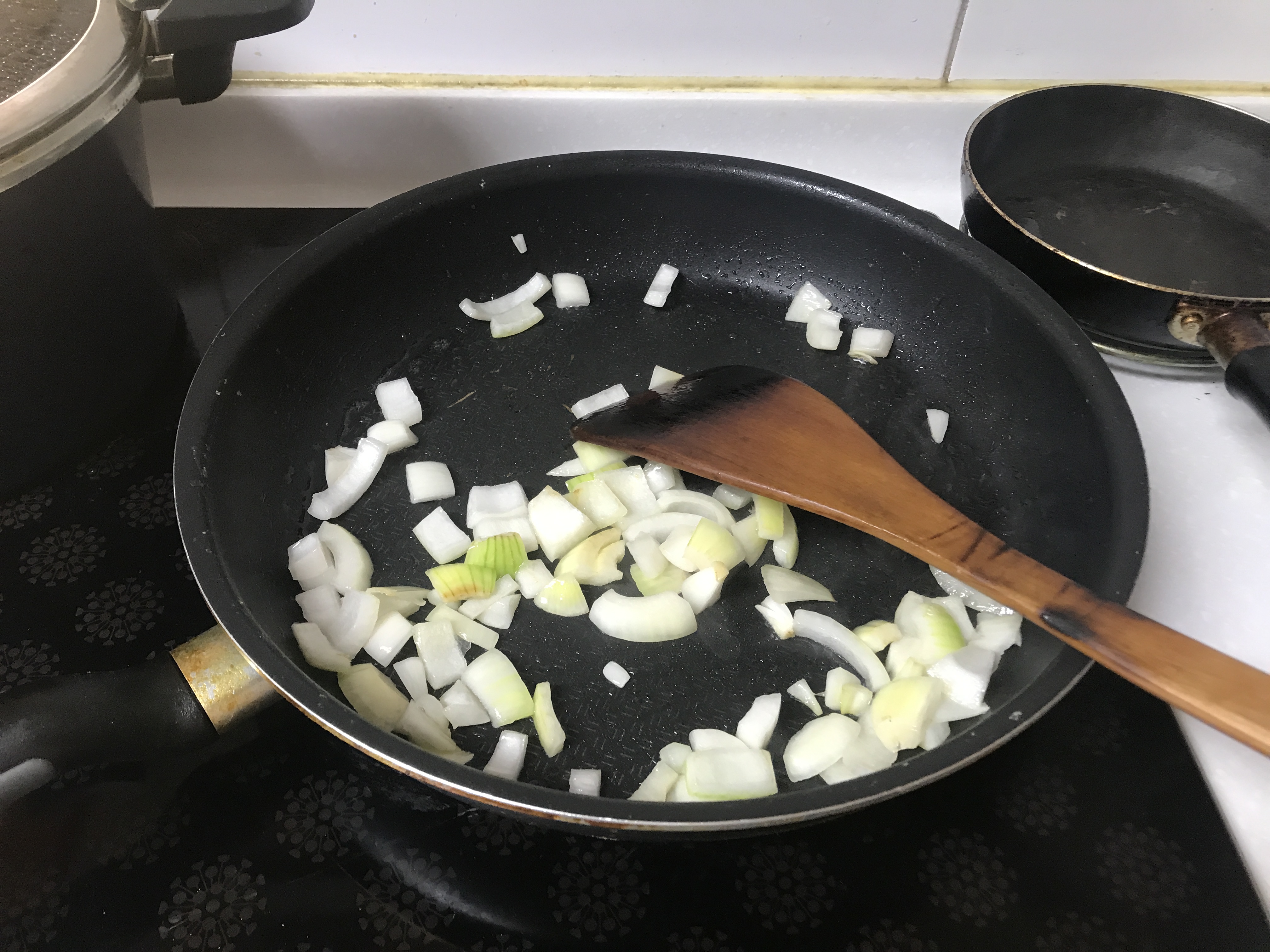 그 다음 양파를 먼저 볶습니다.