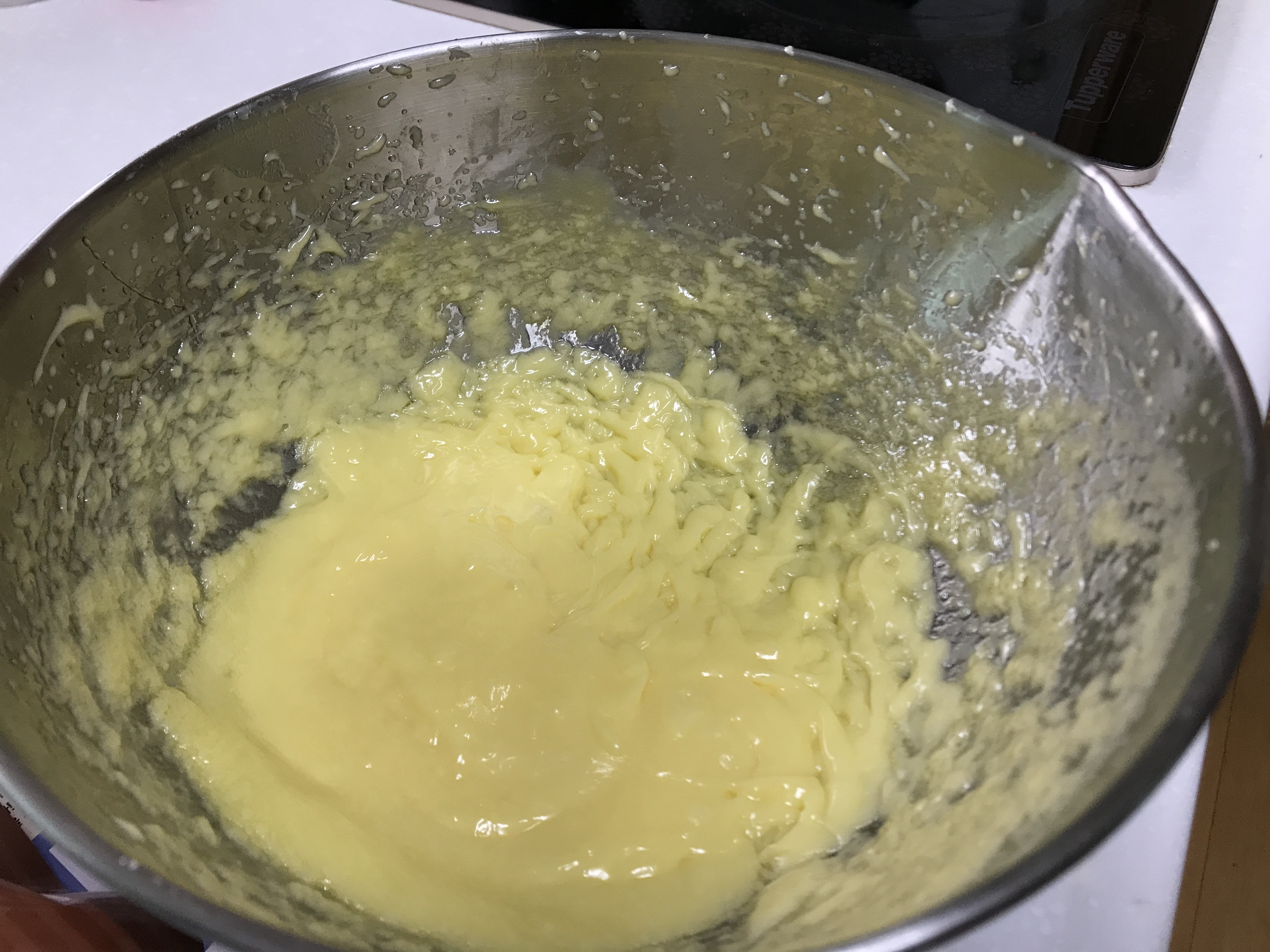 버터는 100g 정도를 넣고 계란 하나, 올리고당을 투입.