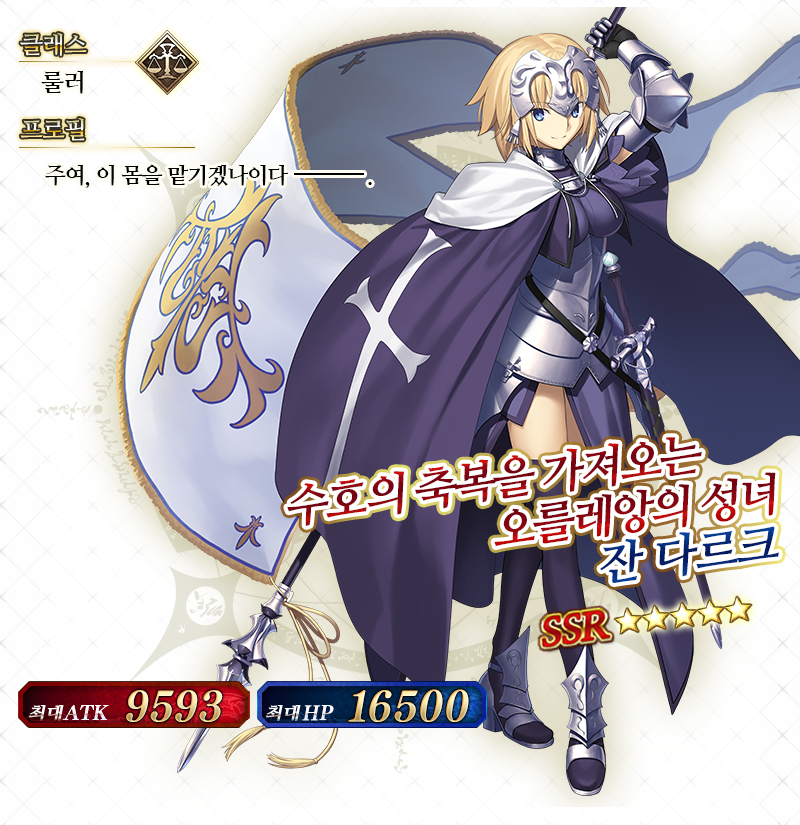 검 디자인이 무지 이쁘지만, 잔 다르크는 생전에 검을 무기로 사용하지 않았다는 기록이 있는 만큼, 일종의 상징물에 가까운 물건. 검 디자인이 꽤 이쁜 편이라 휘두르는 모습이 없다는 게 아쉽습니다.