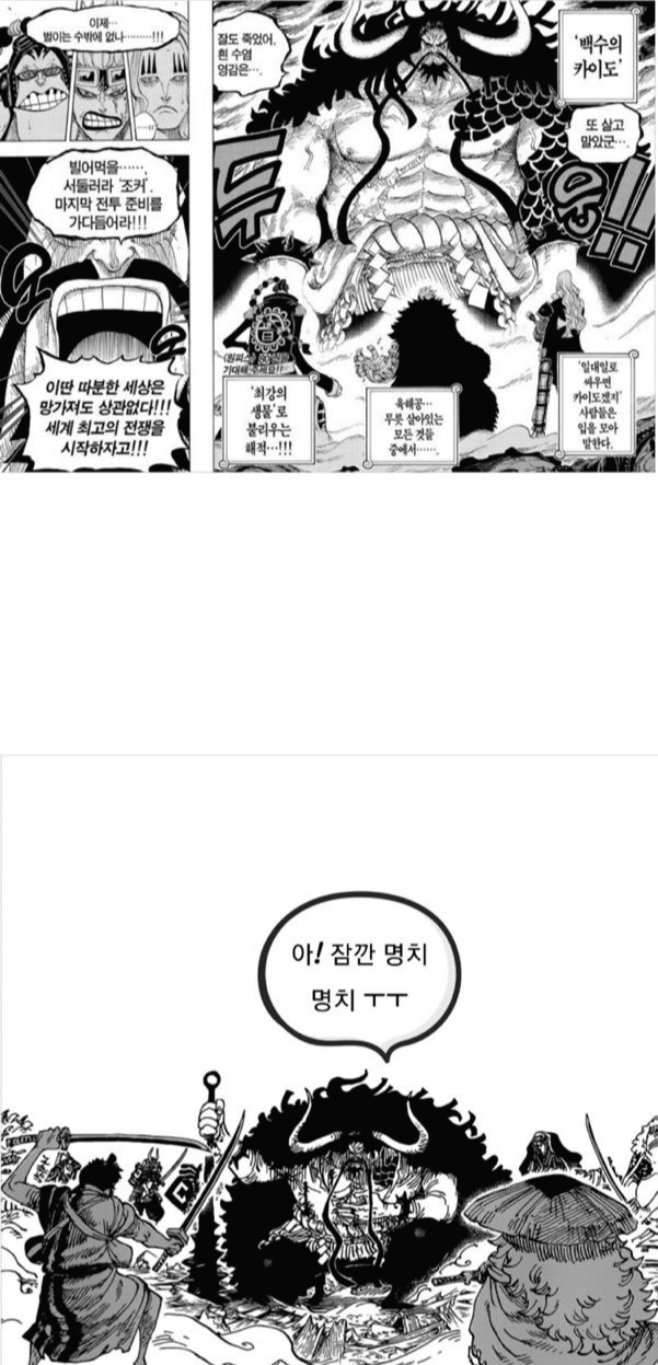솔직히, 코즈키 오뎅한테 상처난 건 그래도 (사황되기 전의) 동급이거나 더 강한 상대인만큼 카이도가 상처 입을 수 있다로 납득하곤 있습니다.