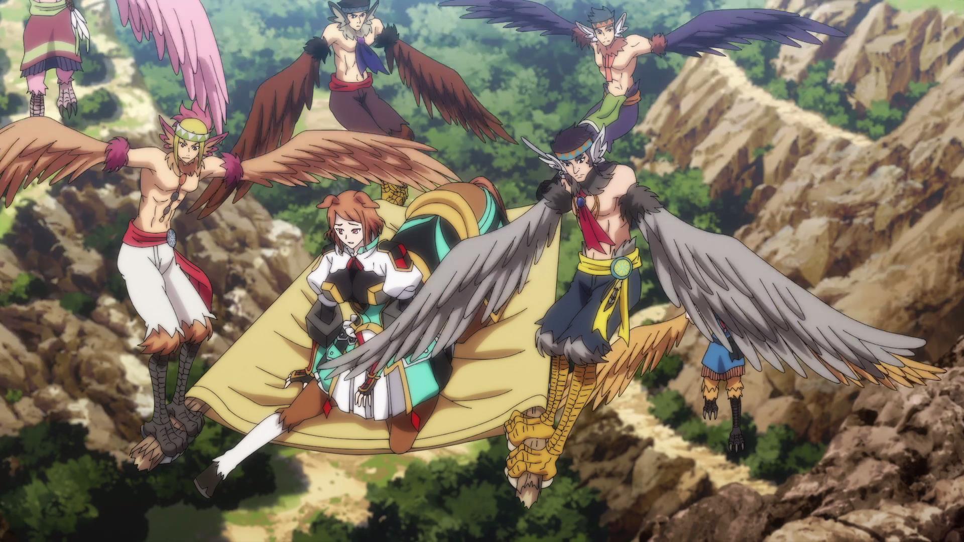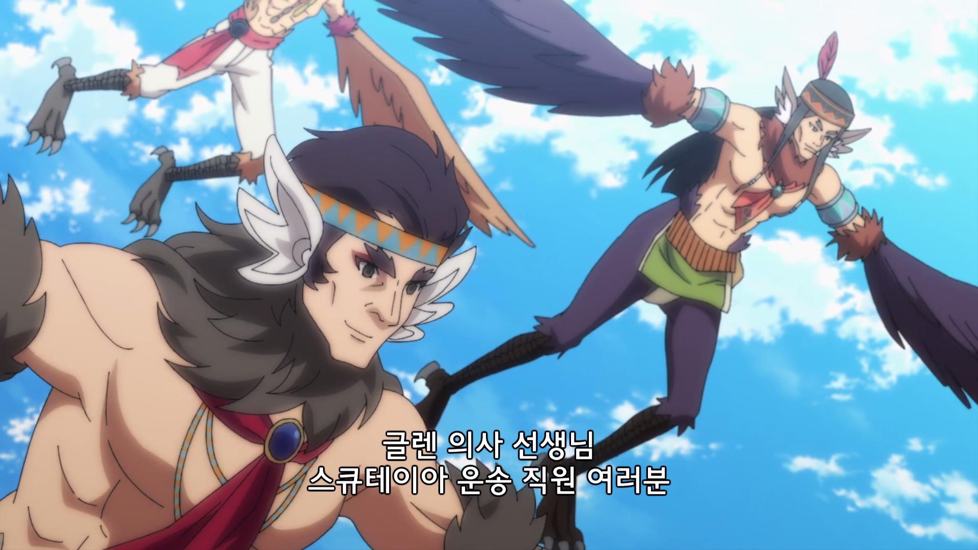 부상 당한 케이를 먼저 마을로 옮겨달라 부탁하는 그렌. 하피들의 힘이 보기 보다 상당한지 남성 하피 넷이서 켄타우로스인 케이를 들어 올립니다.