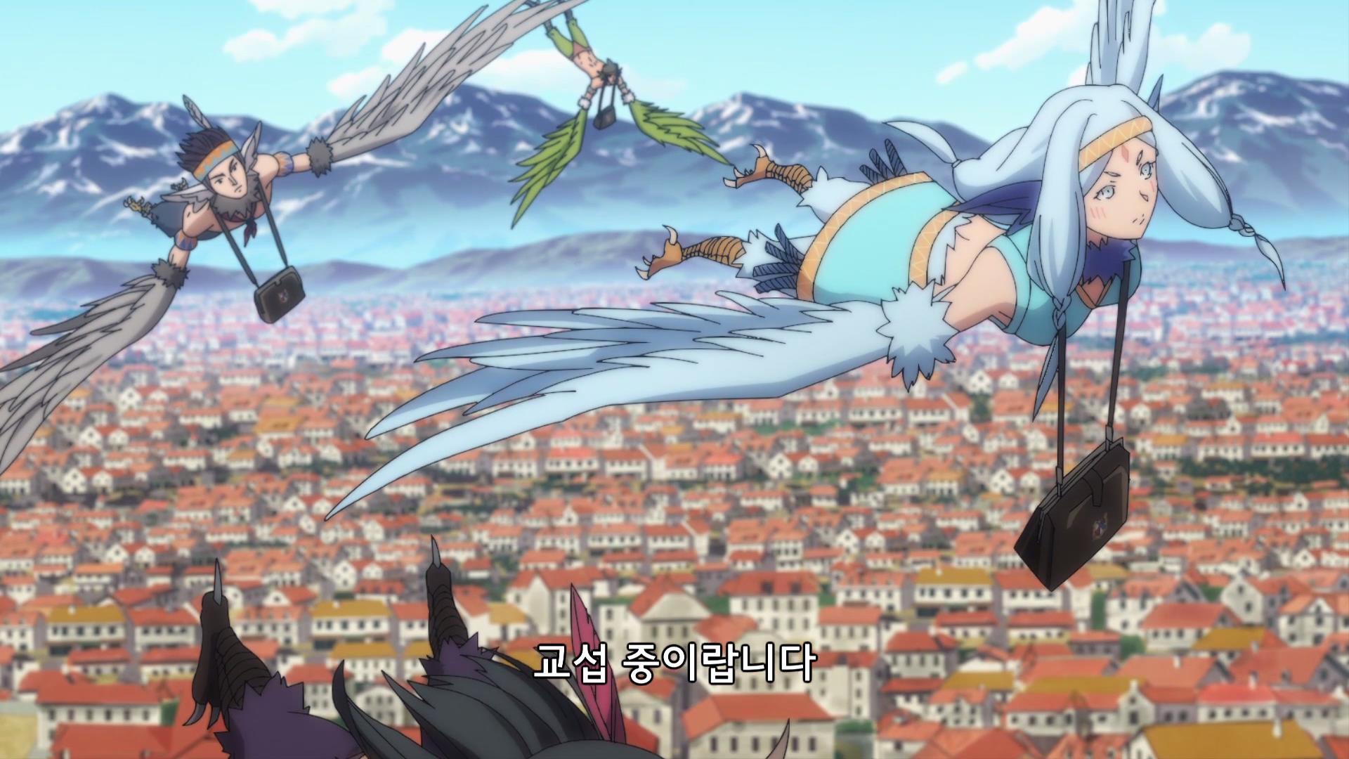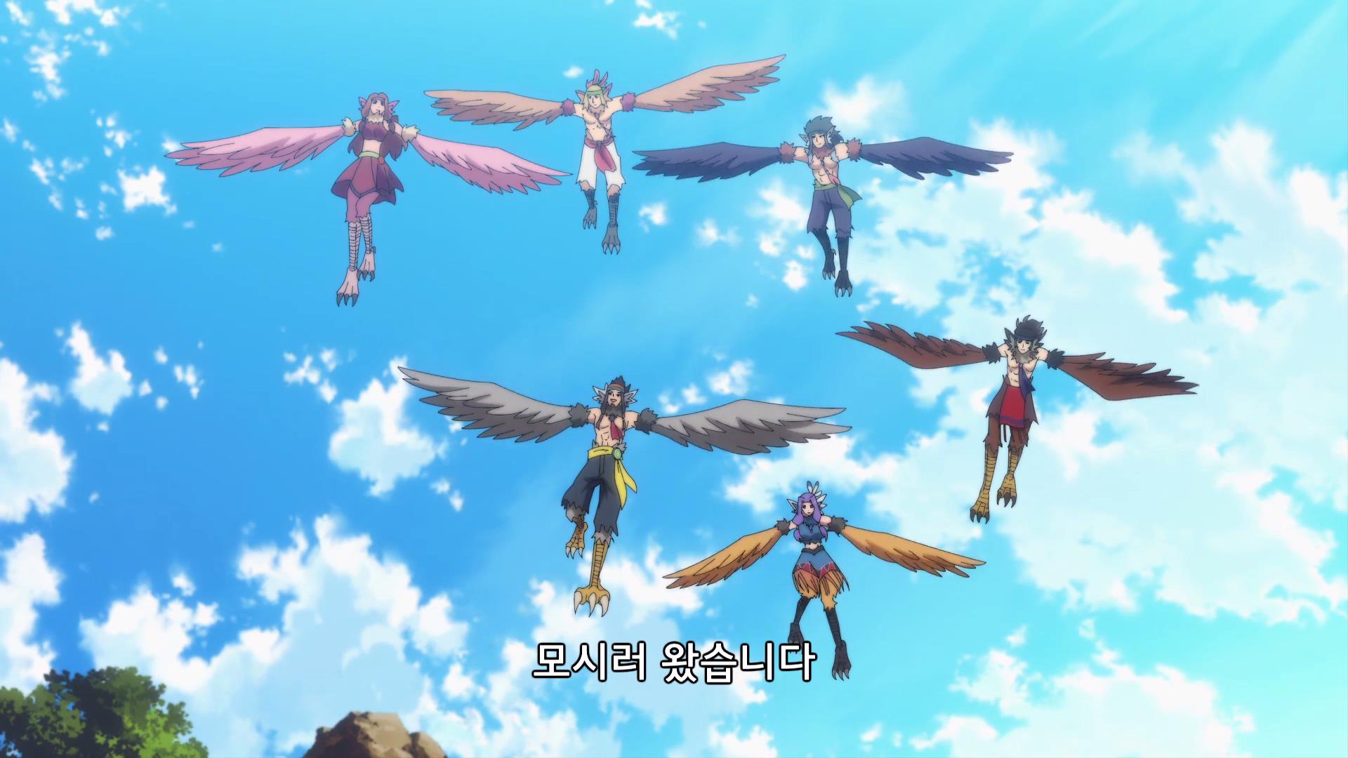 때마침, 그렌과 스큐티아 운송을 마중 나온 하피들.