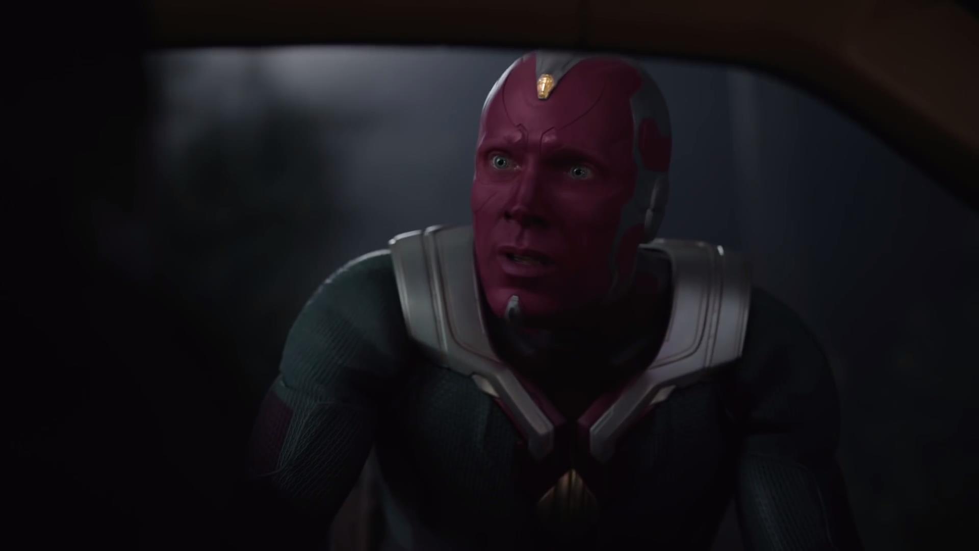 완다의 마법(?)으로 일반인의 모습을 취하게 된 비전.