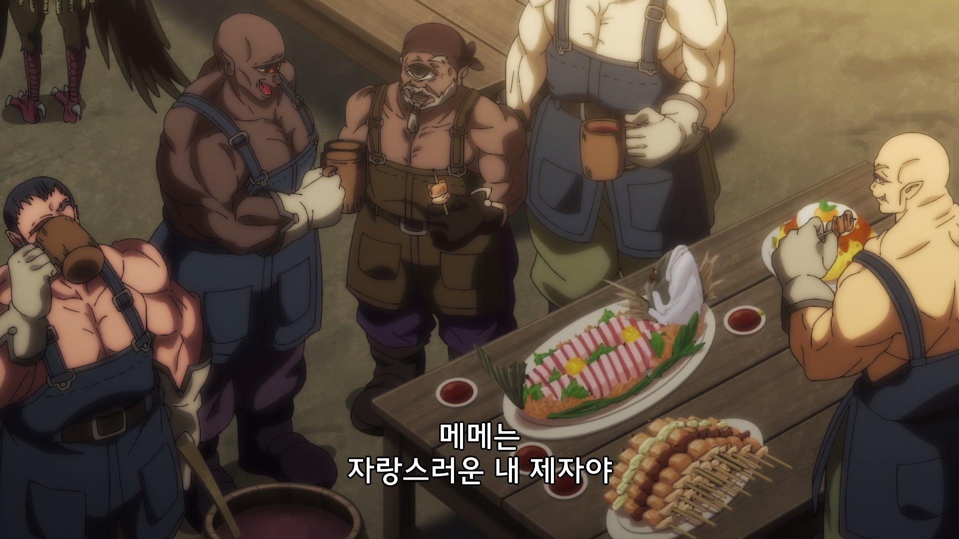 거기에 키클로 공방의 공방장과 메메를 비롯한 장인들도 진료소에 찾아왔습니다. 모처럼 받은 술이니 나눠 먹자는 공방장님과 폐를 끼치는 거 아닐까 걱정하는 메메.