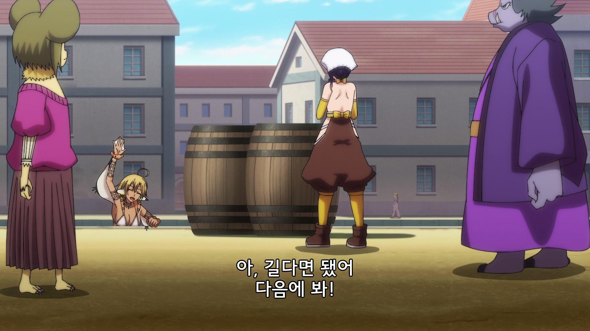 스카디와 엮여 깜빡하고 있던 왕진이 생각난 그렌. 급히 가야하는 탓인지 메메에게 술통을 지켜달라며 자리를 뜹니다.
