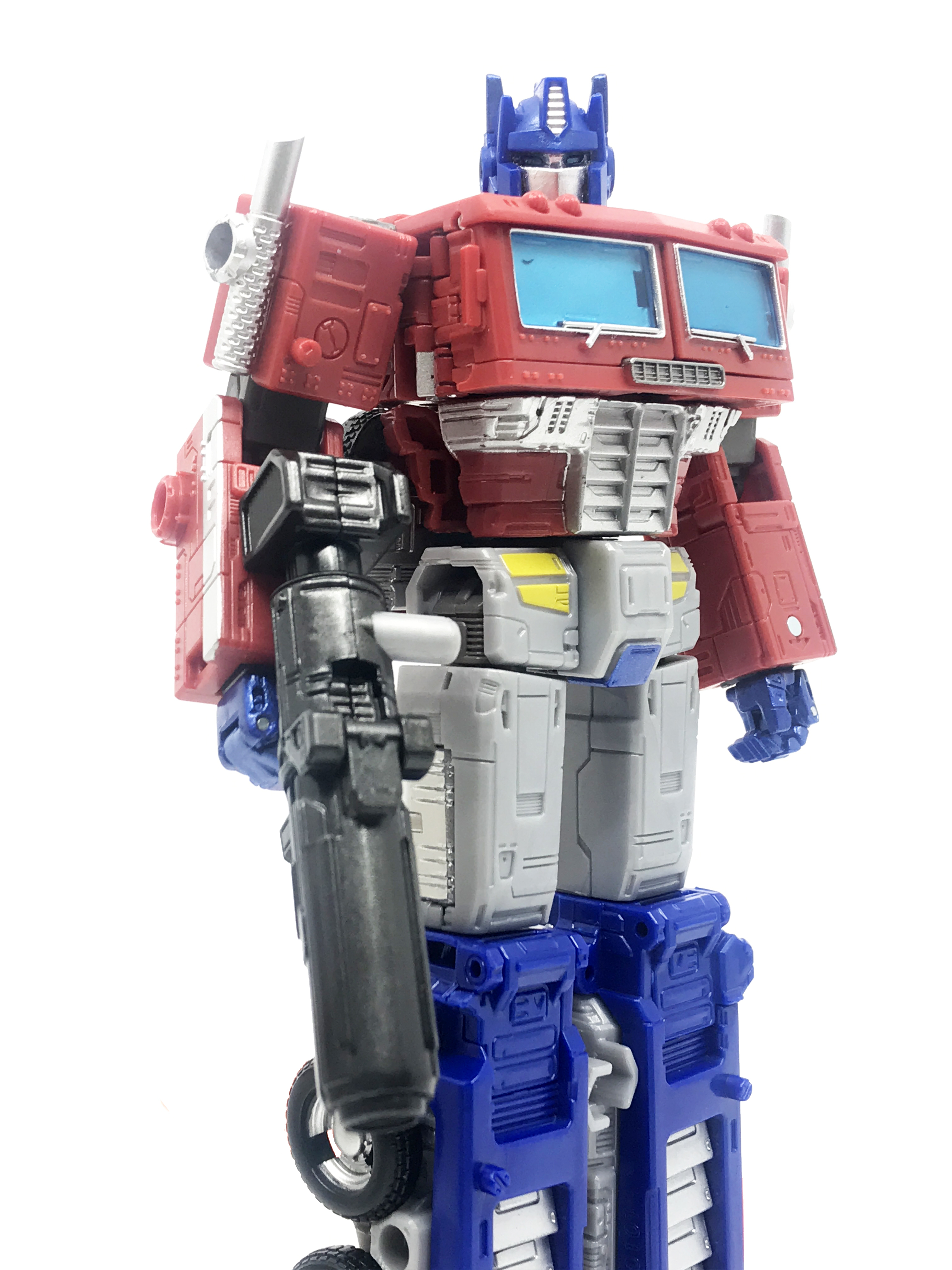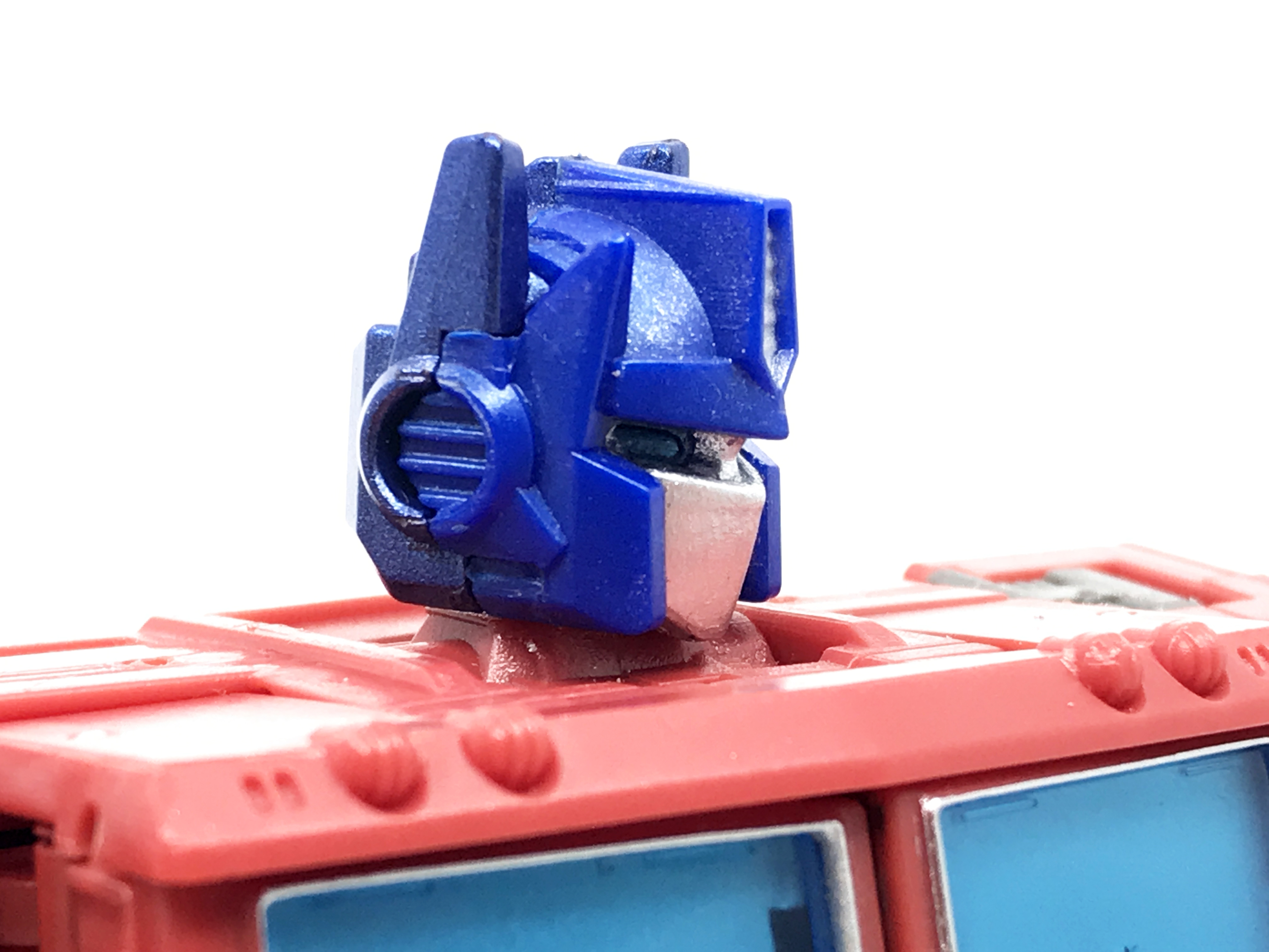 <트랜스포머: 워 포 사이버트론 트릴로지> 기반의 제품 어스라이즈 리더급 옵티머스 프라임은 전작 시즈 옵티머스 프라임과 달리, 눈 주변의 도색이 생략된 것이 아쉬운 점이 큽니다. 옵티머스 프라임의 눈 주변 도색이 생략된 사례가 거의 없던 만큼, 안타까운 일이 아닐 수 없어요.