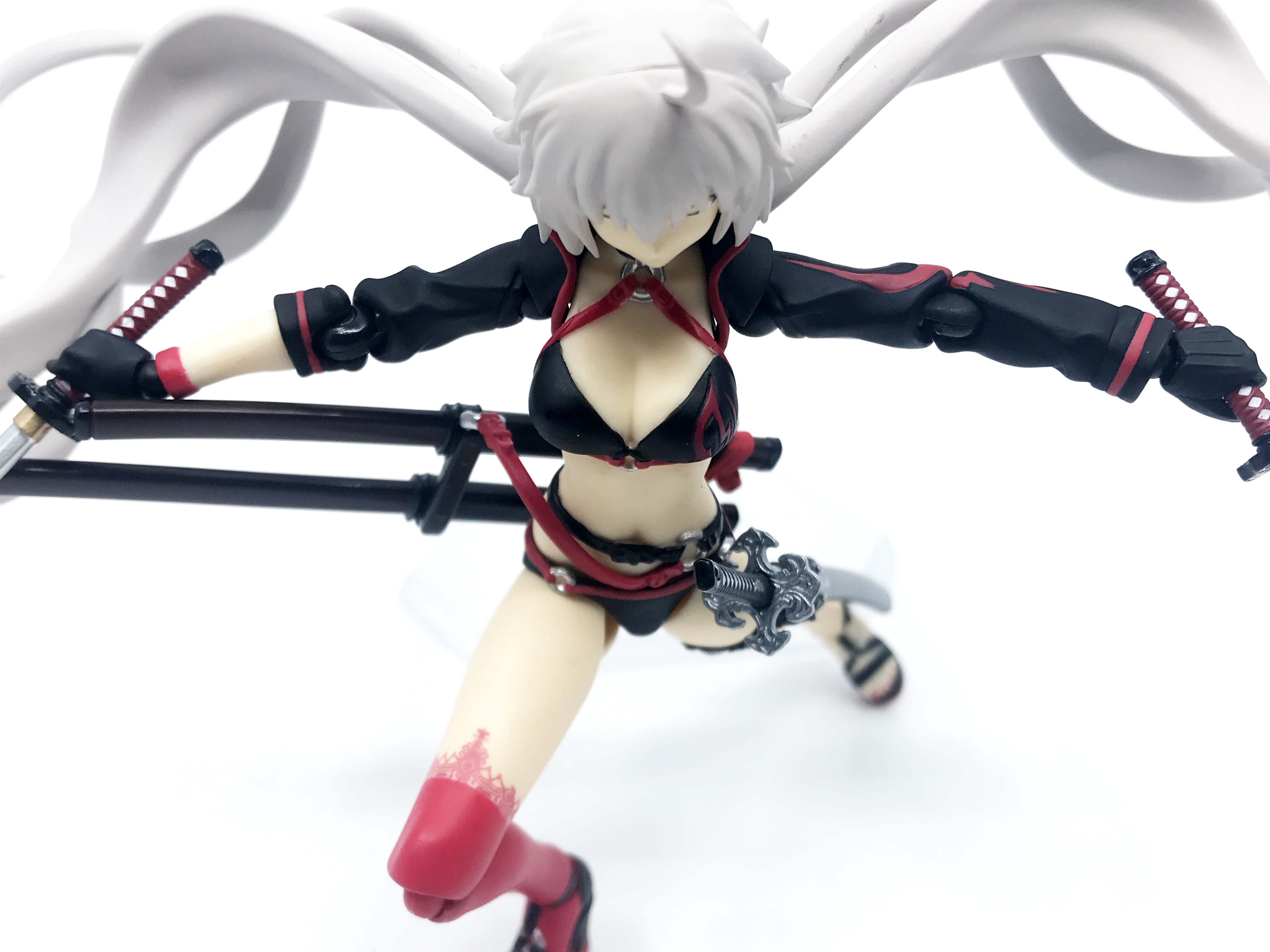 배포 서번트로 나온 만큼 별다른 배리에이션이 없지만, 최종 재림 한정으로 윗옷을 벗고 몸에 찬 칼들과 벨트, 장갑에 니삭스를 벗은 걸 확인할 수 있습니다. 물에 들어갈 때 장식들까지 착용한 체 들어가진 않나 봐요(…). 아쉽게도, 피그마 제품 특성상 장신구를 벗은 모습을 재현할 수 없습니다.