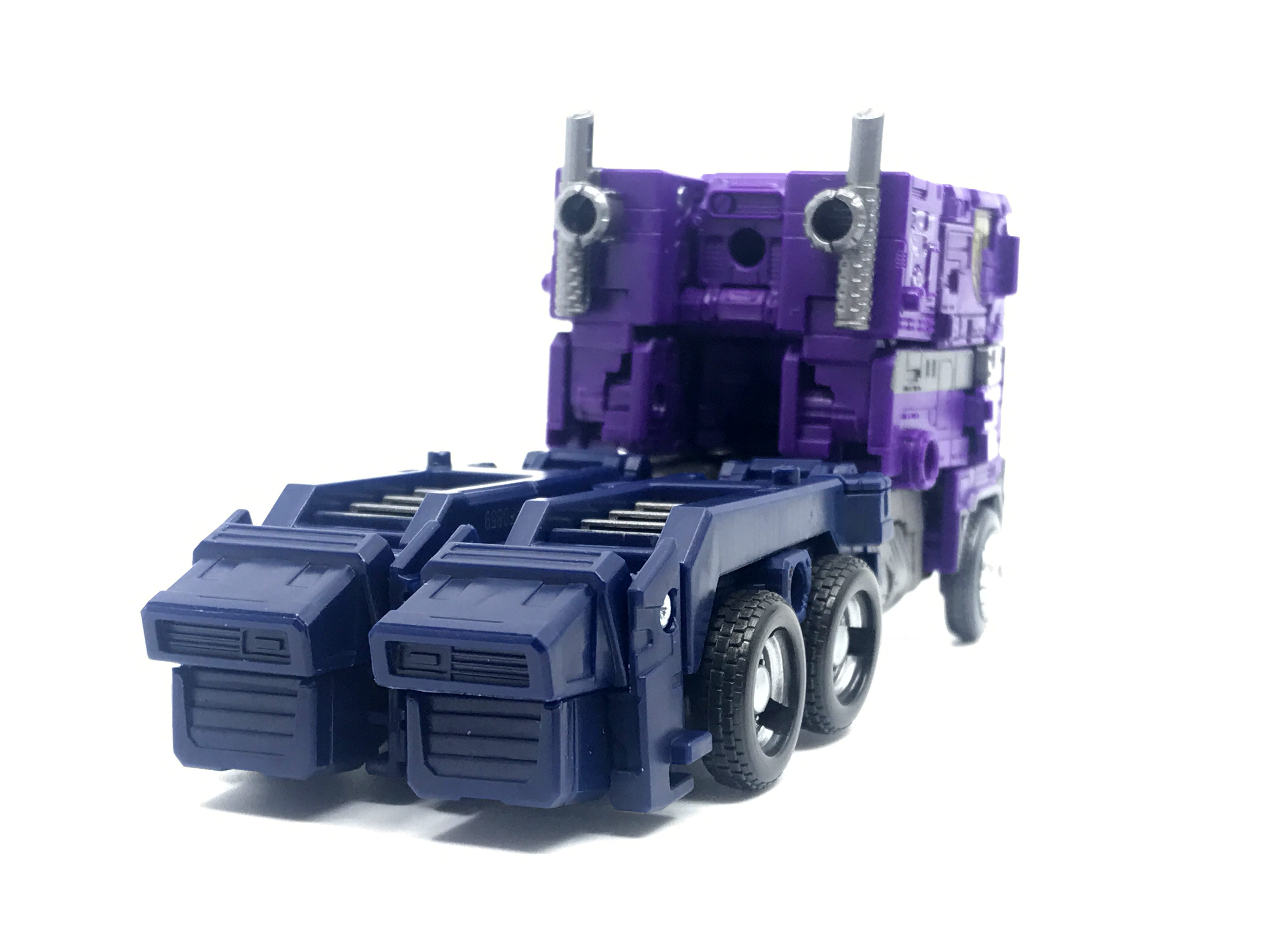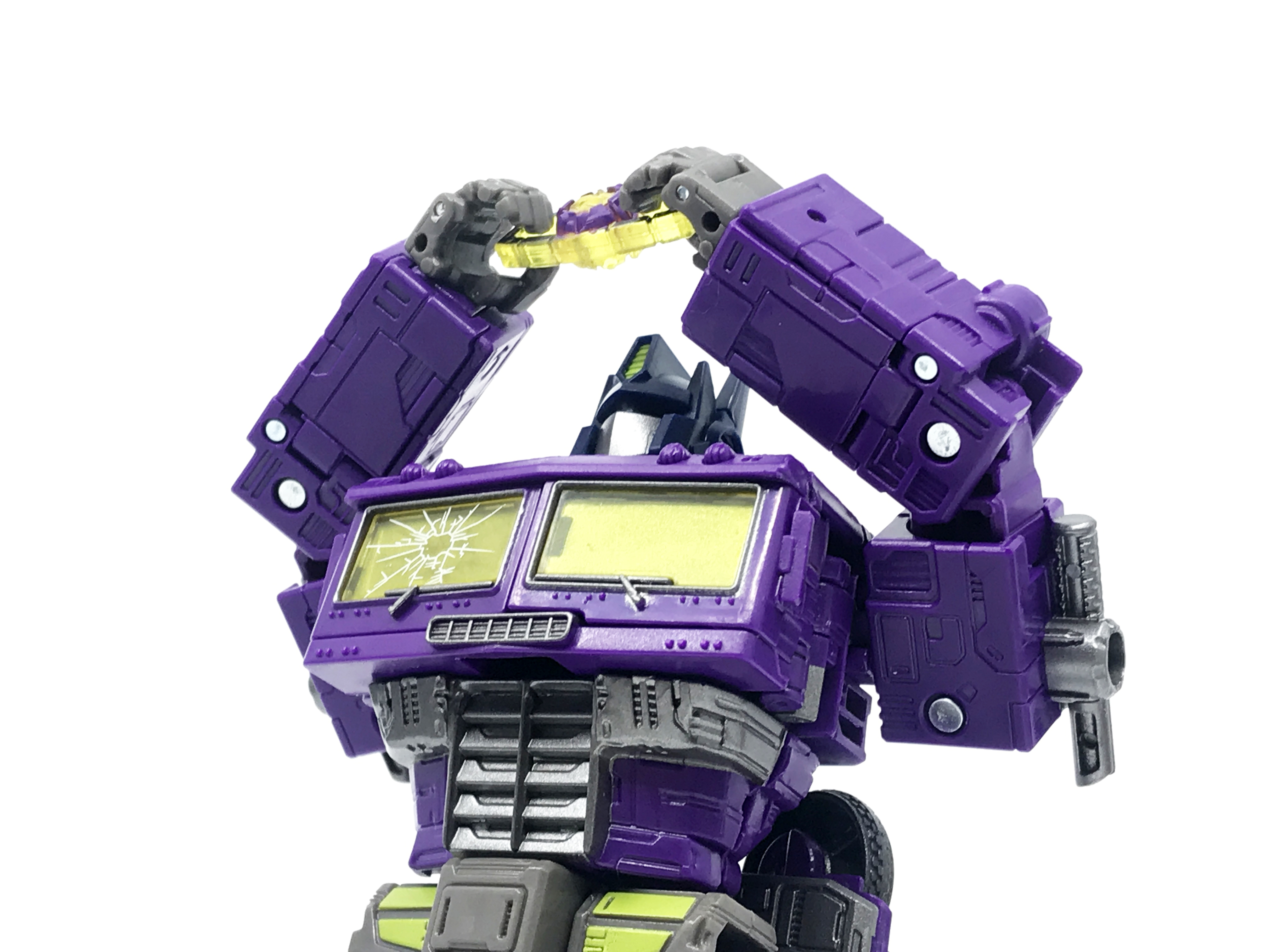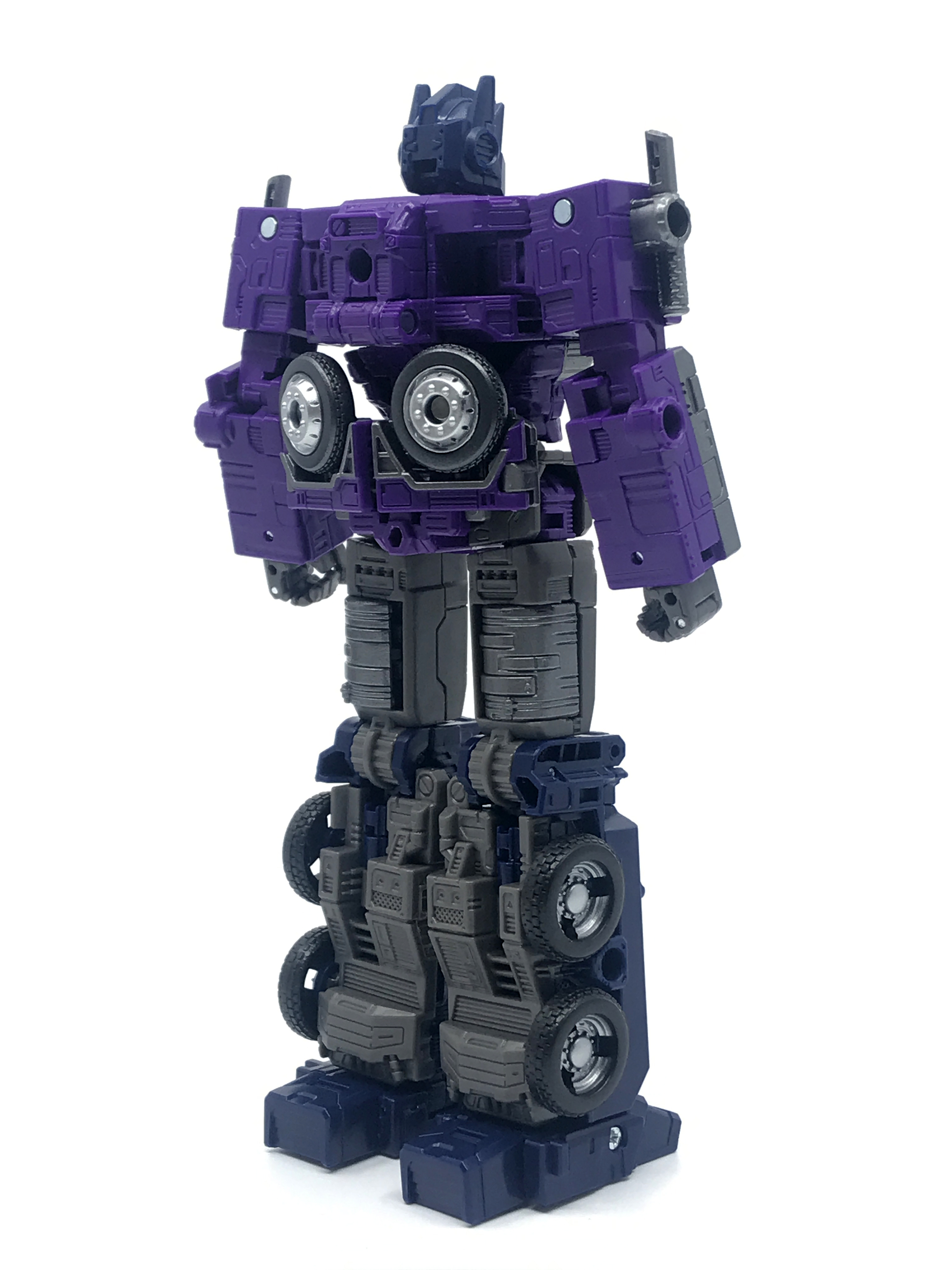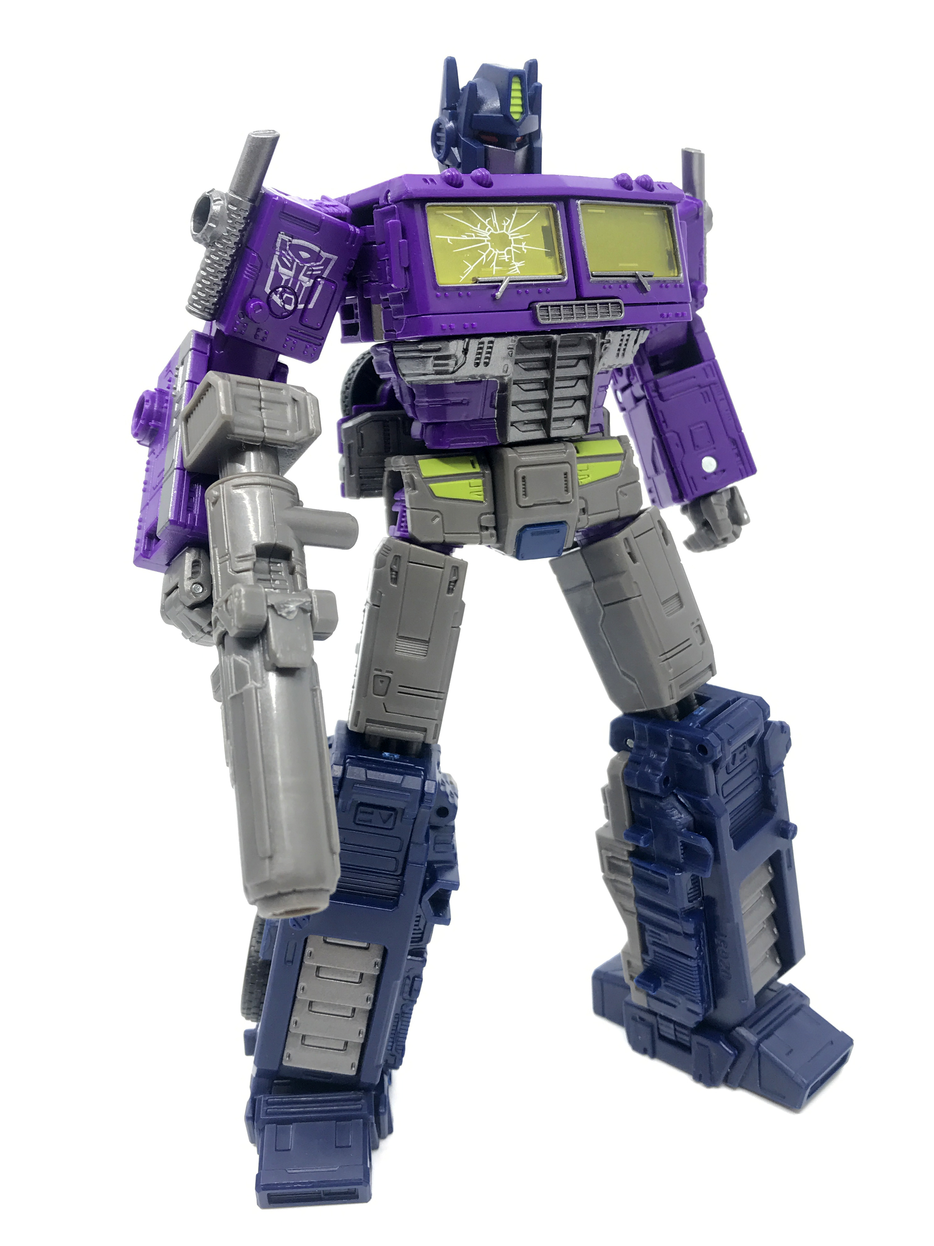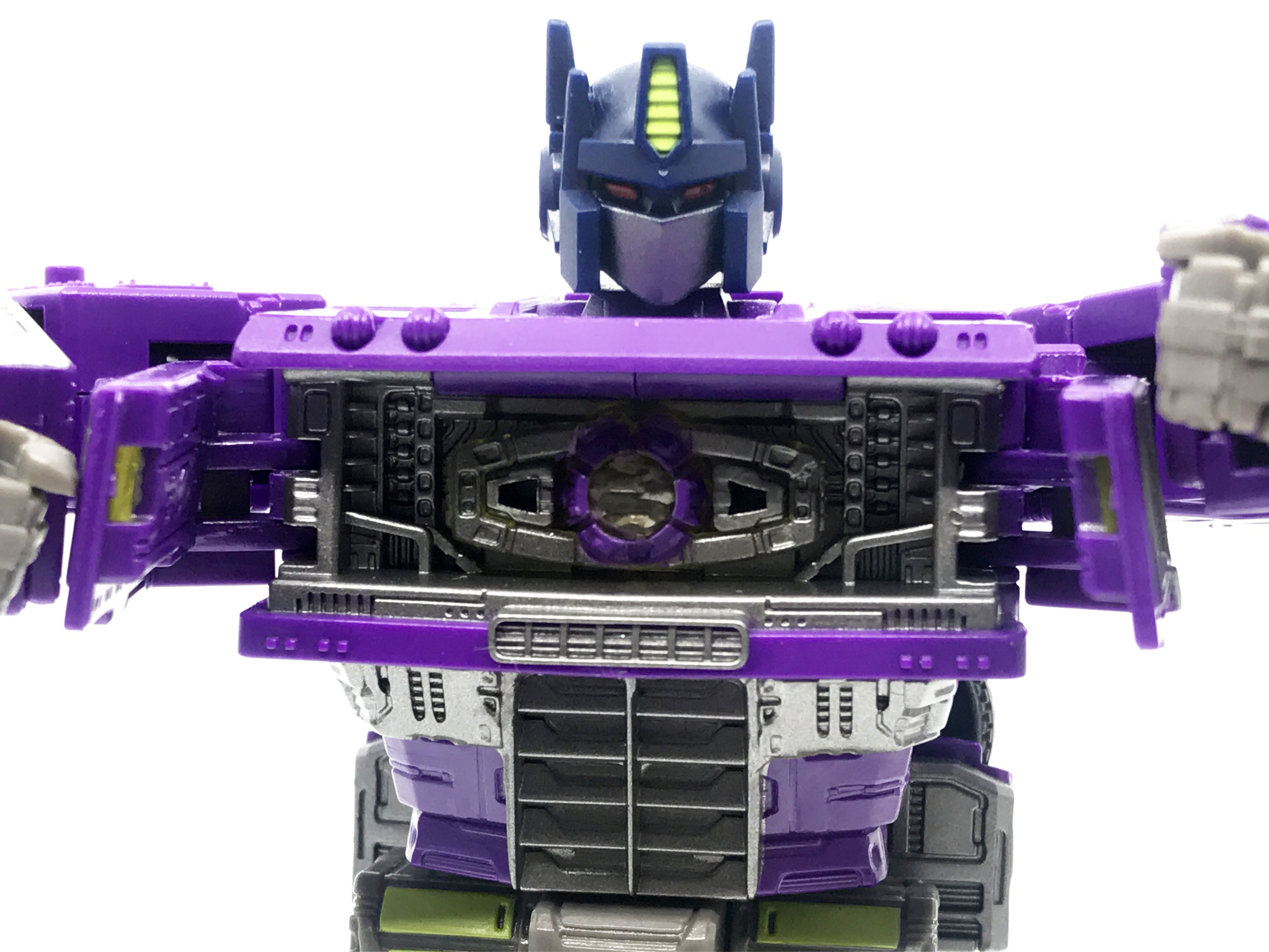 기존 옵티머스 프라임의 붉은색에서 자주색 트럭으로 변경됐고, 푸른 클리어 부품은 노란색 계열의 클리어 부품으로 변경됐습니다. 우측 창문엔 SG 옵티머스 프라임의 특유의 '깨진 유리 Shattered Glass'가 특징. 조금 아쉬운 점은, 이쪽은 SG 라쳇과 합본으로 나오면서 트럭이 없다는 것.