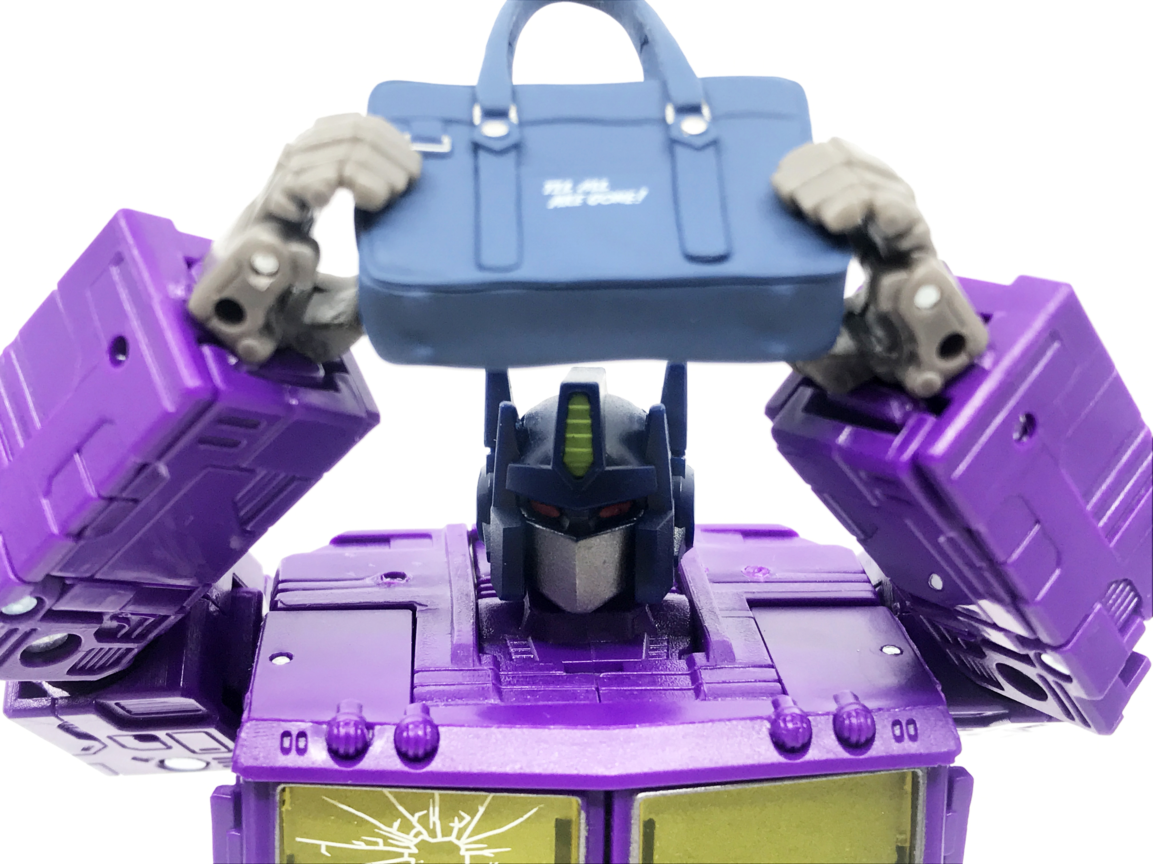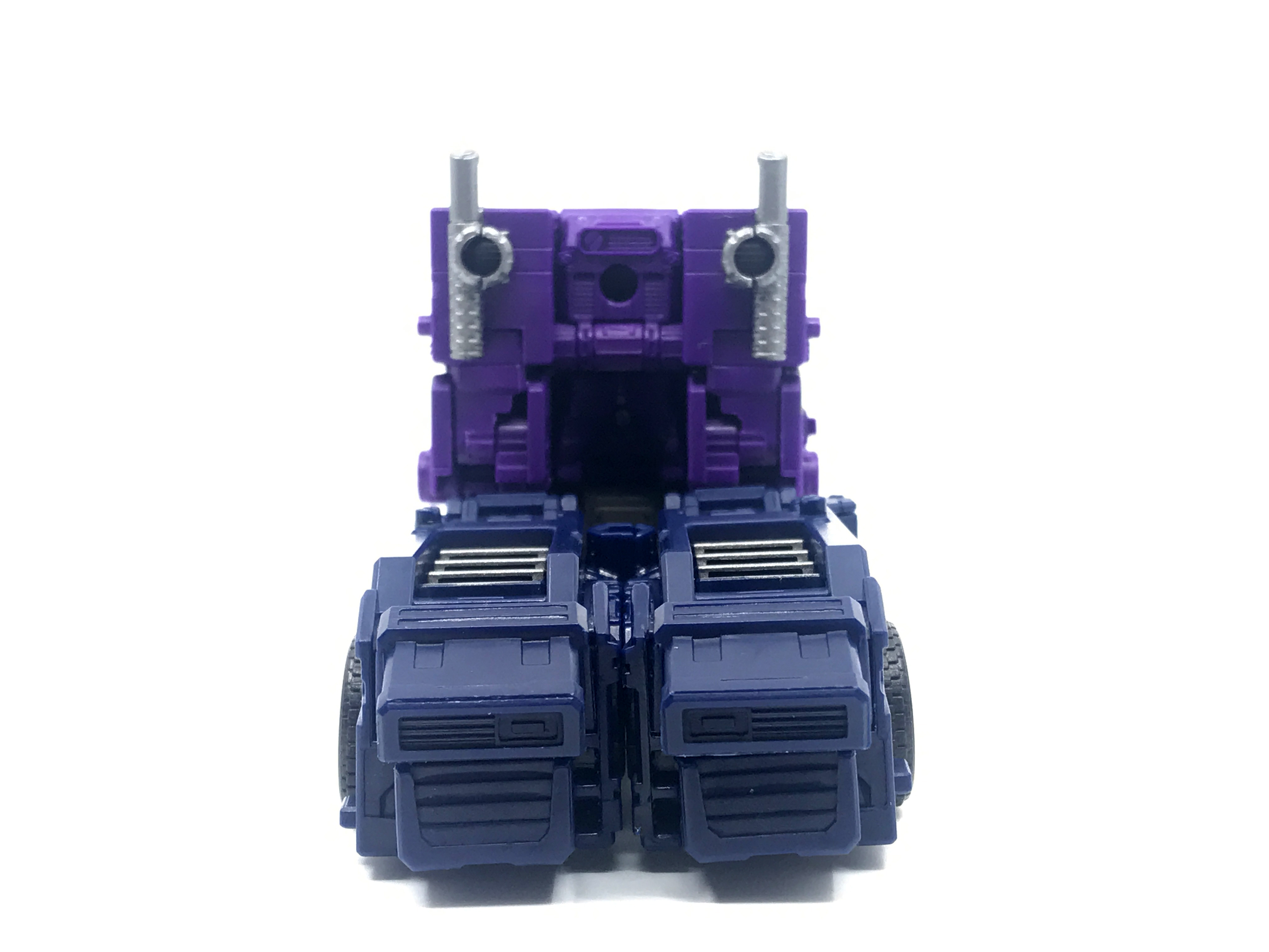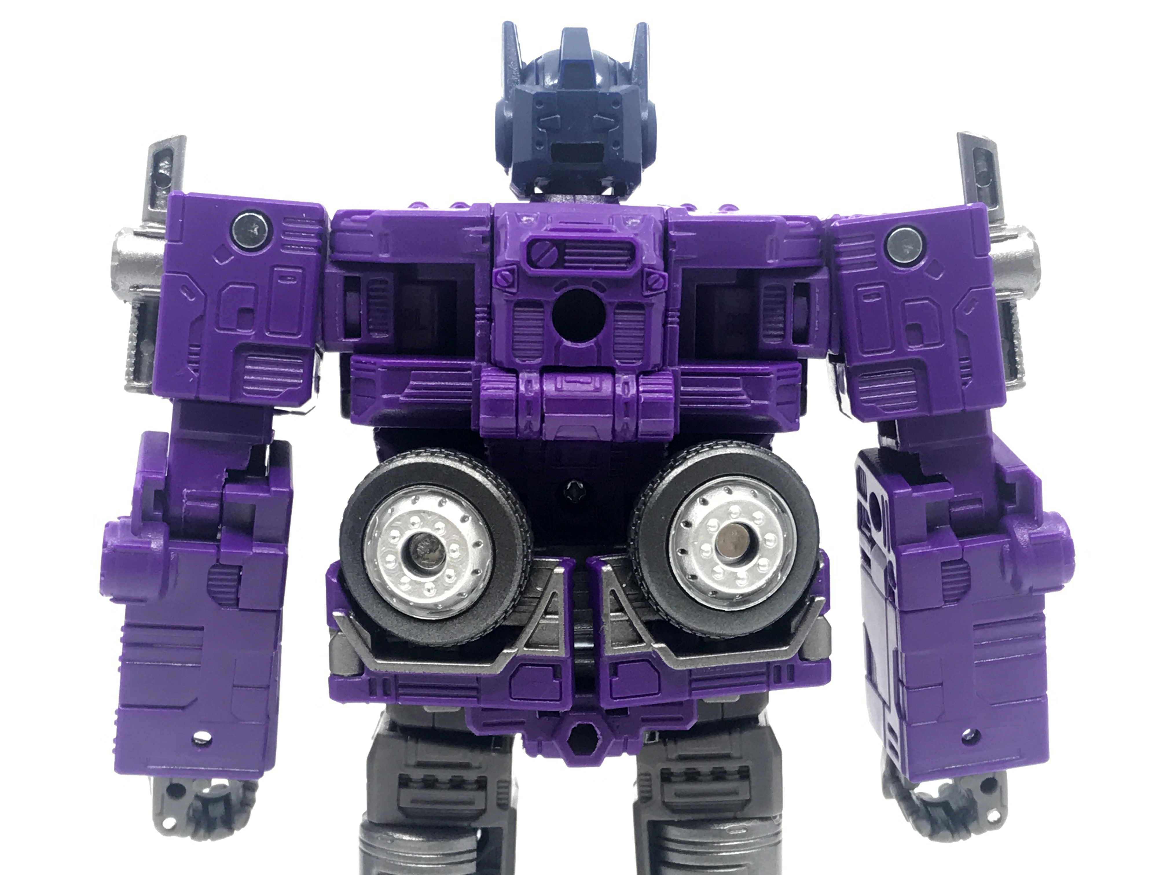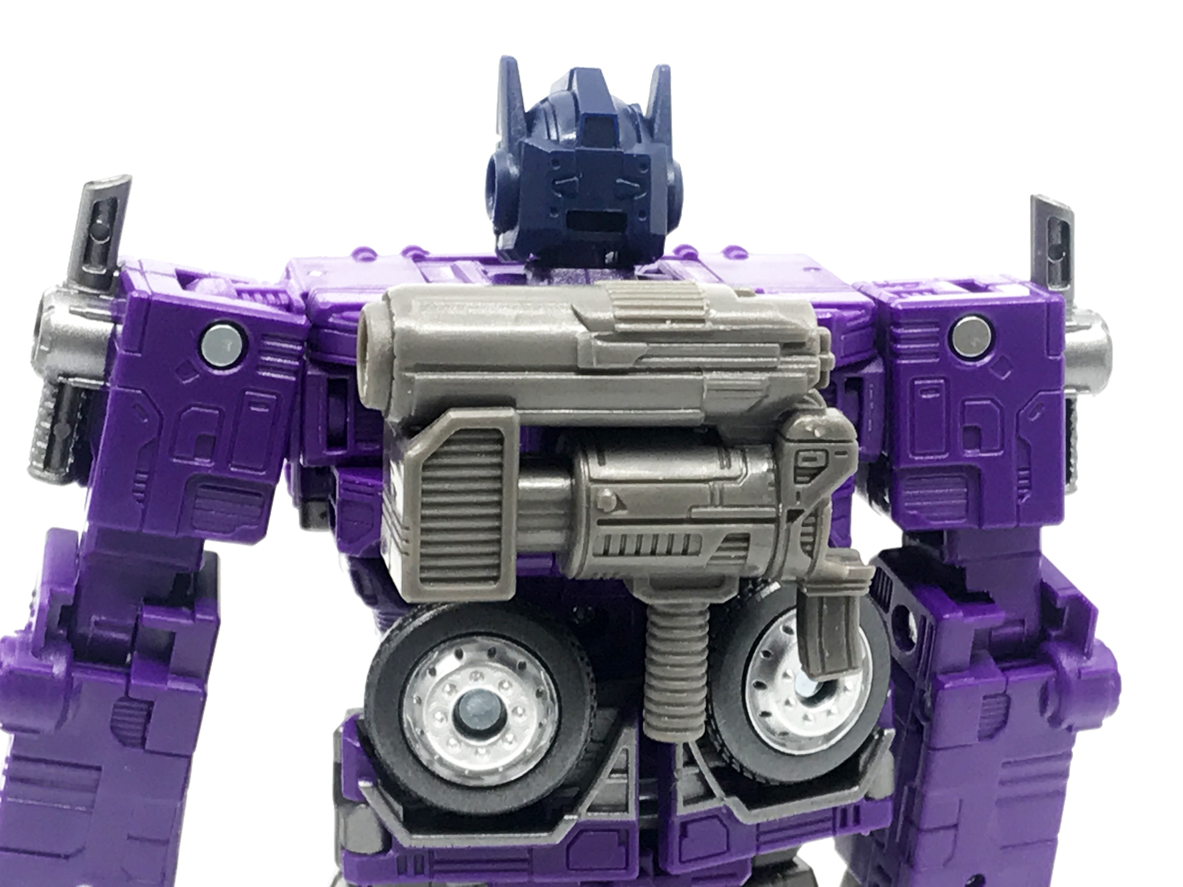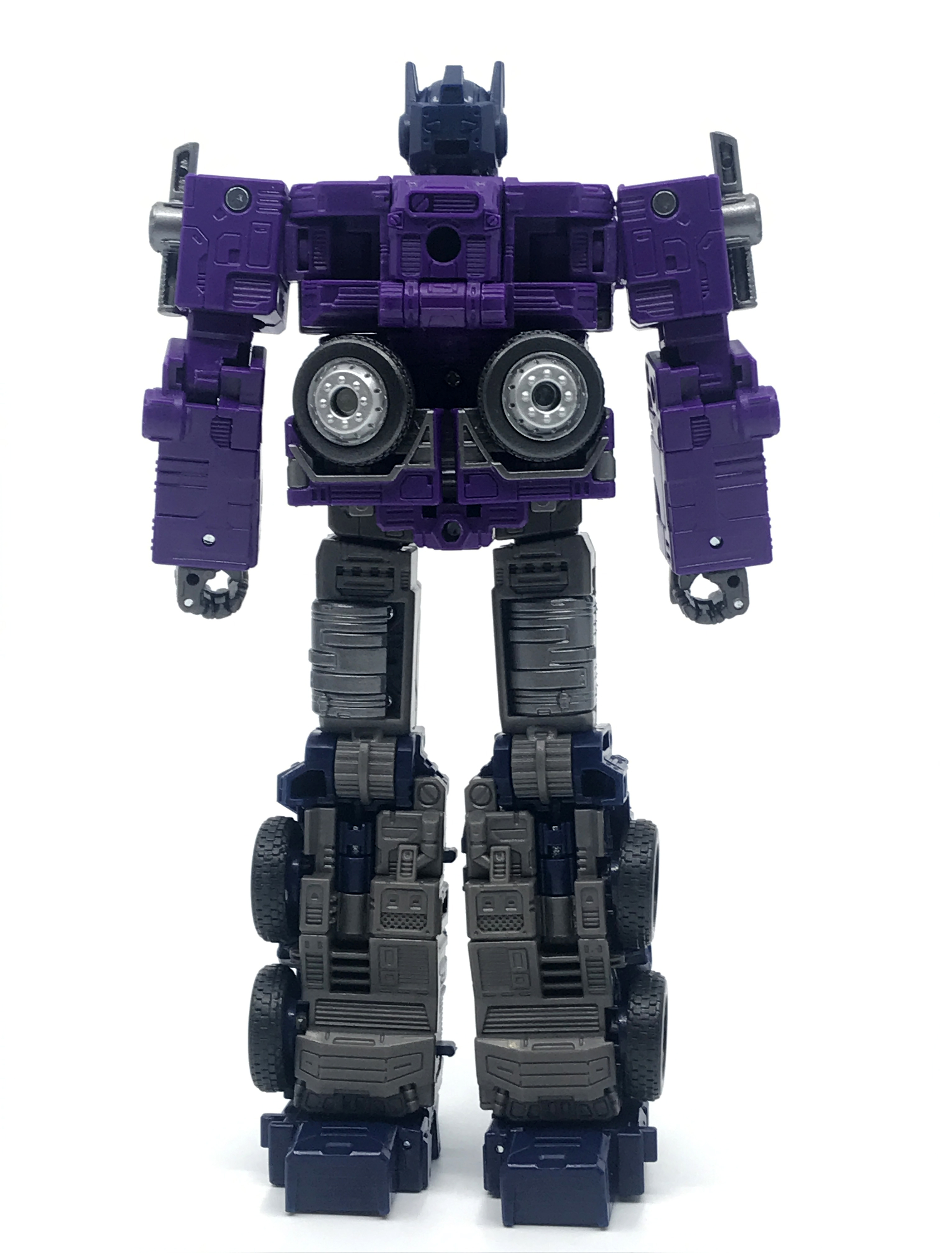 기존 옵티머스 프라임의 붉은색에서 자주색 트럭으로 변경됐고, 푸른 클리어 부품은 노란색 계열의 클리어 부품으로 변경됐습니다. 우측 창문엔 SG 옵티머스 프라임의 특유의 '깨진 유리 Shattered Glass'가 특징. 조금 아쉬운 점은, 이쪽은 SG 라쳇과 합본으로 나오면서 트럭이 없다는 것.