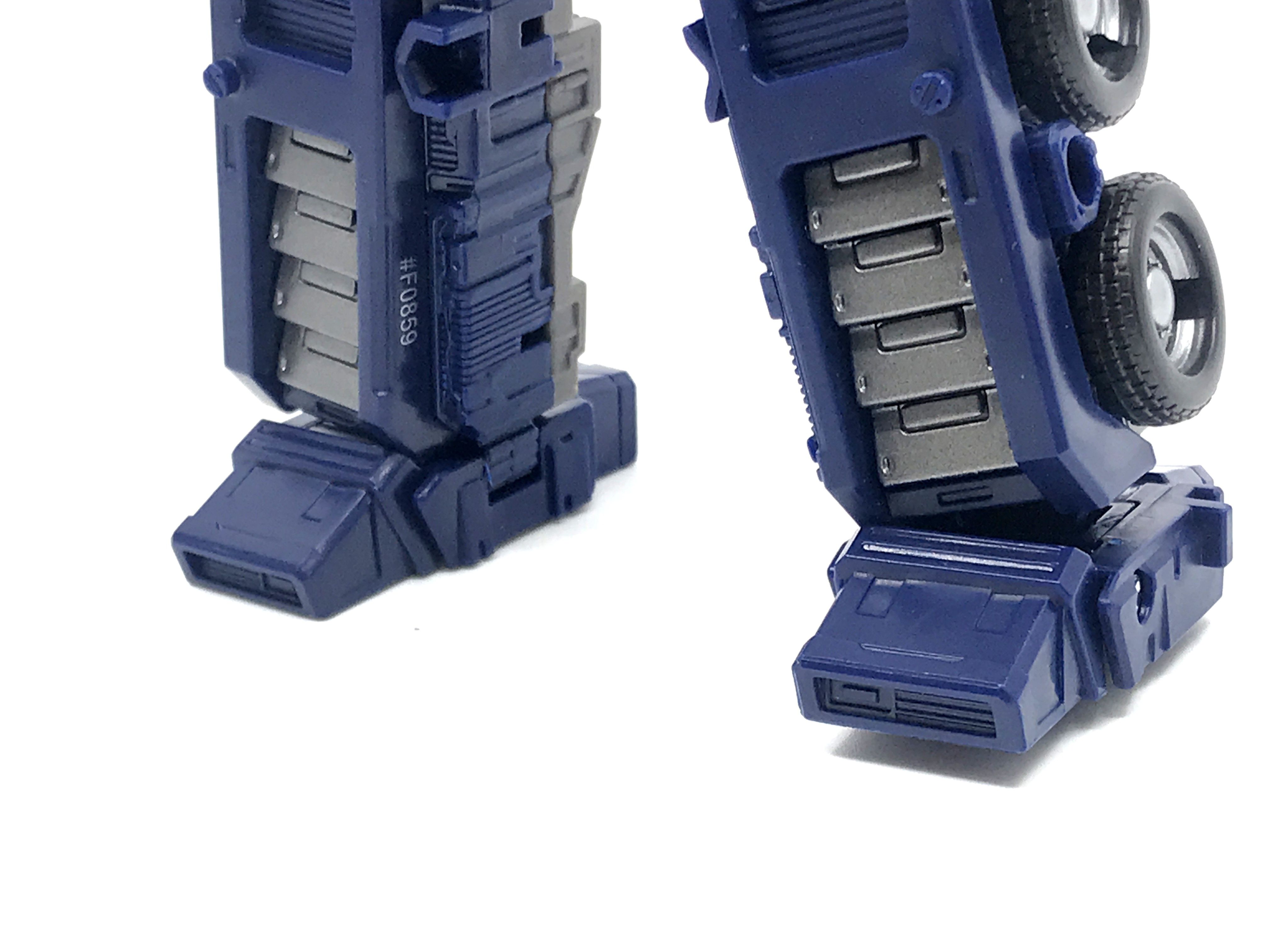 등짐도 동일. 달라진 것이 있다면 어스라이즈 옵티머스 프라임은 뒷통수와 손을 비롯한 여러 부분이 메탈릭 블루 도색으로 처리됐는데, 본 제품은 해당 부분이 사출색으로 처리된 점.