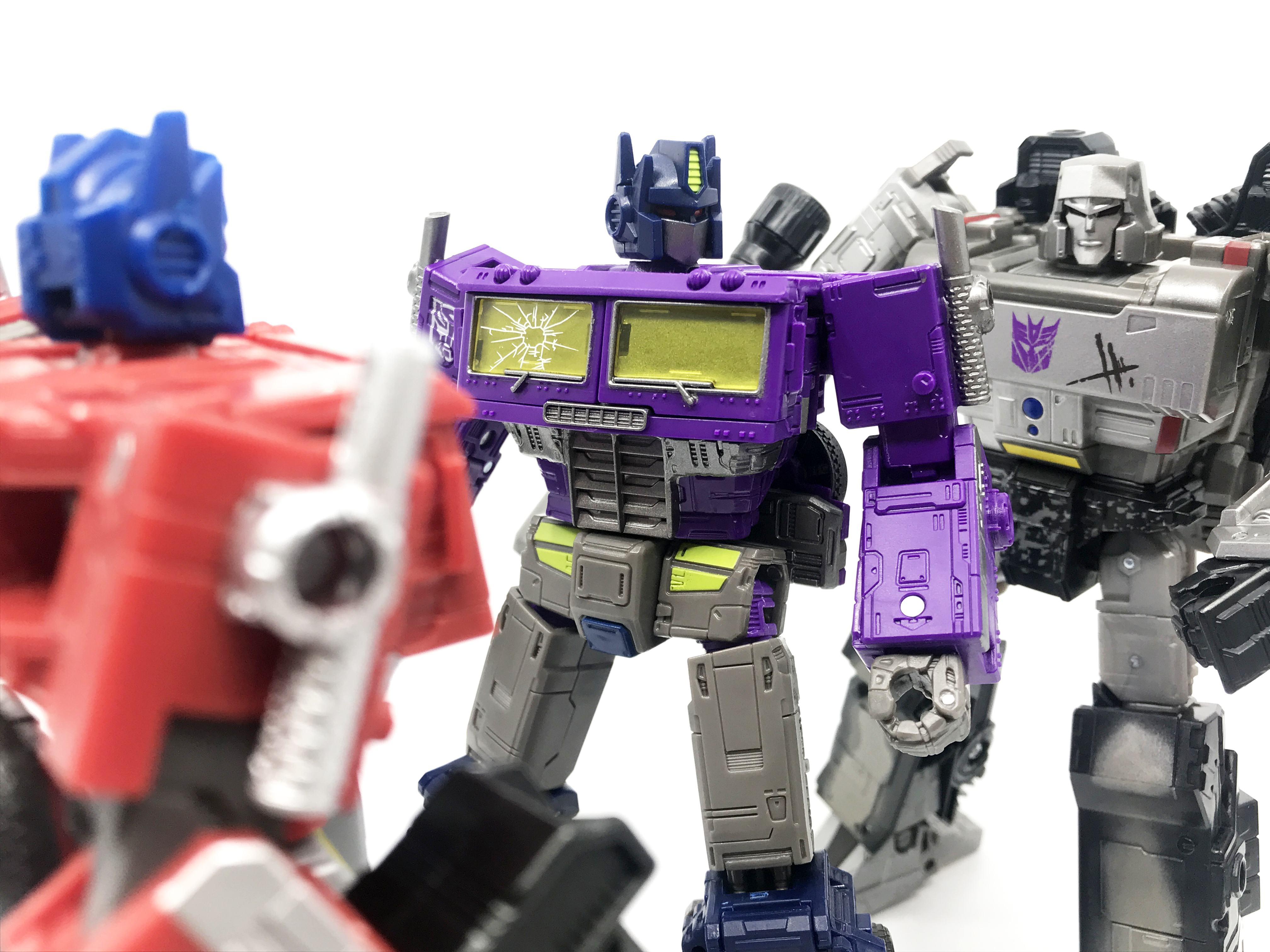 옵티머스 프라임의 흑화인 네메시스 프라임과는 전혀 다른 매력을 선보인 옵티머스 프라임의 반전 상태인 SG 옵티머스 프라임. <Shattered Glass>는 기존의 정의의 오토봇과 사악한 디셉티콘의 틀을 깨부수고 반전된 세계인 정의의 디셉티콘과 악의 오토봇의 투쟁을 다루는 작품입니다.