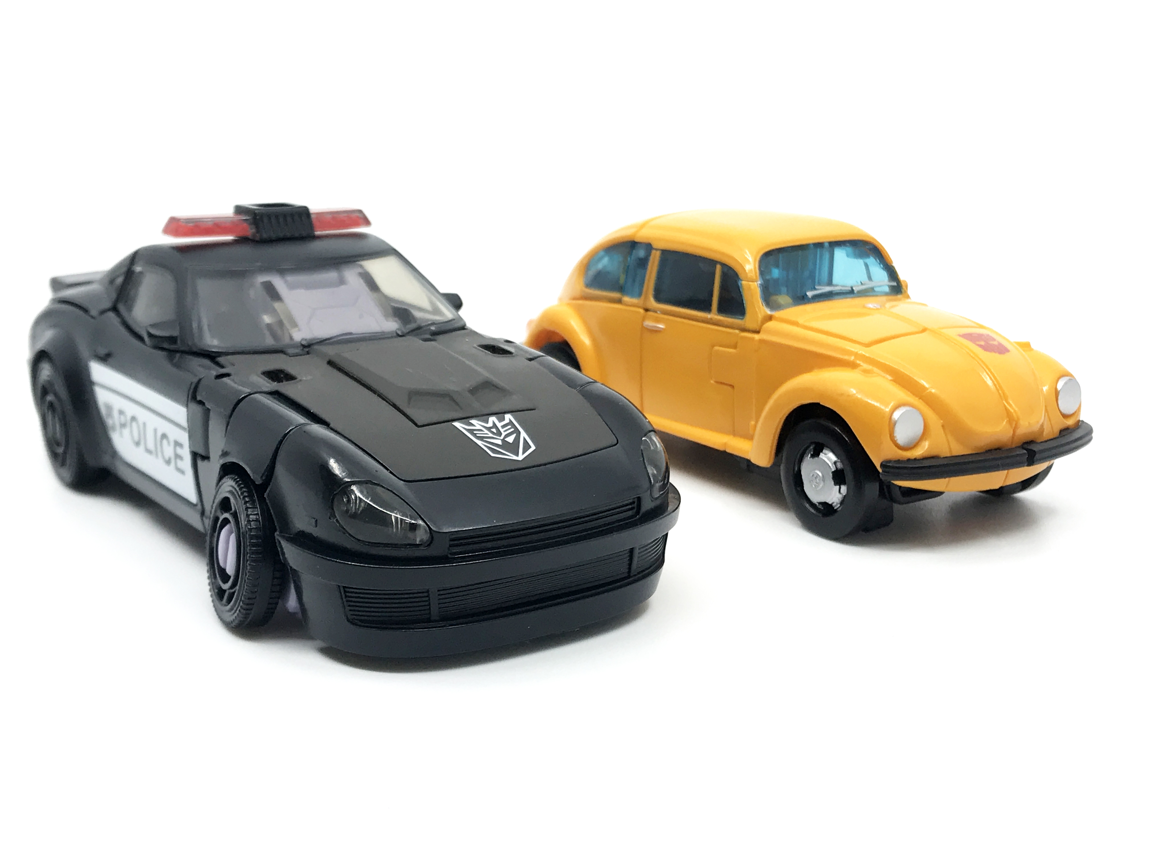실사 영화 시리즈에서 라이벌로 그려진 바리케이드와 함께. 영화에선 둘다 작은 차량으로 변신해서 비슷한 크기로 나왔지만, 여기선 라이벌 하기에는 바리케이드가 너무 크군요.