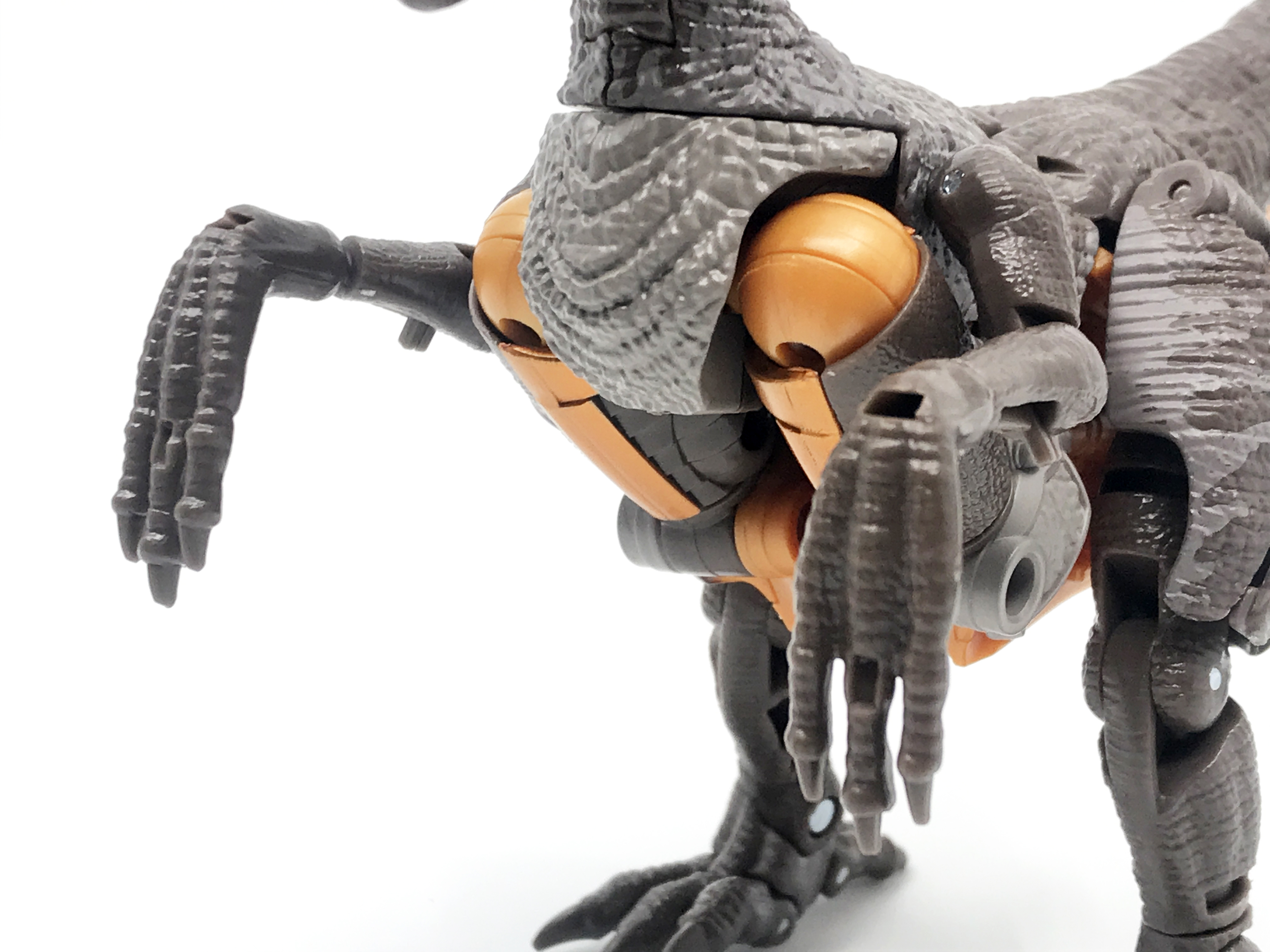 21세기에 만들어진 장난감임에도 불구하고 드로마에오사우루스류의 벨로키랍토르/벨로시랩터 모형임에도 <쥬라기 공원> 같은 모습으로 만들어졌습니다. 아무래도 애니메이션 <비스트 워즈>의 리메이크라 그런 감이 있습니다.