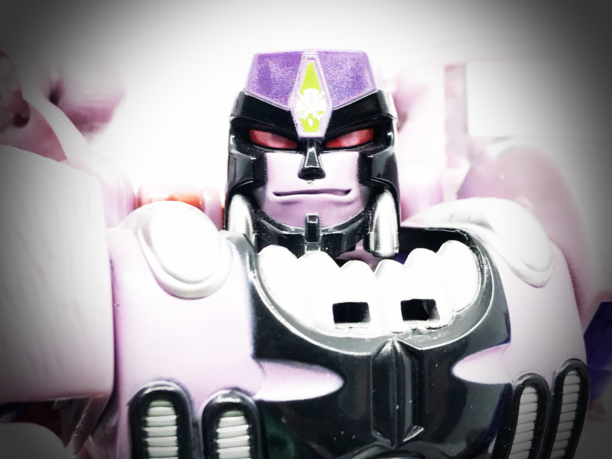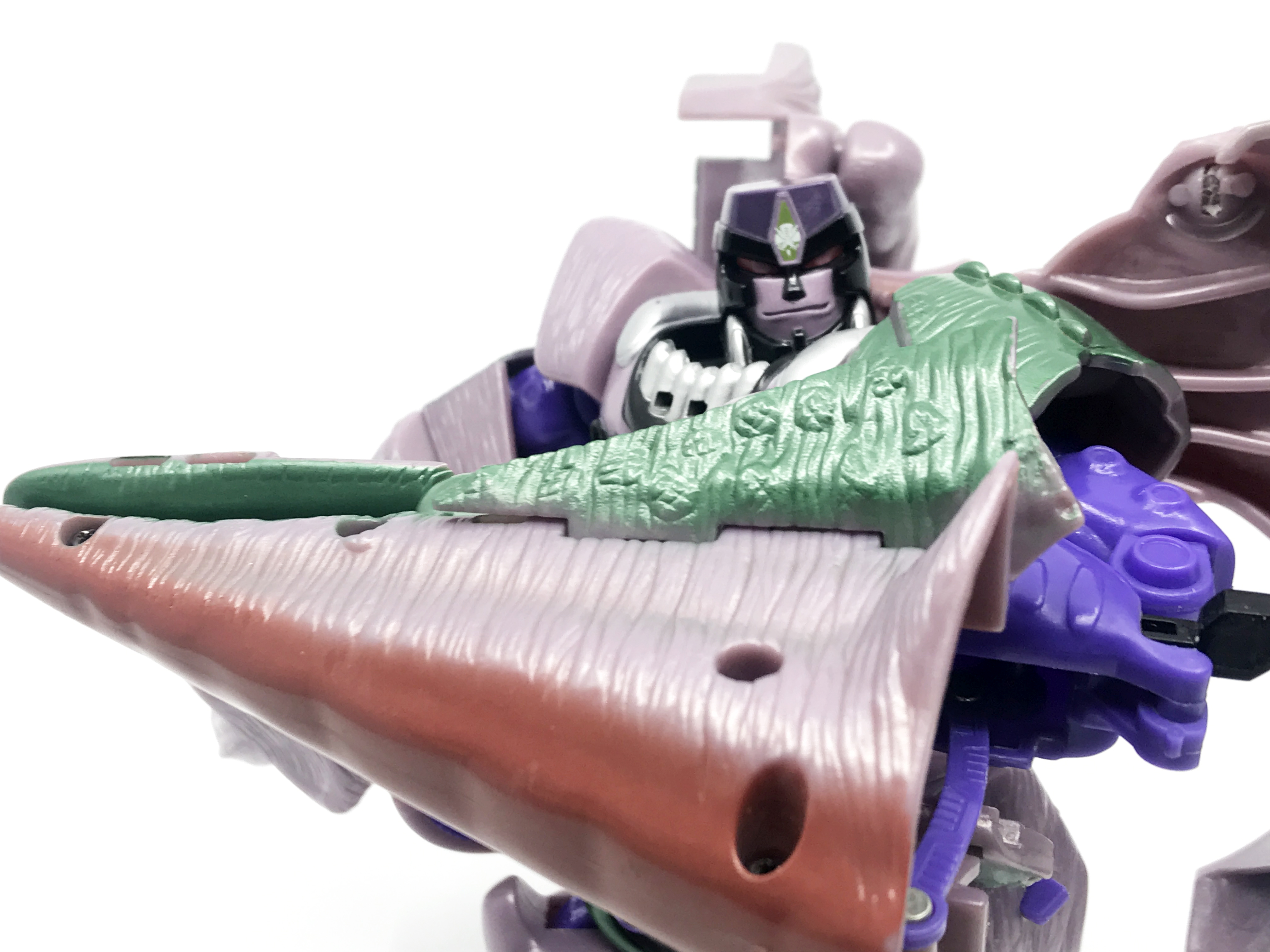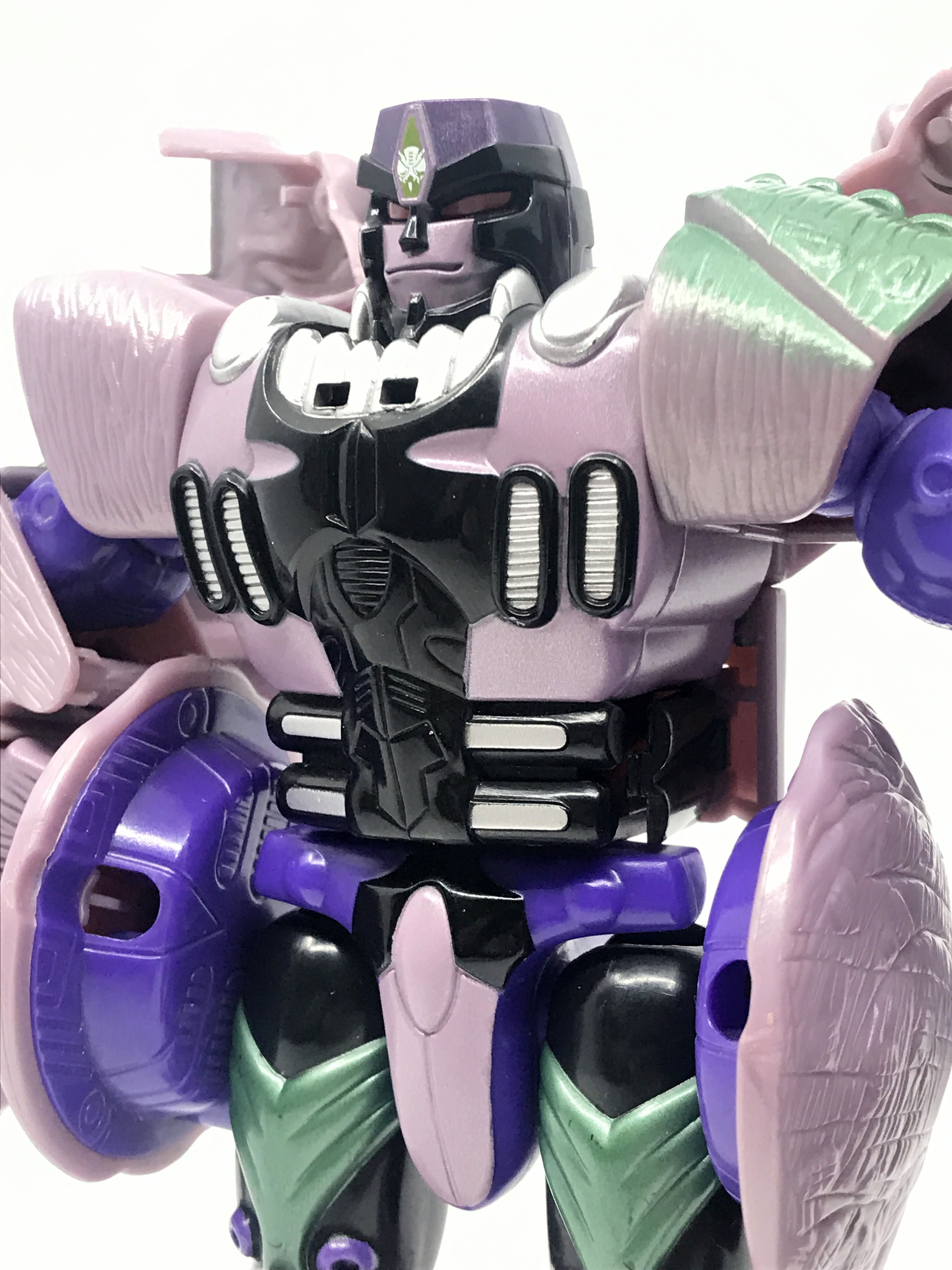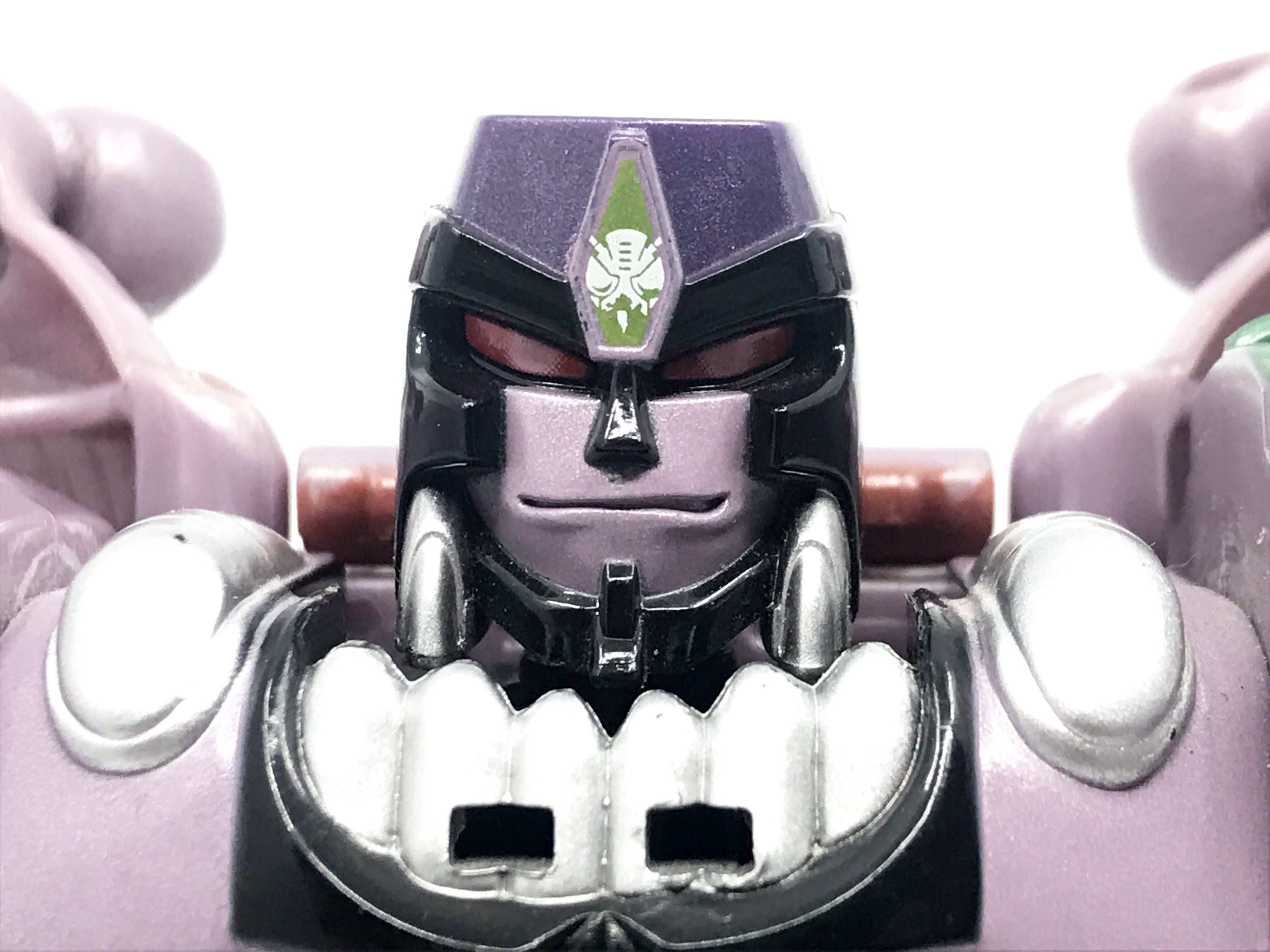 중고 제품이라 그런지 이마의 프레데콘 마크가 약간 훼손된 형태입니다. 큰 도색 미스는 없지요. 이 애니메이션에 가까운 머리 조형은 오직 10주년 기념판에서만 사용됐는데, DX 조형의 재출시가 몇 번 이뤄졌음에도 이 머리 조형은 10주년 제품에만 사용됐기에, 꽤 레어한 얼굴 조형이라 할 수 있지요.