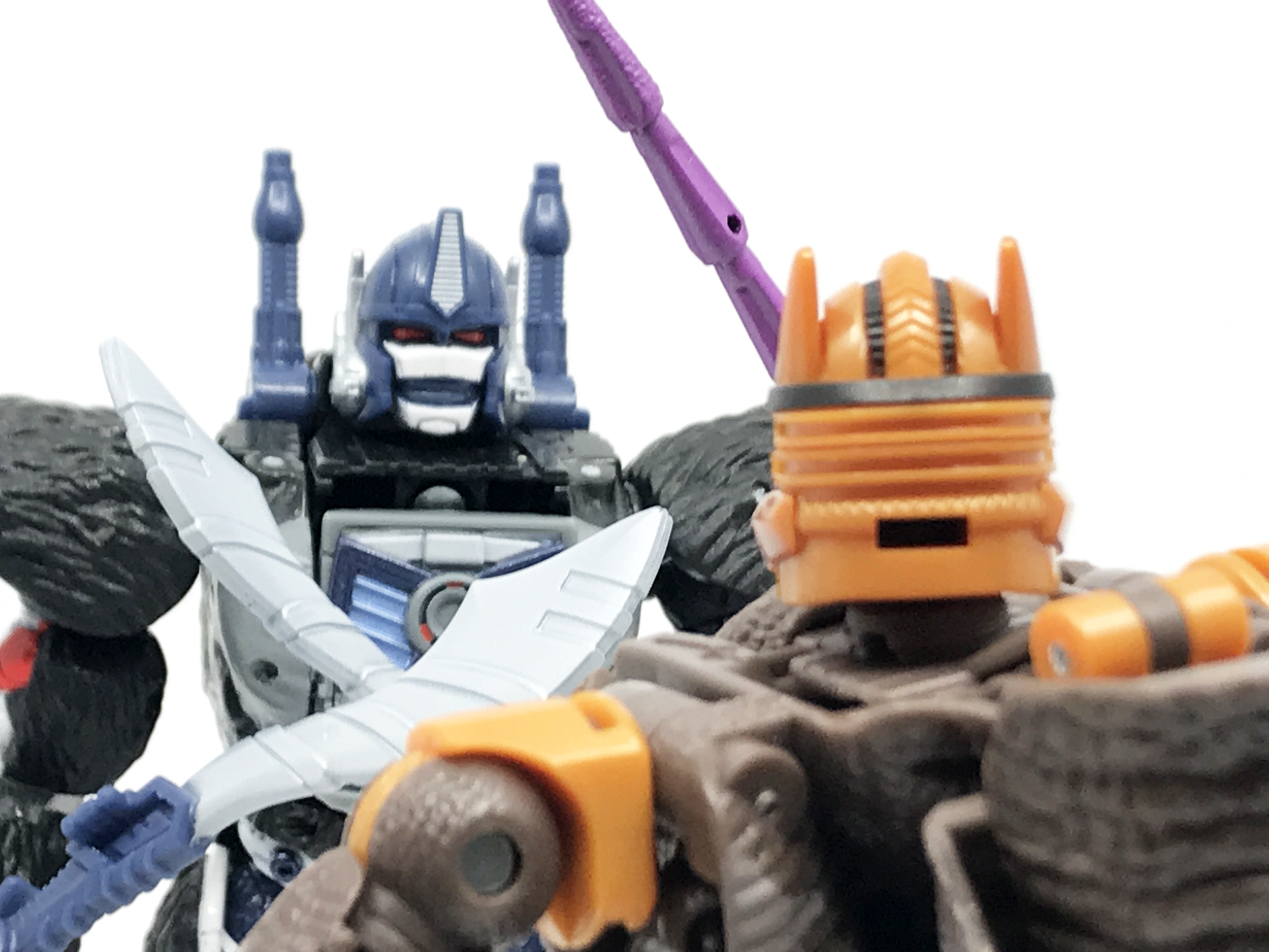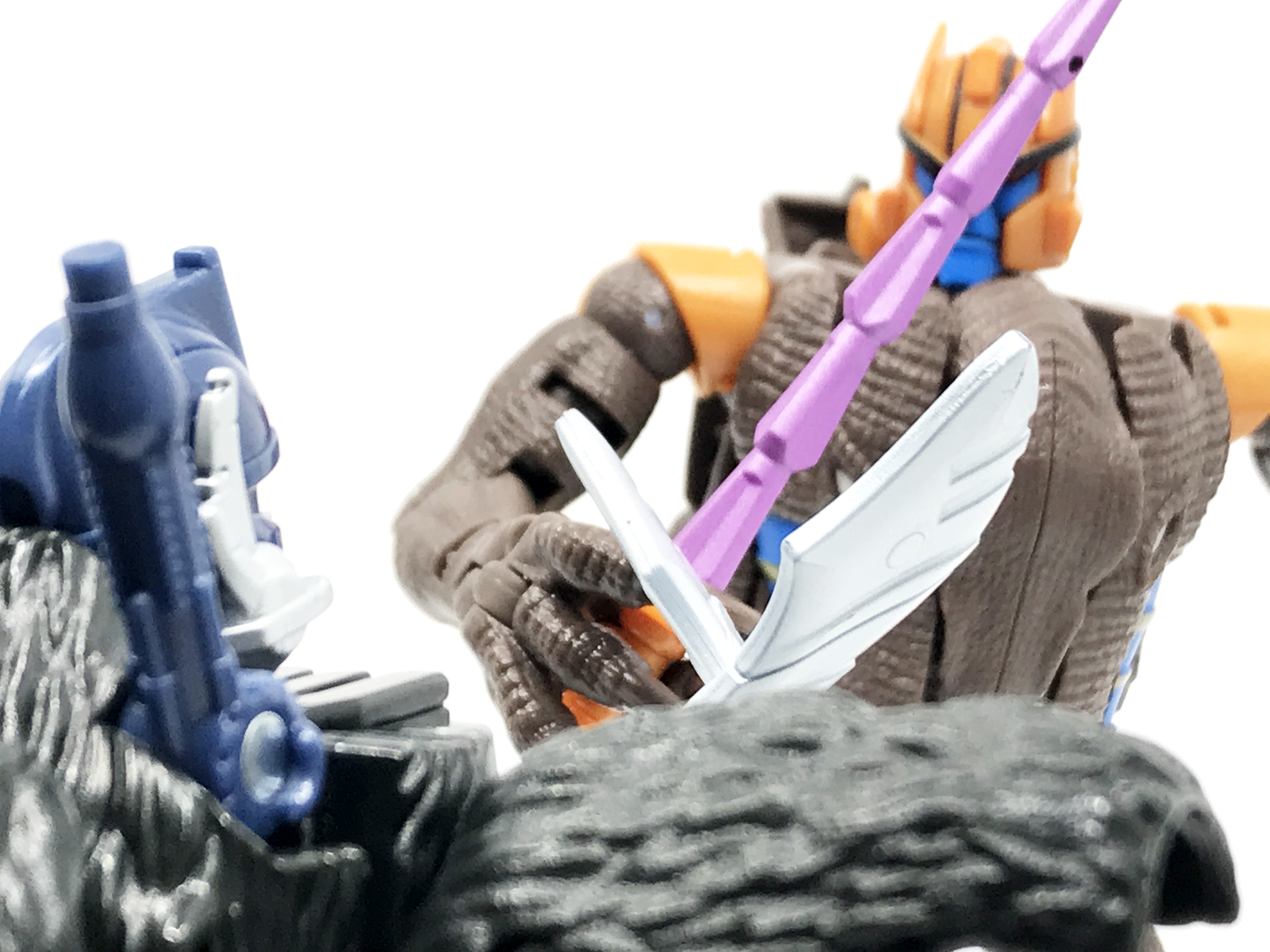옵티머스 프라이멀이 일시적으로 부재한 에피소드에서 메가트론과 1대1로 맞붙기도 했었기에 기억에 남습니다. 끝내 다이노봇이 승리하긴 했지만, 메가트론을 상대하는 건 노련한 전사인 다이노봇에게도 힘이 든다는 느낌이 들던 장면을 재현한 것이 위의 사진. 전투에서 굴욕이 좀 많다고 해도 폼으로 사령관 단 건 아닌지 메가트론의 힘이 강하게 묘사됐었습니다.