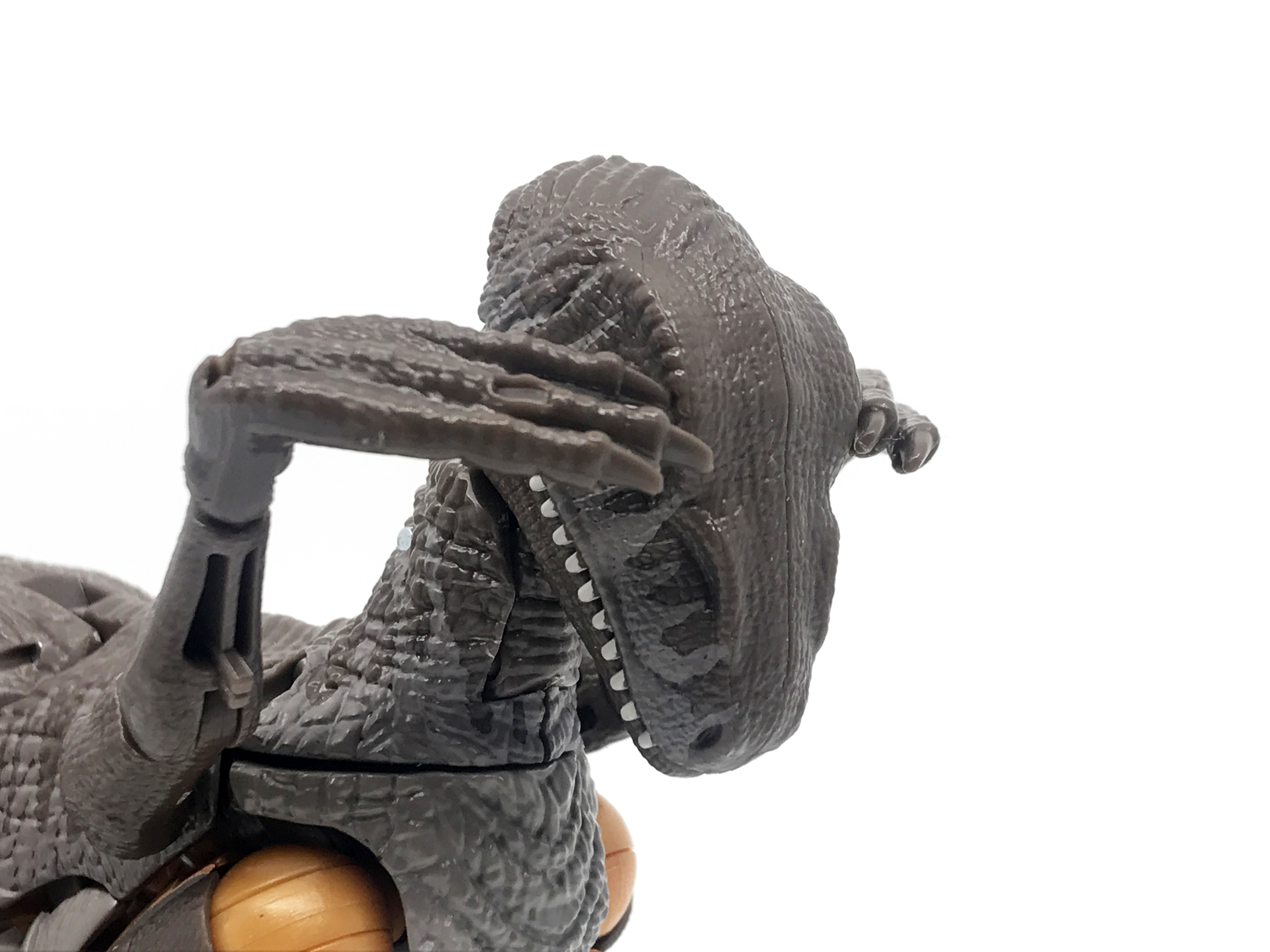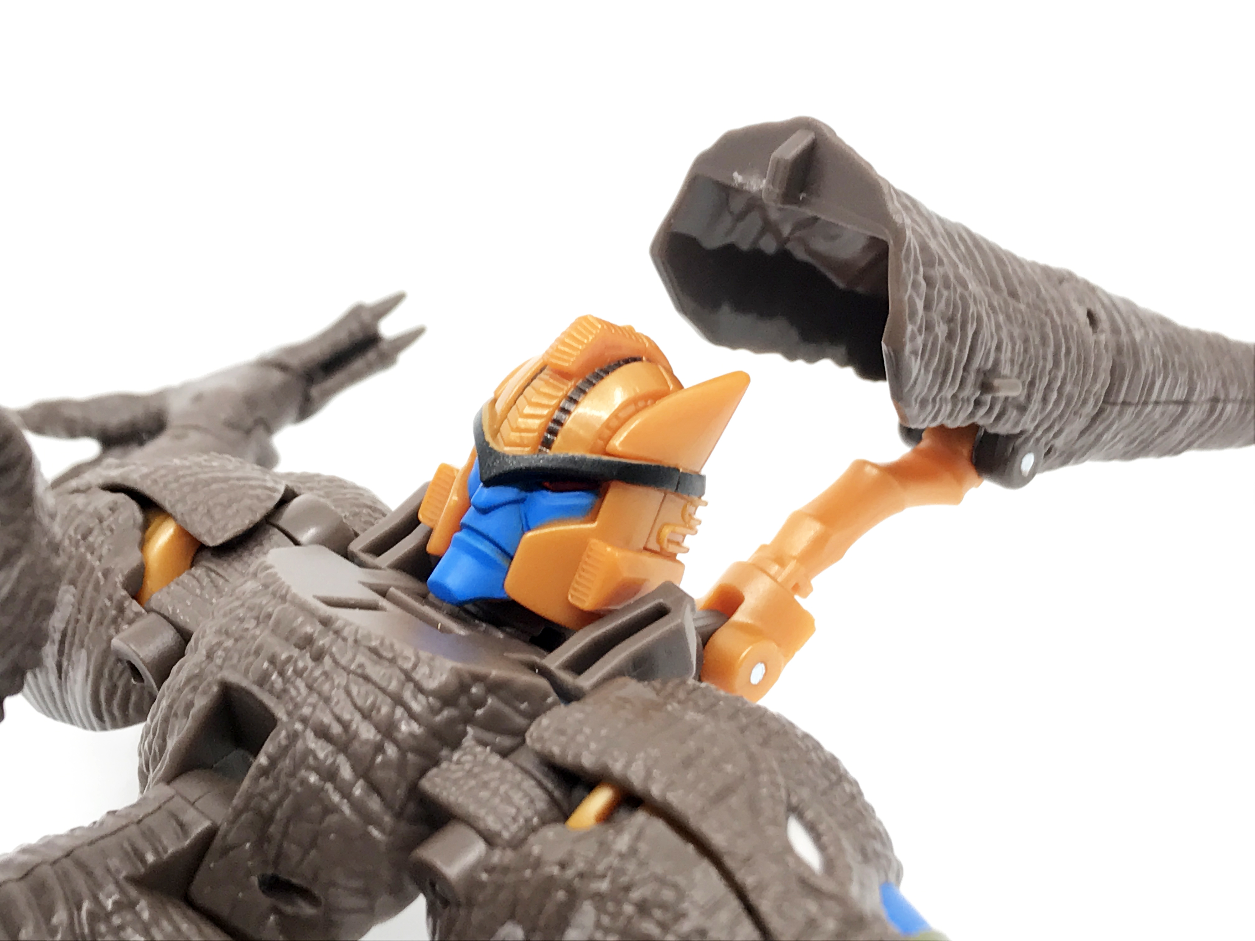 얼굴 접사. 상당히 뛰어난 재현도를 보입니다. 공룡 머리의 경우, 변신 방식 덕분에 고개를 위아래로 들고 숙이는 가동은 가능하지만, 좌우로 회전은 하지 못 합니다. 좌우 회전도 가능했으면 좋았을텐데 말이죠.