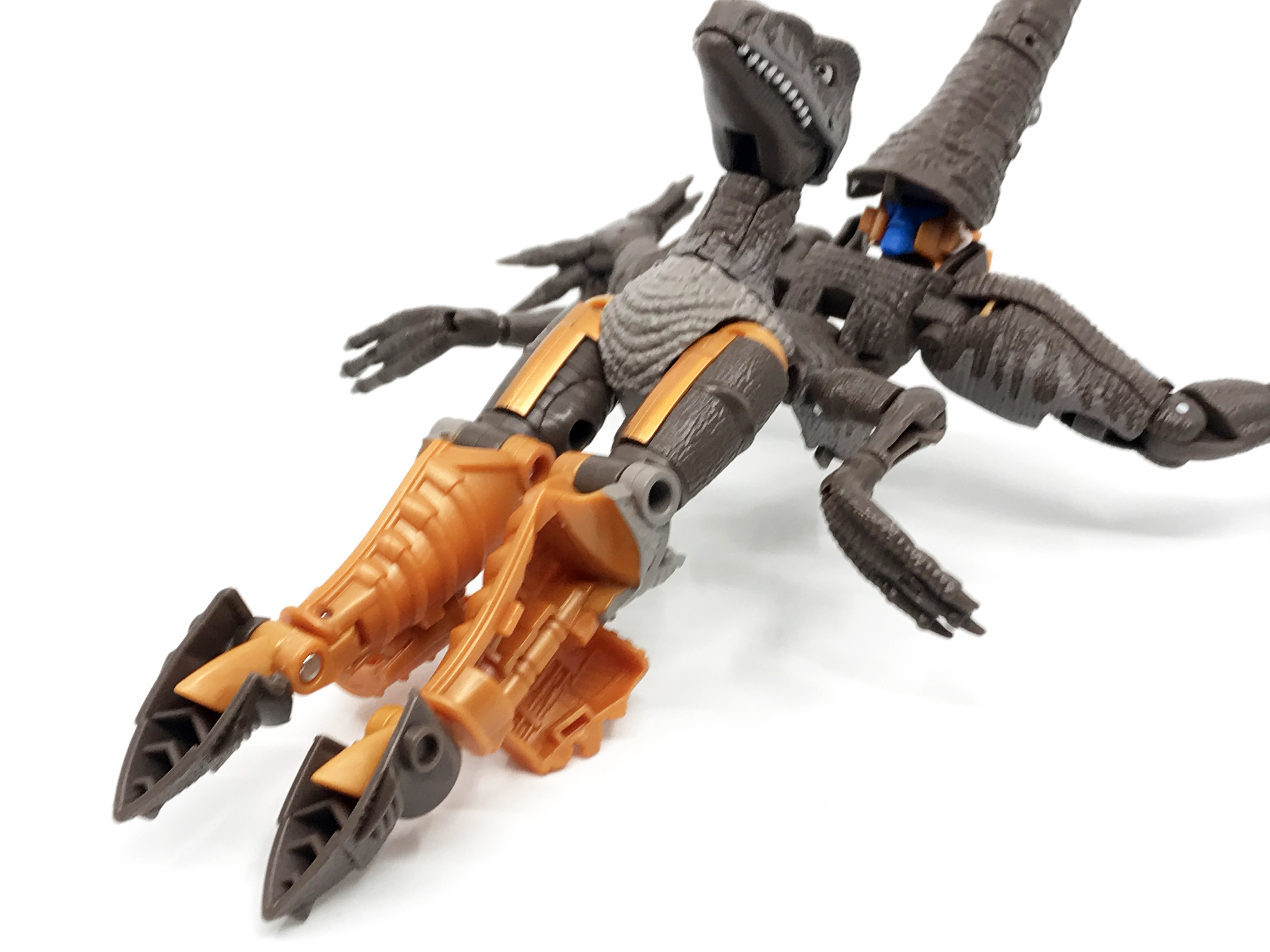 변신 탓에 공룡 가슴-복부-엉덩이까지 로봇 형태의 다리가 배치됩니다. 그래선지 공룡 형태가 조금 아쉬운 감이 있습니다.