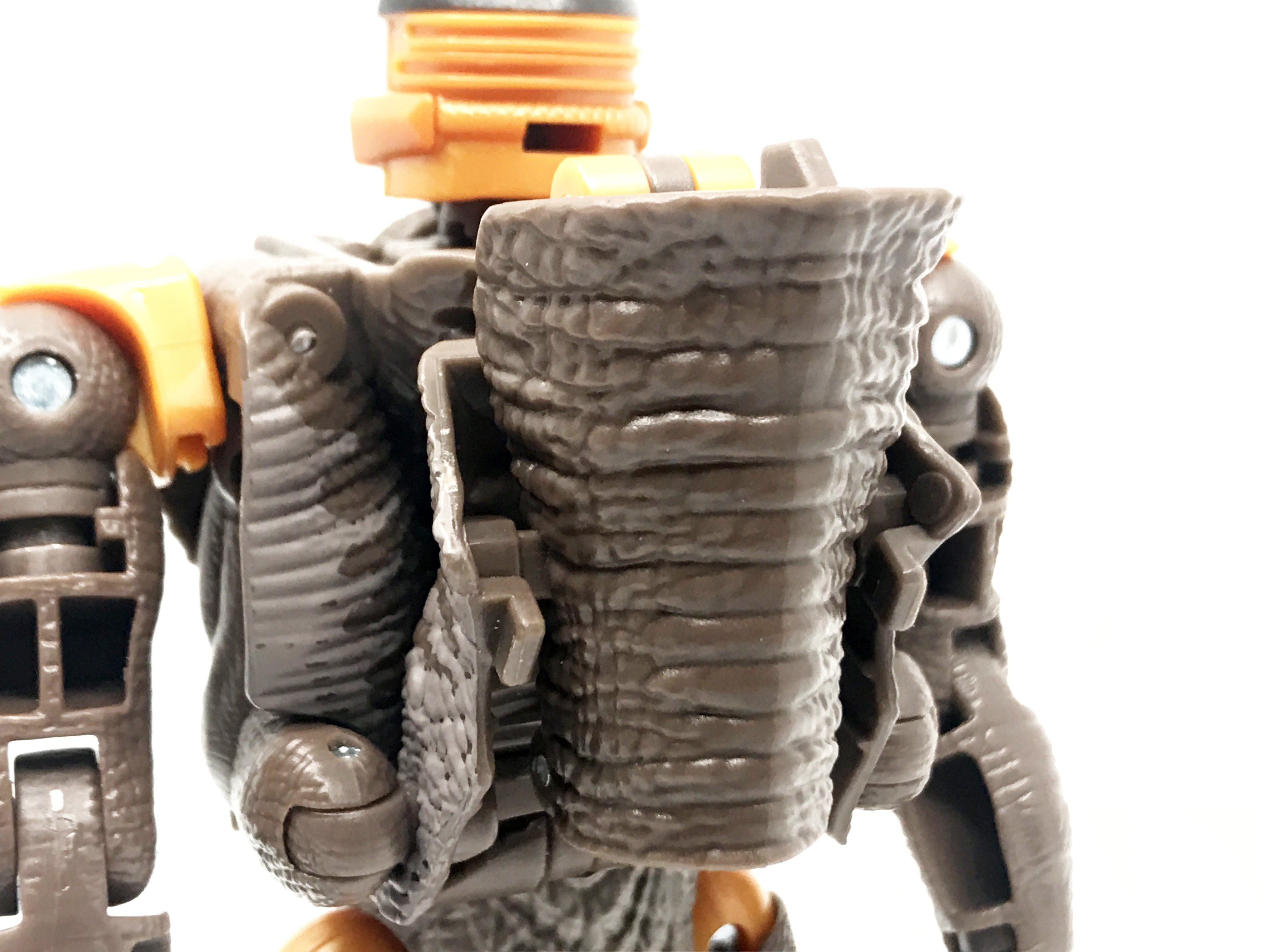 뒤쪽엔 로봇 발이 보이는 탓에 공룡 형태를 좀 헤치는 구조. 엉덩이 쪽엔 로봇 모드에 사용되는 페이크 파츠가 존재합니다.