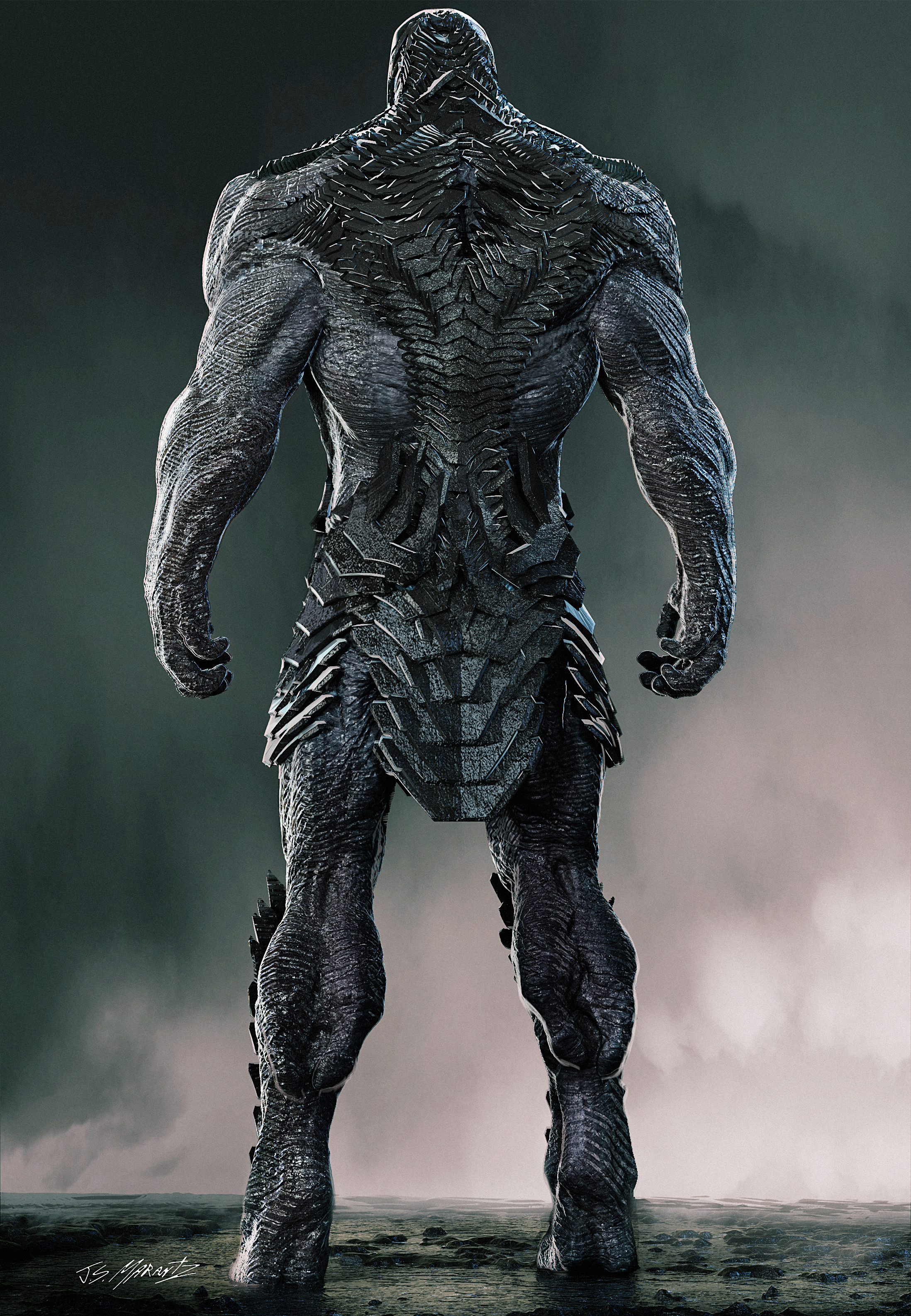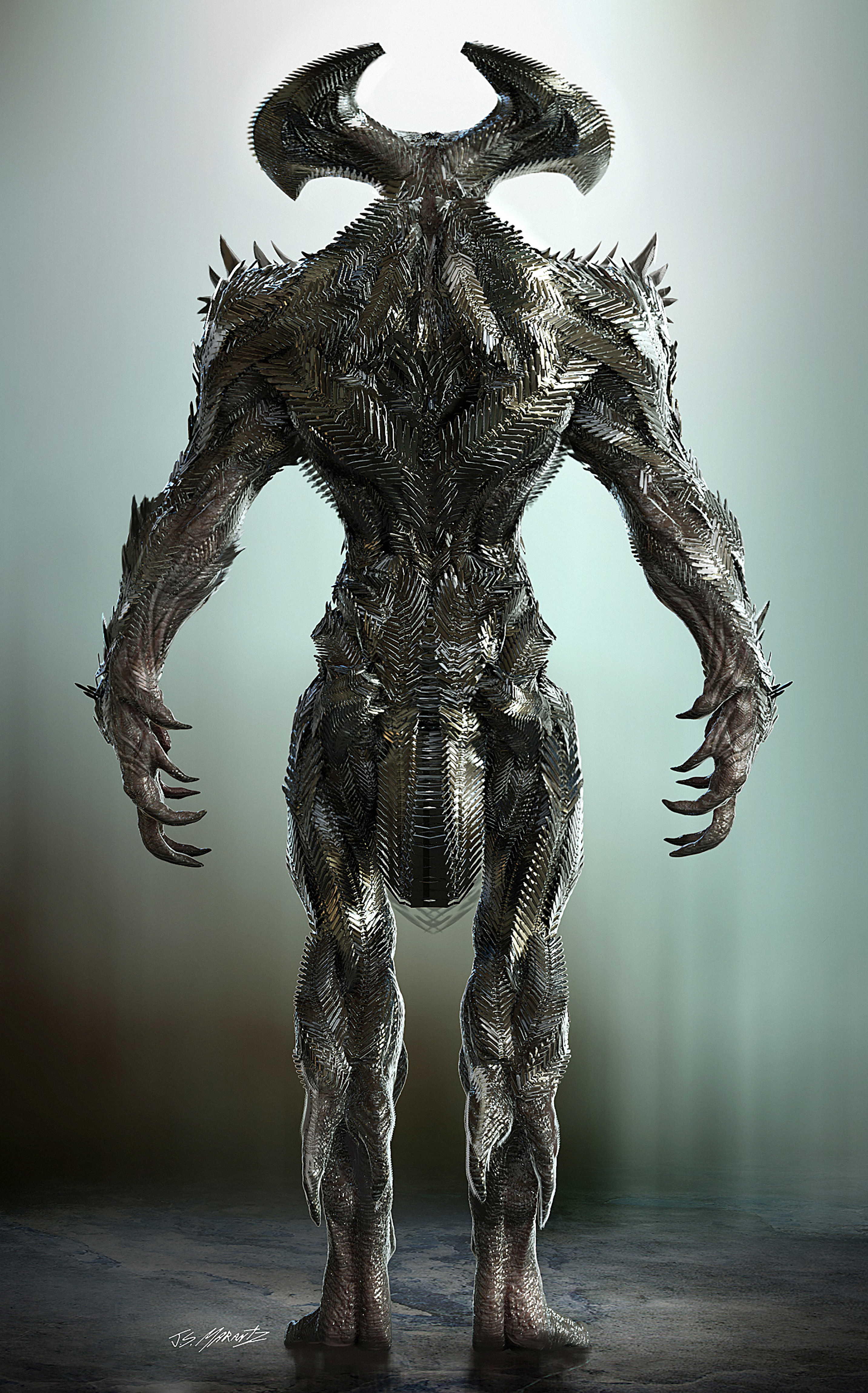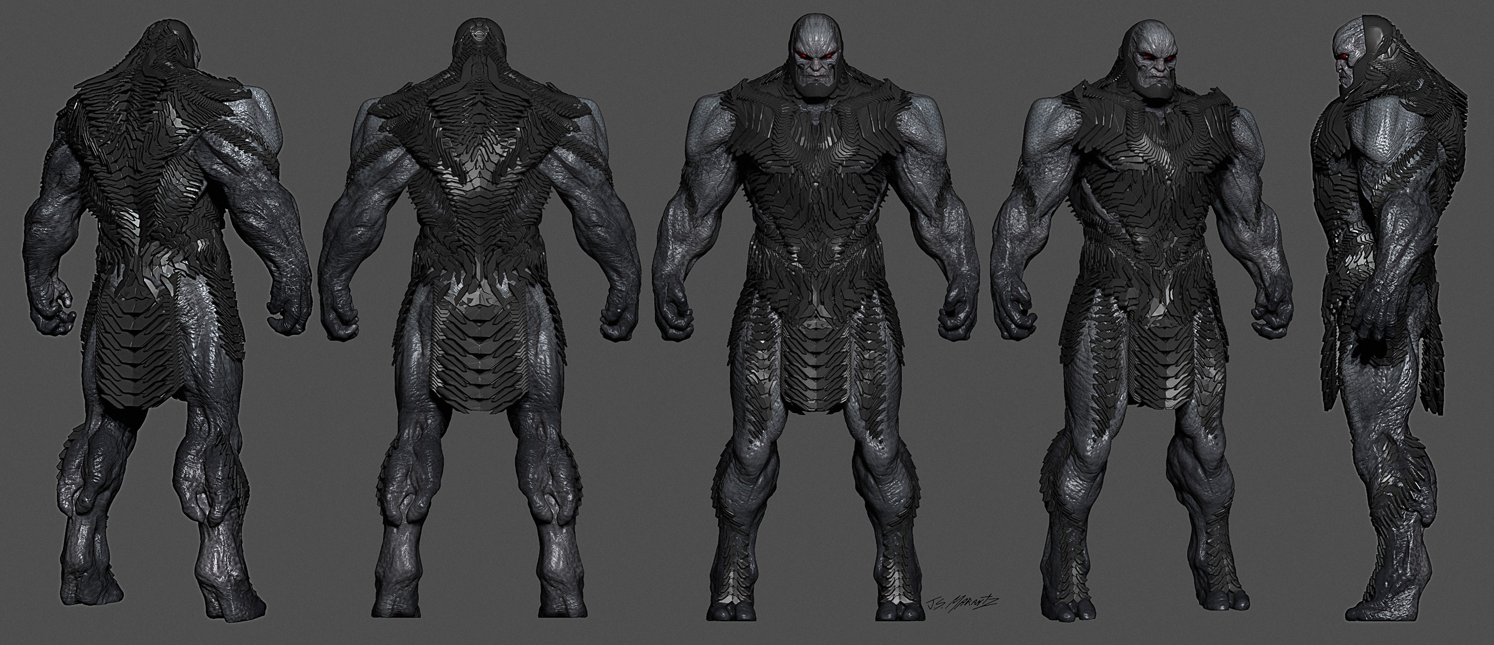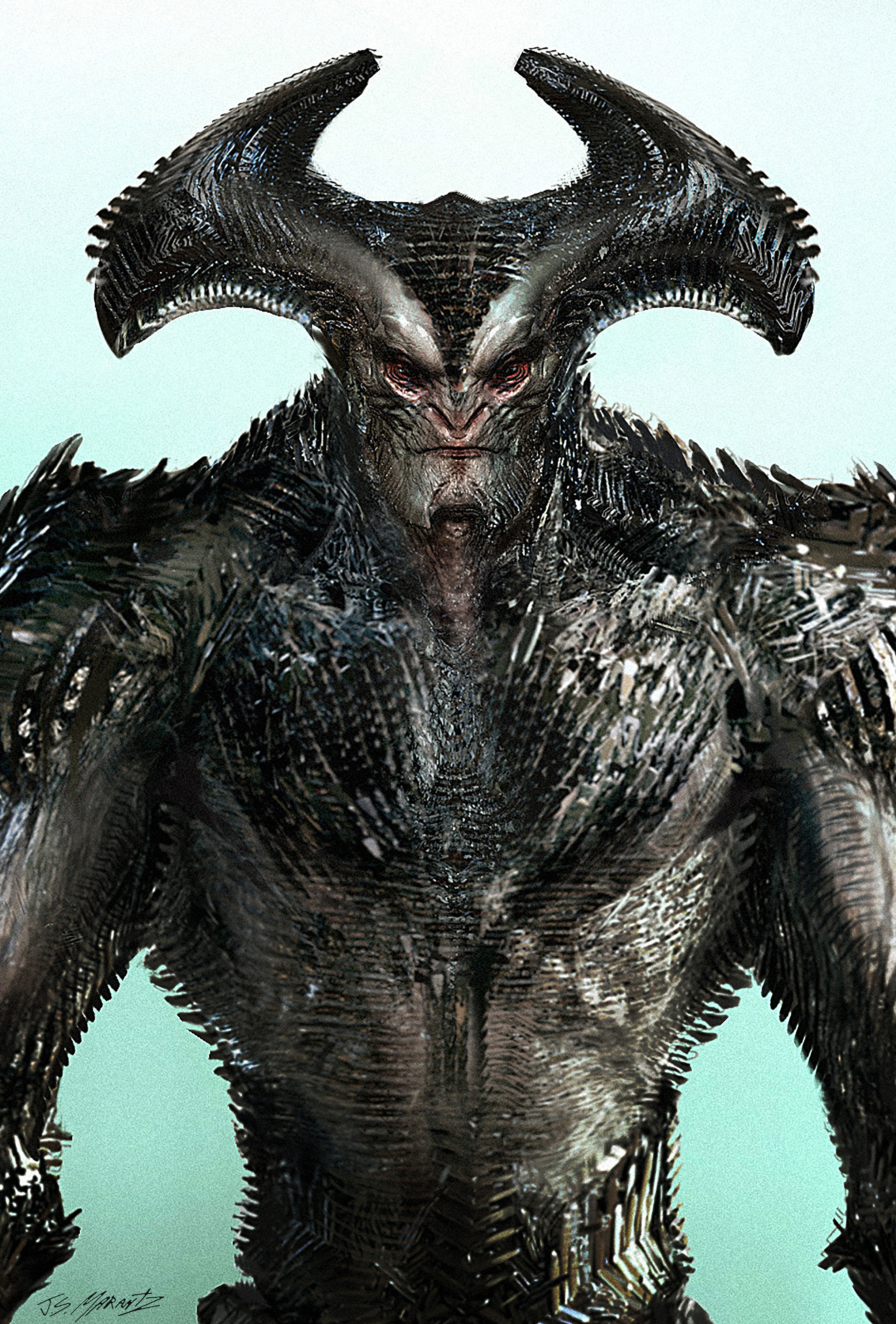 다크사이드의 원화입니다. 이 캐릭터를 작업하게 되어 얼마나 기뻤는지 표현할 수 없습니다. DC 유니버스의 모든 악당 중에서 다크사이드의 비중이 가장 큽니다. 만화에서 풍부한 역사를 가지고 있으며 DC 세계에서 가장 강력한 악당 중 한 명입니다. 잭 스나이더 감독의 비전을 실현하기 위해 의상 디자이너 마이클 윌킨슨 Michael Wilkinson과 함께 일하게 된 것은 절대적인 영광이었습니다. 이것은 내 경력에서 최고의 직업 중 하나였습니다.