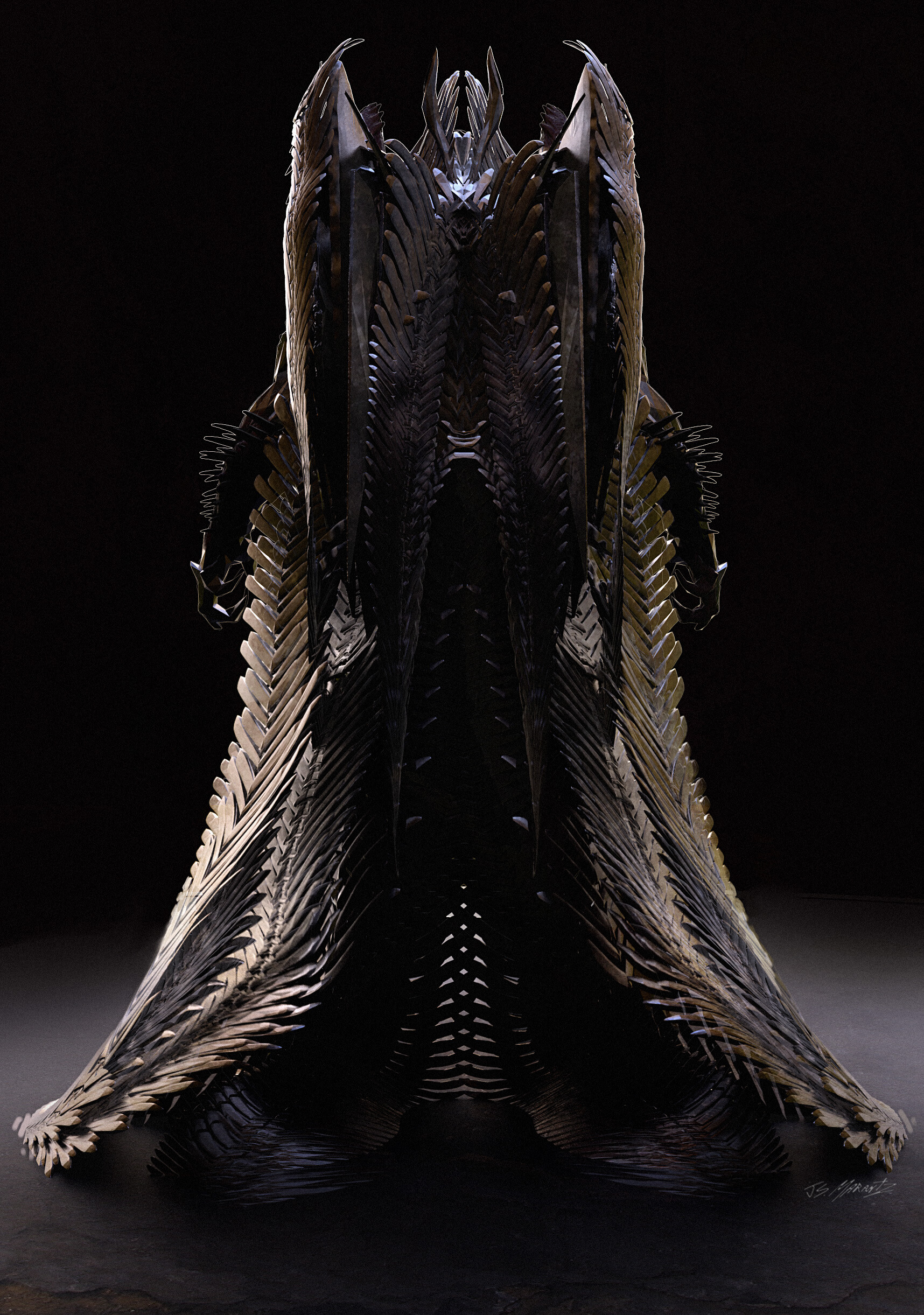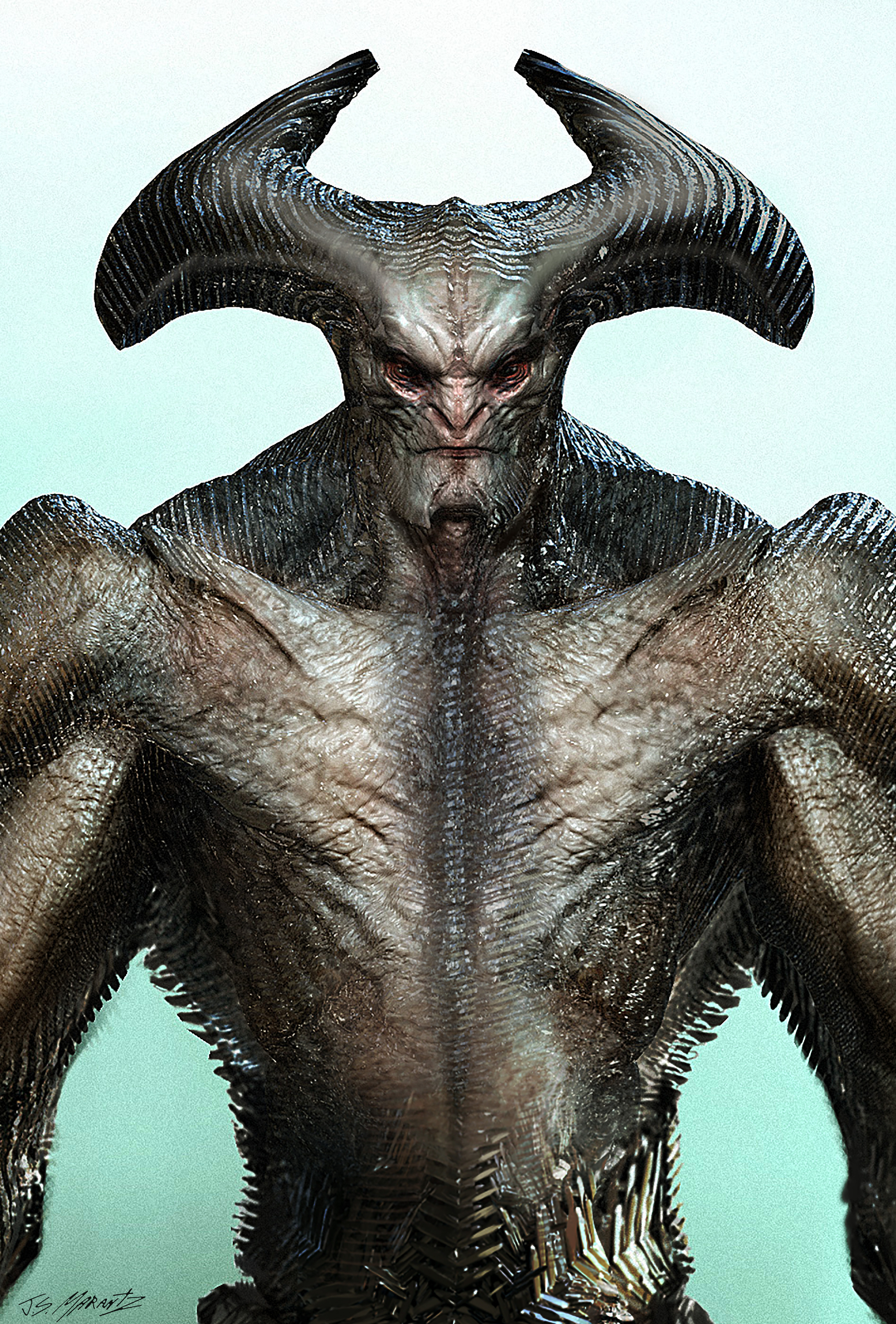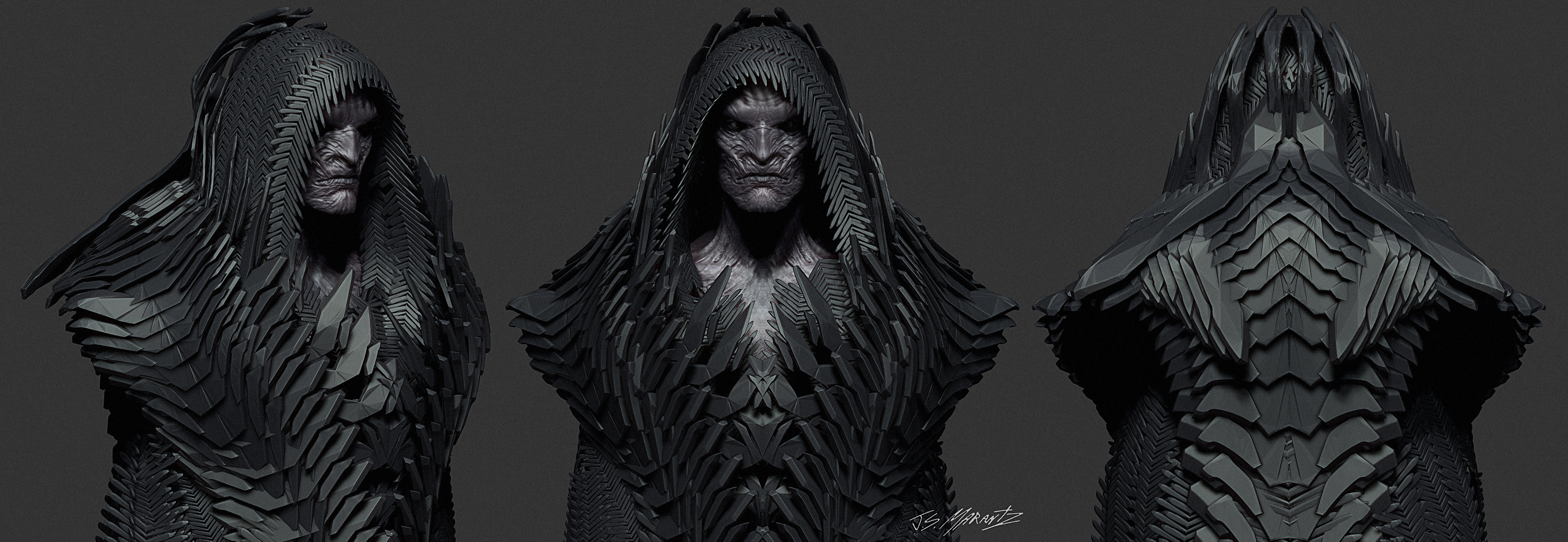 다크사이드의 원화입니다. 이 캐릭터를 작업하게 되어 얼마나 기뻤는지 표현할 수 없습니다. DC 유니버스의 모든 악당 중에서 다크사이드의 비중이 가장 큽니다. 만화에서 풍부한 역사를 가지고 있으며 DC 세계에서 가장 강력한 악당 중 한 명입니다. 잭 스나이더 감독의 비전을 실현하기 위해 의상 디자이너 마이클 윌킨슨 Michael Wilkinson과 함께 일하게 된 것은 절대적인 영광이었습니다. 이것은 내 경력에서 최고의 직업 중 하나였습니다.