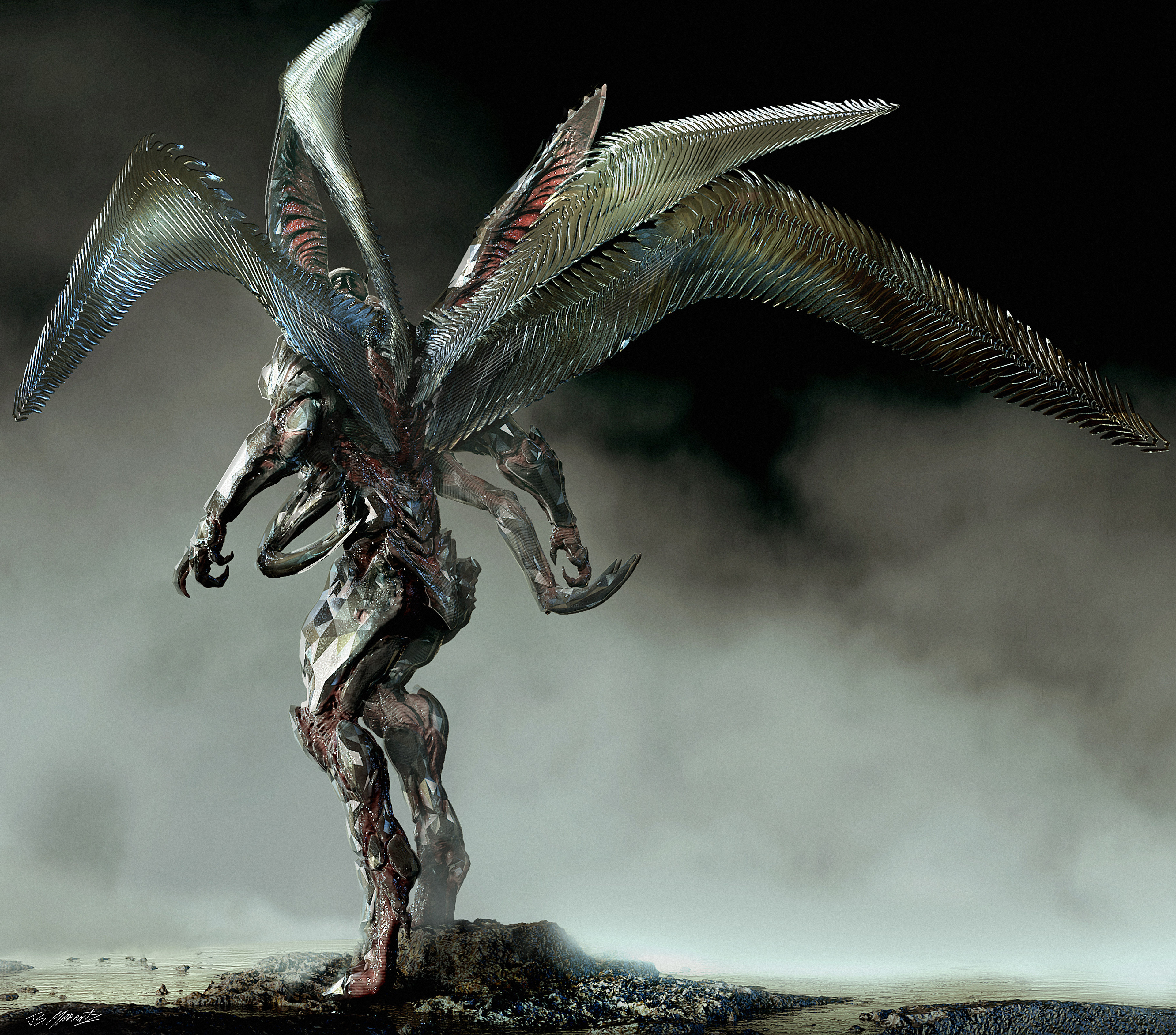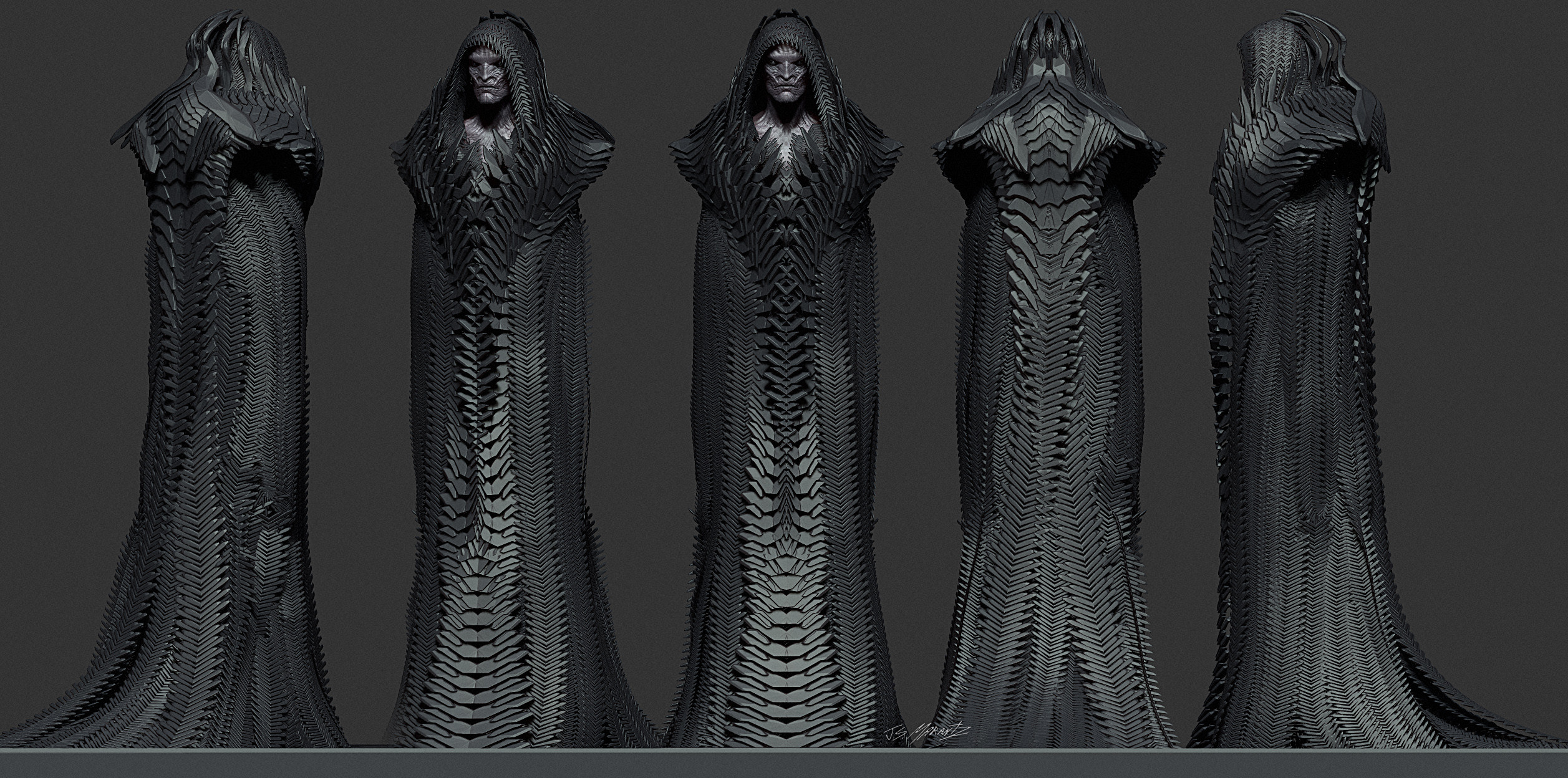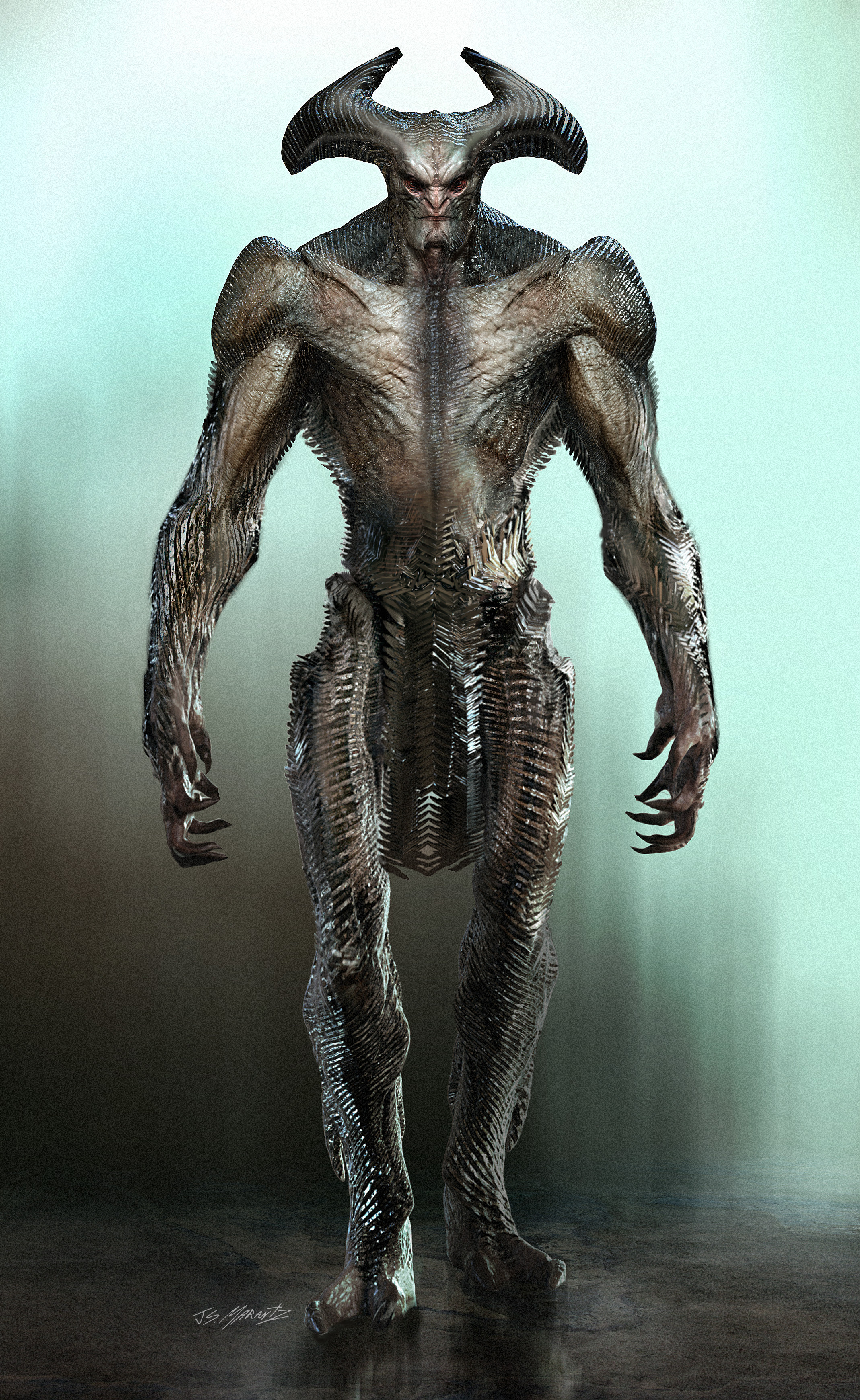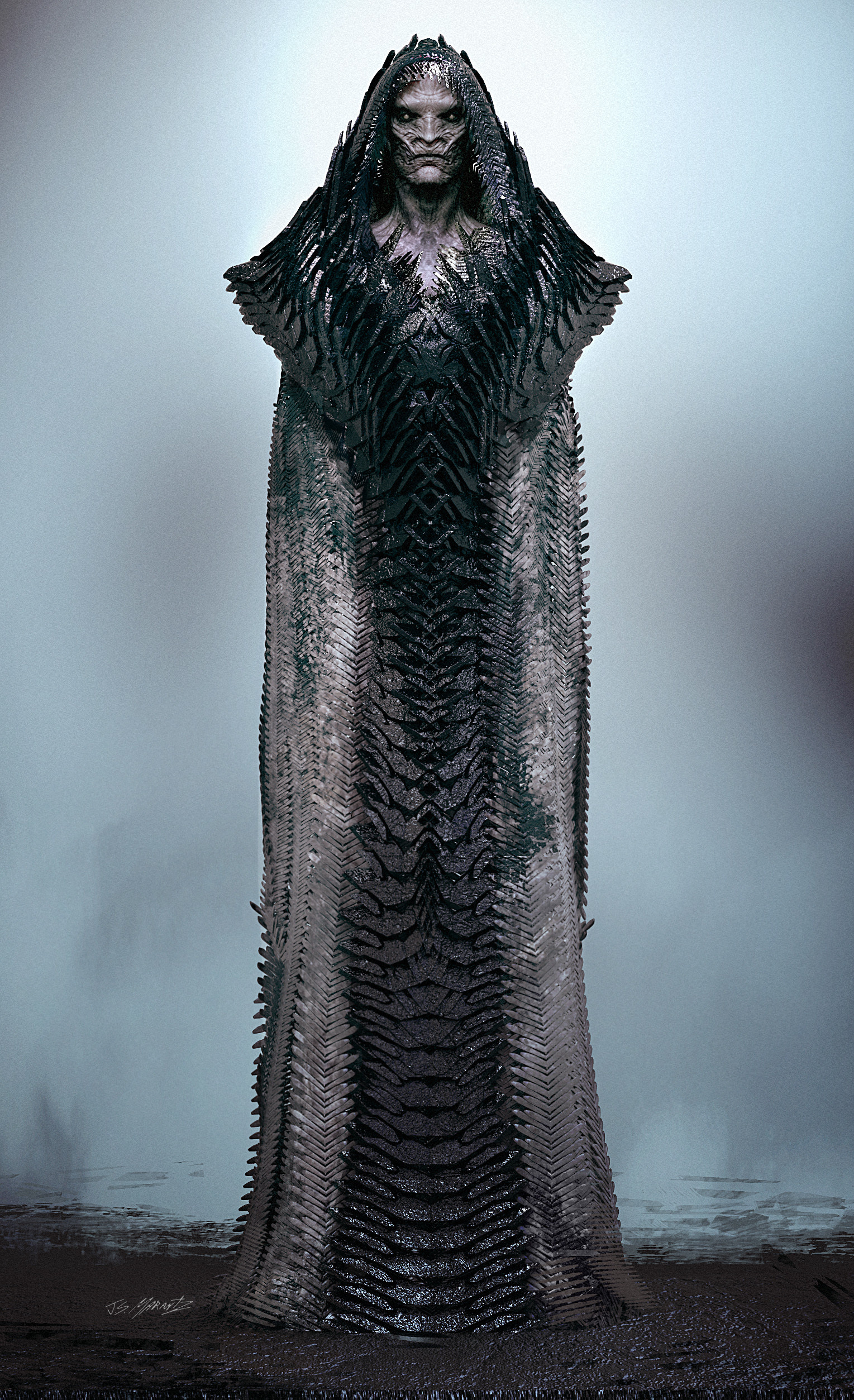 다크사이드의 원화입니다. 이 캐릭터를 작업하게 되어 얼마나 기뻤는지 표현할 수 없습니다. DC 유니버스의 모든 악당 중에서 다크사이드의 비중이 가장 큽니다. 만화에서 풍부한 역사를 가지고 있으며 DC 세계에서 가장 강력한 악당 중 한 명입니다. 잭 스나이더 감독의 비전을 실현하기 위해 의상 디자이너 마이클 윌킨슨 Michael Wilkinson과 함께 일하게 된 것은 절대적인 영광이었습니다. 이것은 내 경력에서 최고의 직업 중 하나였습니다.