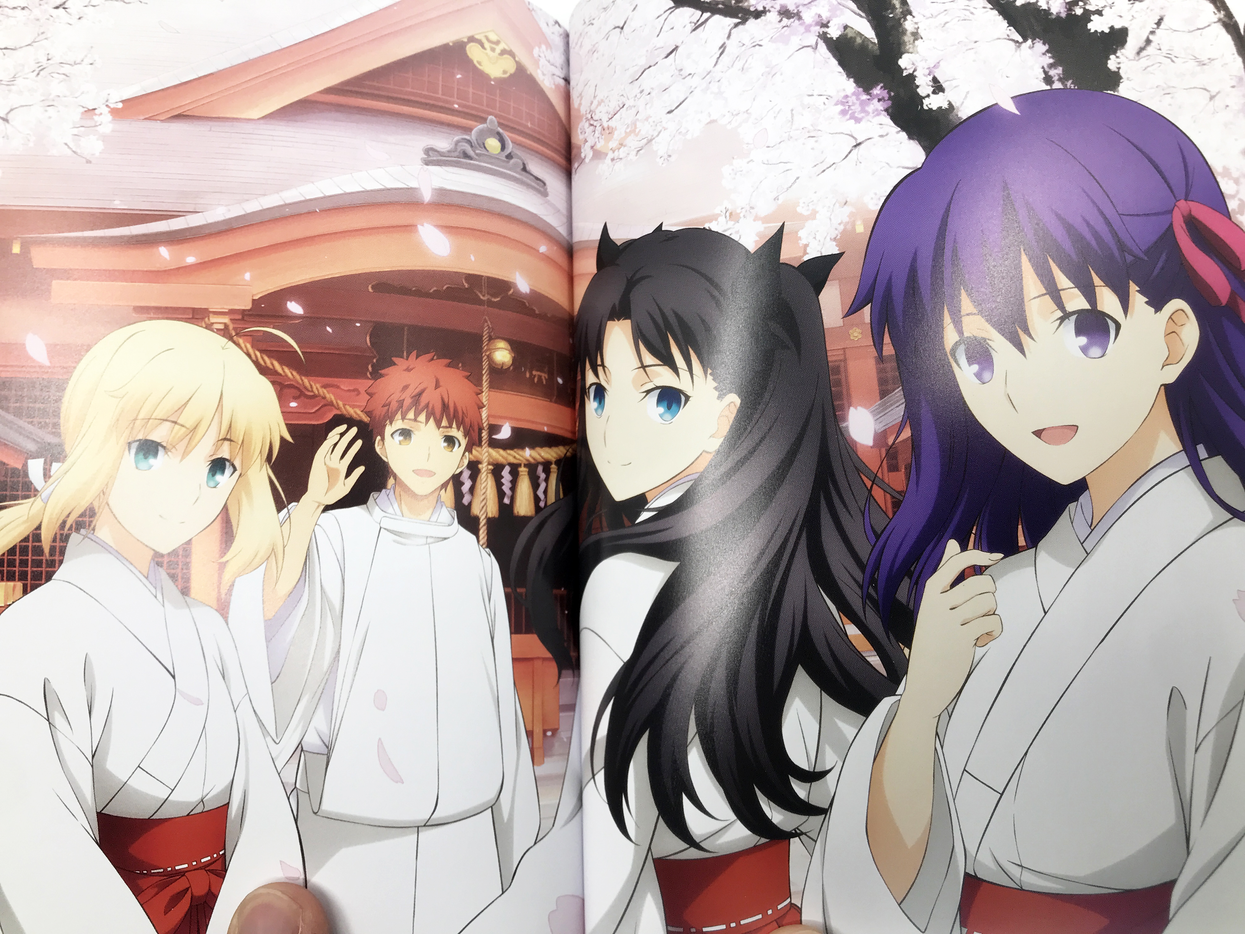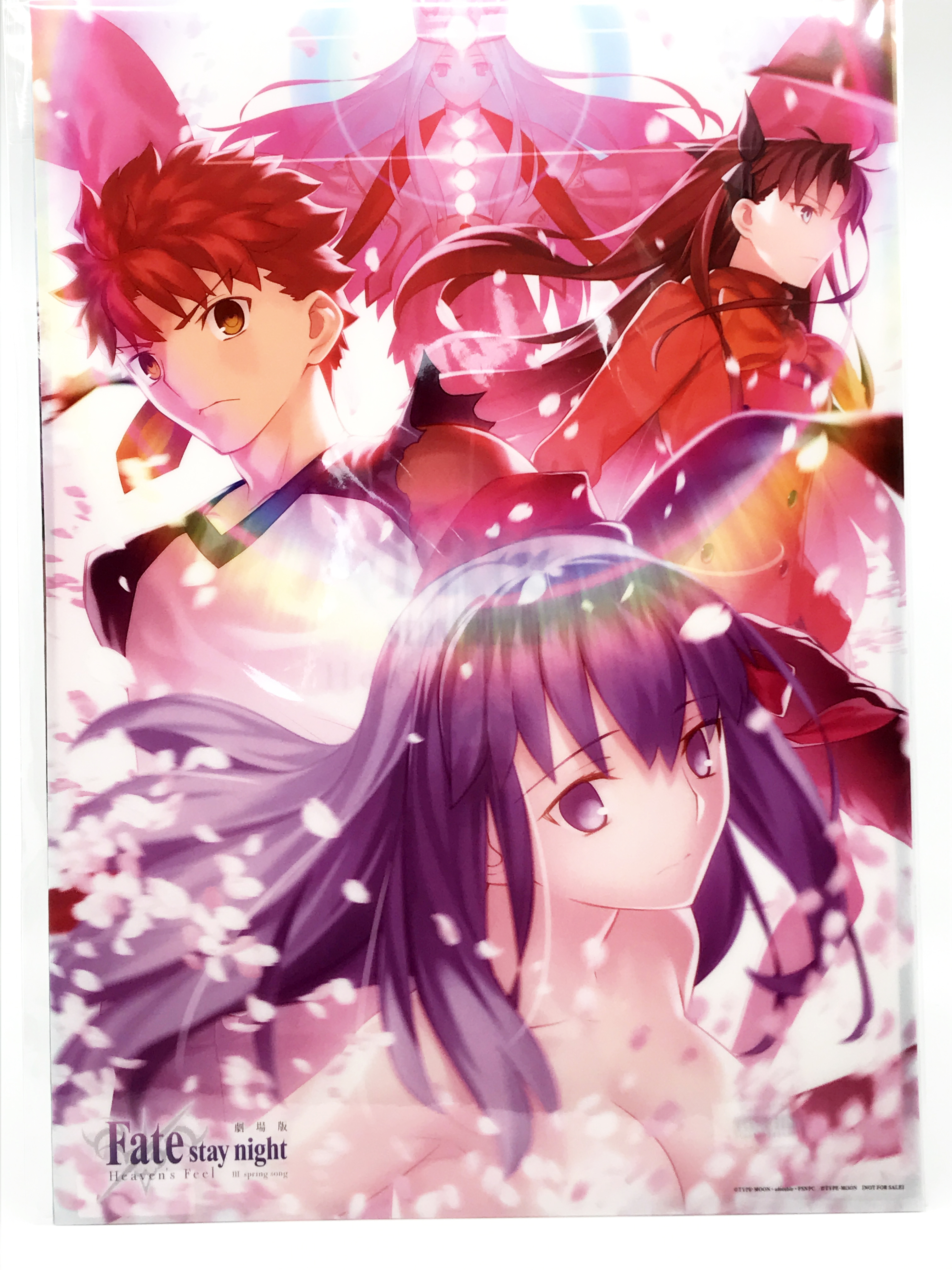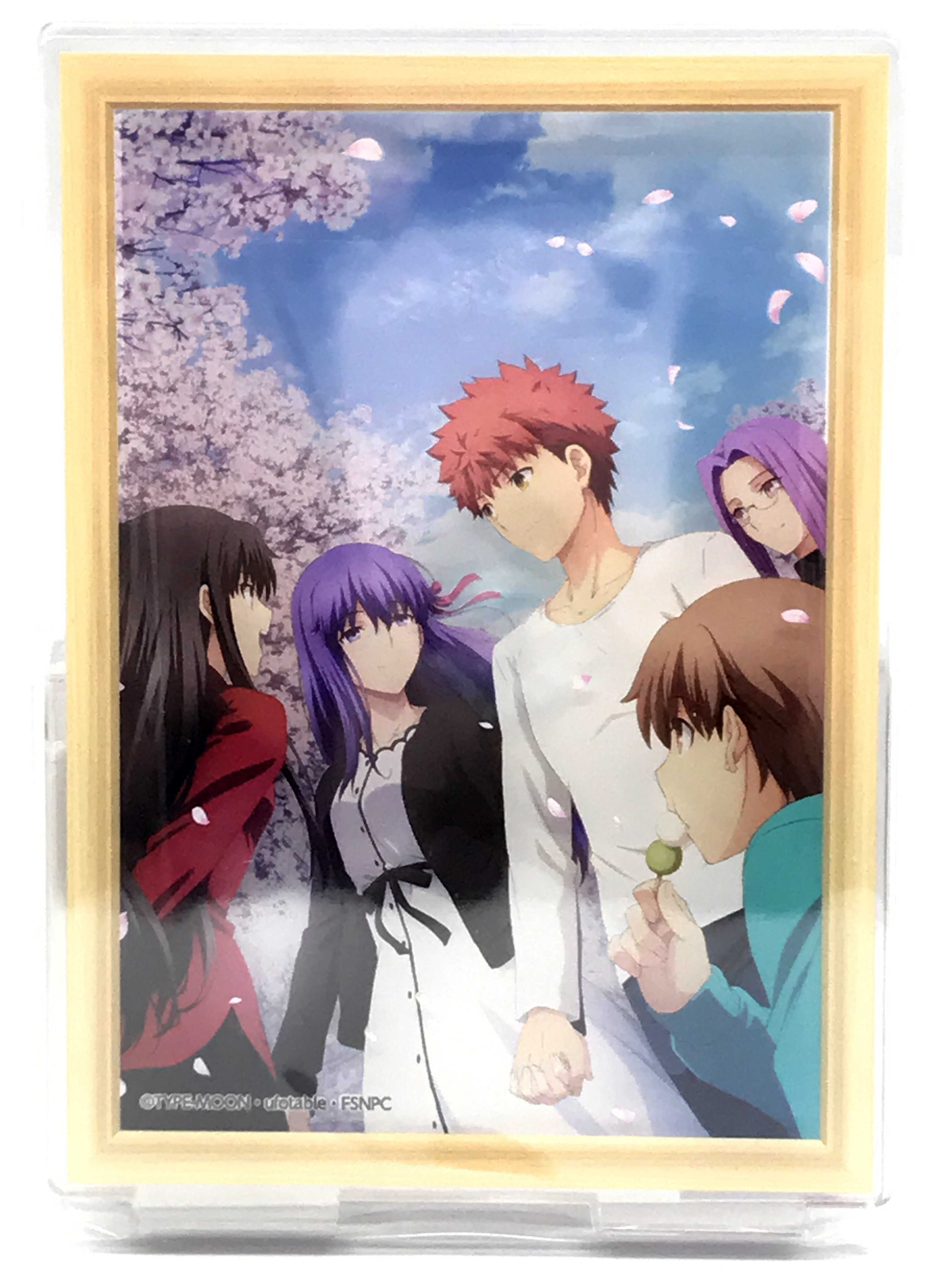애니플렉스+에선 A3 사이즈 캔버스 카드를 증정합니다. 일러스트는 딱 엔딩 직후 시점을 그리는데 손을 잡지 않고 나아간 시로와 사쿠라가 이 장면에선 손을 잡고 있고 둘을 맞이해주는 린, 라이더, 타이가의 모습을 보여줍니다.