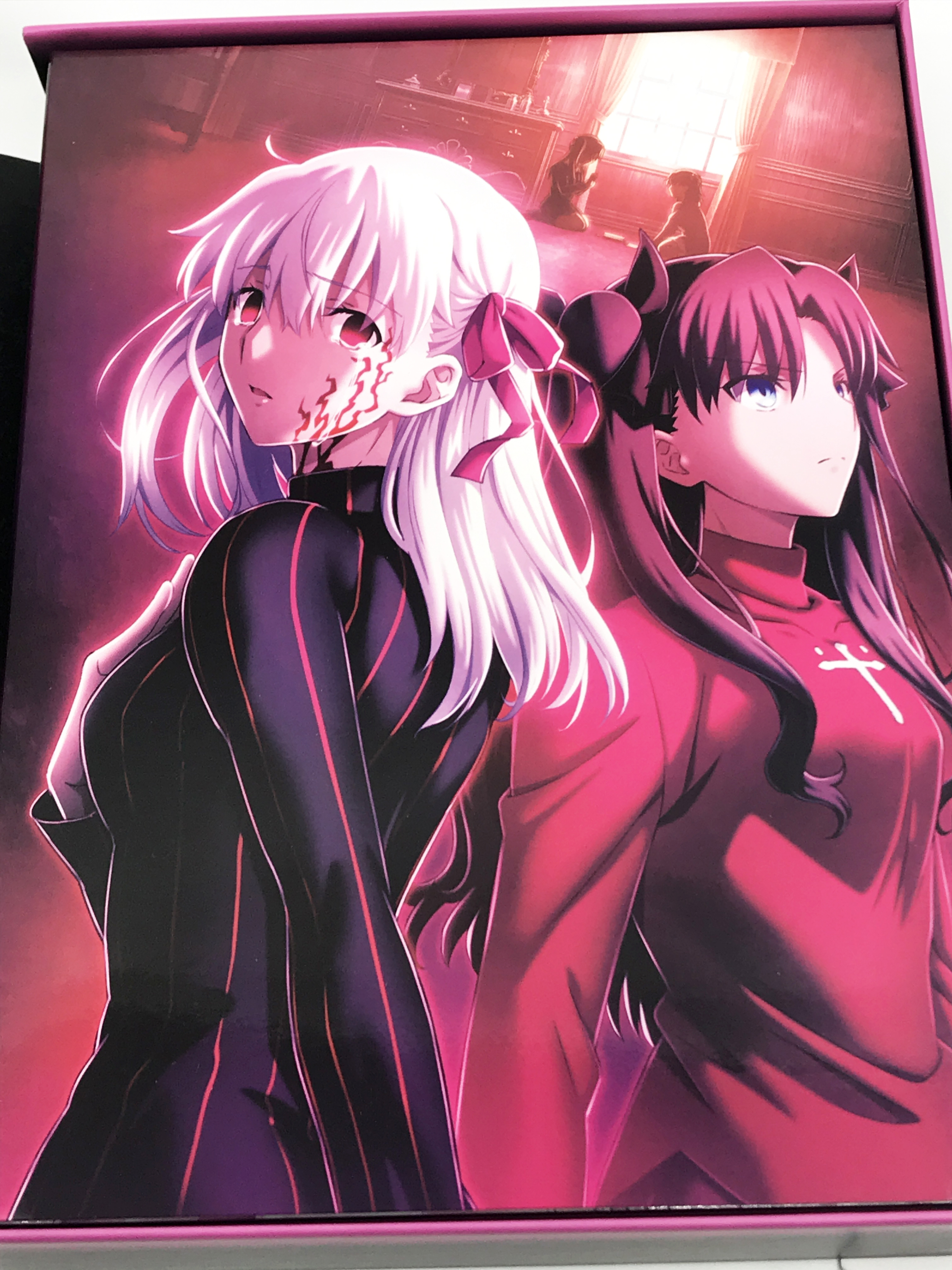 재킷 일러스트는 공식에서 공개된 물건이라 깔금한 이미지를 찾으실 수 있습니다. 좌측엔 헤븐즈 필을 입은 이리야스필, 중앙에는 코토미네 키레이와 에미야 시로의 결전, 우측에는 마토 사쿠라와 토오카사 린 자매·트럼프 게임을 두는 어린 시절이 배치된 구성입니다.