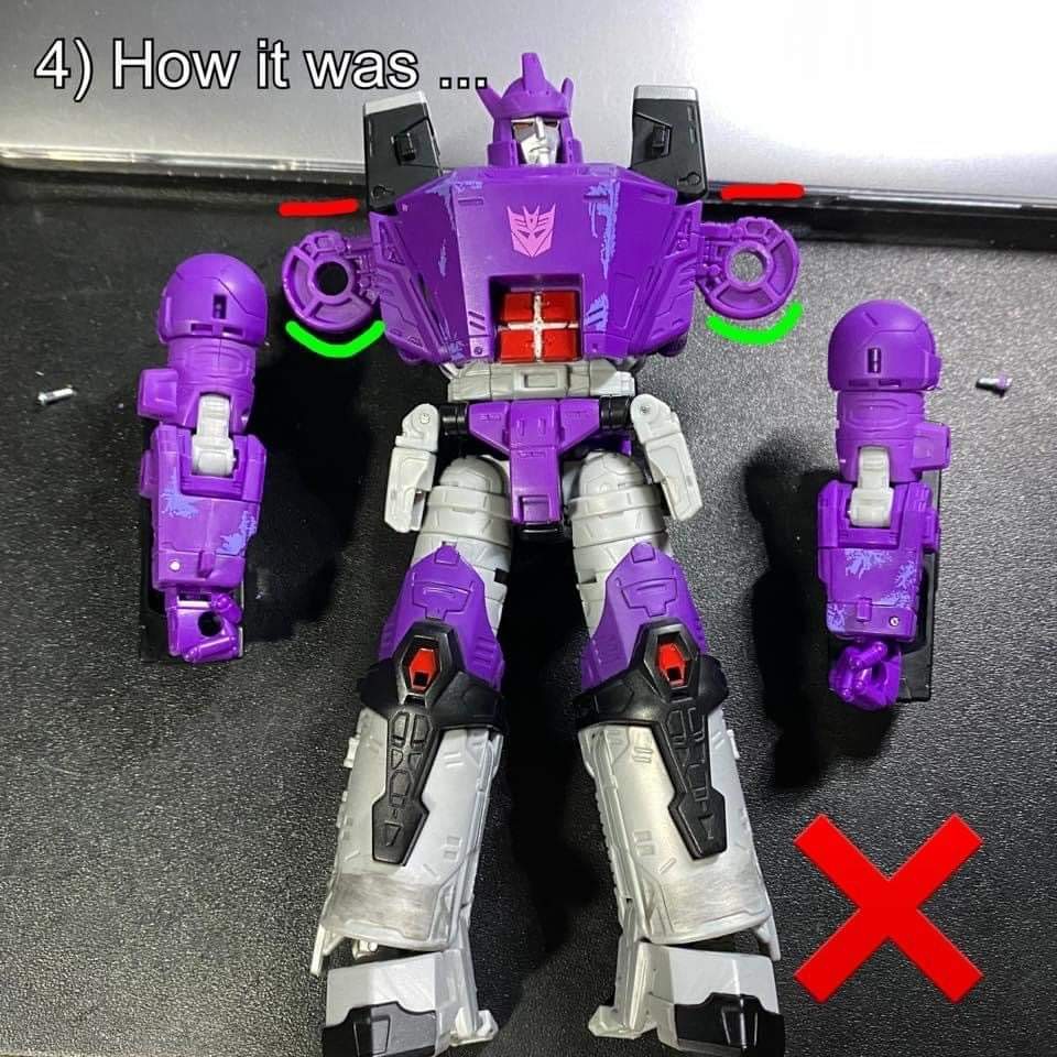 “I really hope this is fixed before it drops at retail, but we all know it won't be. Shoulder fix for Kingdom Galvatron.”