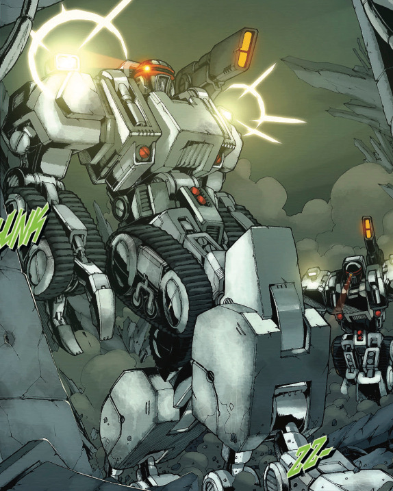 본래 G1에서 센추리온 드론이라하면, 에어리얼봇과 스턴티콘의 탄생을 다룬 에피소드인 <The Key to Vector Sigma> 에피소드에 나온 벡터 시그마 열쇠를 지키는 드론 군단을 의미합니다. IDW 2005 G1 코믹스 <Stormbringer>에선 완전 다른 생김새의 드론이 나왔습니다. <워 포 사이버트론>의 시즈 라인업으로 출시된 브런트는 저 센추리온 드론의 모습을 베이스로 로봇 모드를 새롭게 얻은 케이스고 브런트를 다시 리데코해서 출시한 것이 센추리온 드론입니다. 다시 말해, 센추리온 드론의 모습을 베이스로 브런트에게 로봇 모드를 주었고 오리지널인 센추리온 드론은 색놀이로 출시된 셈.