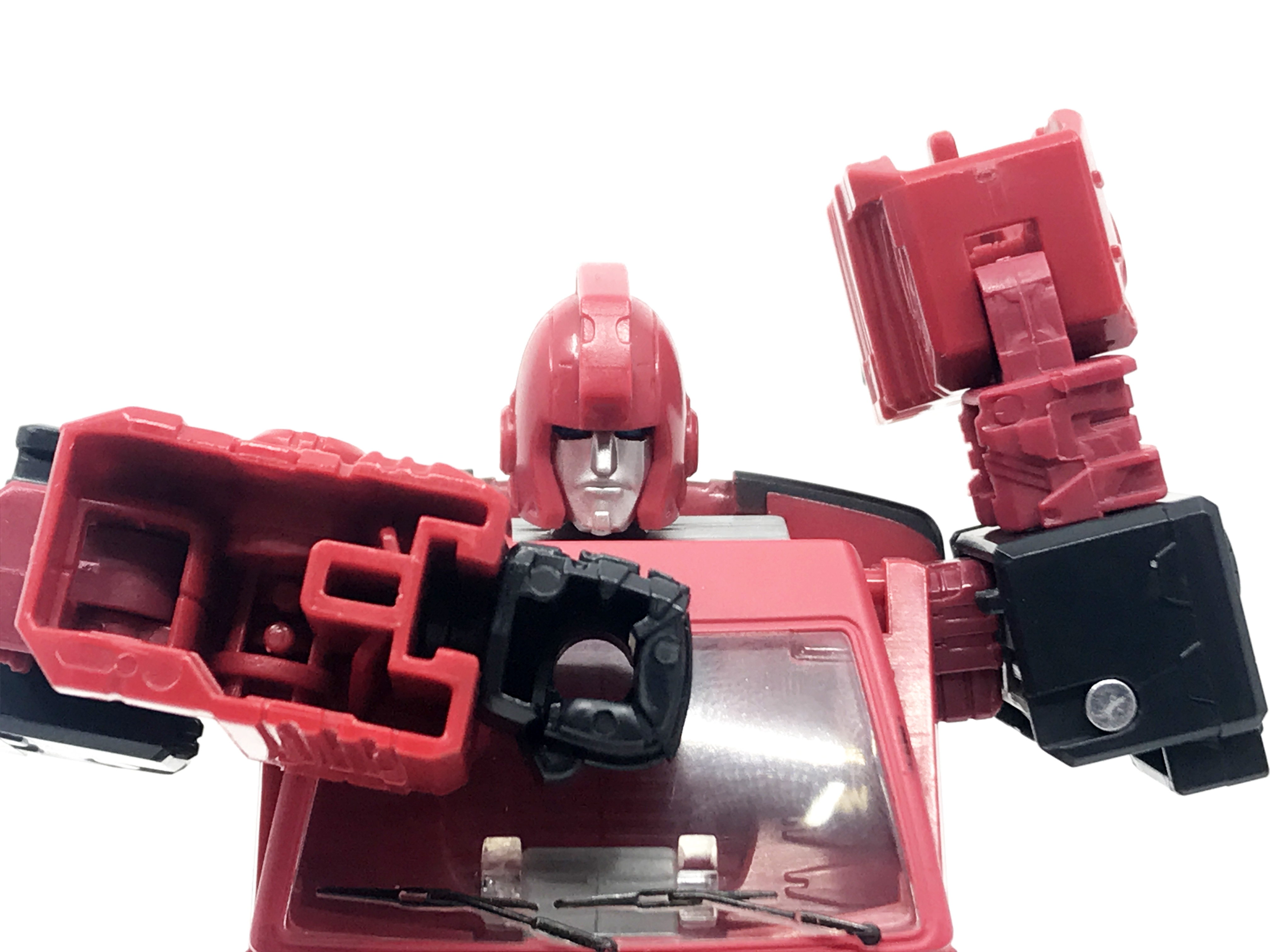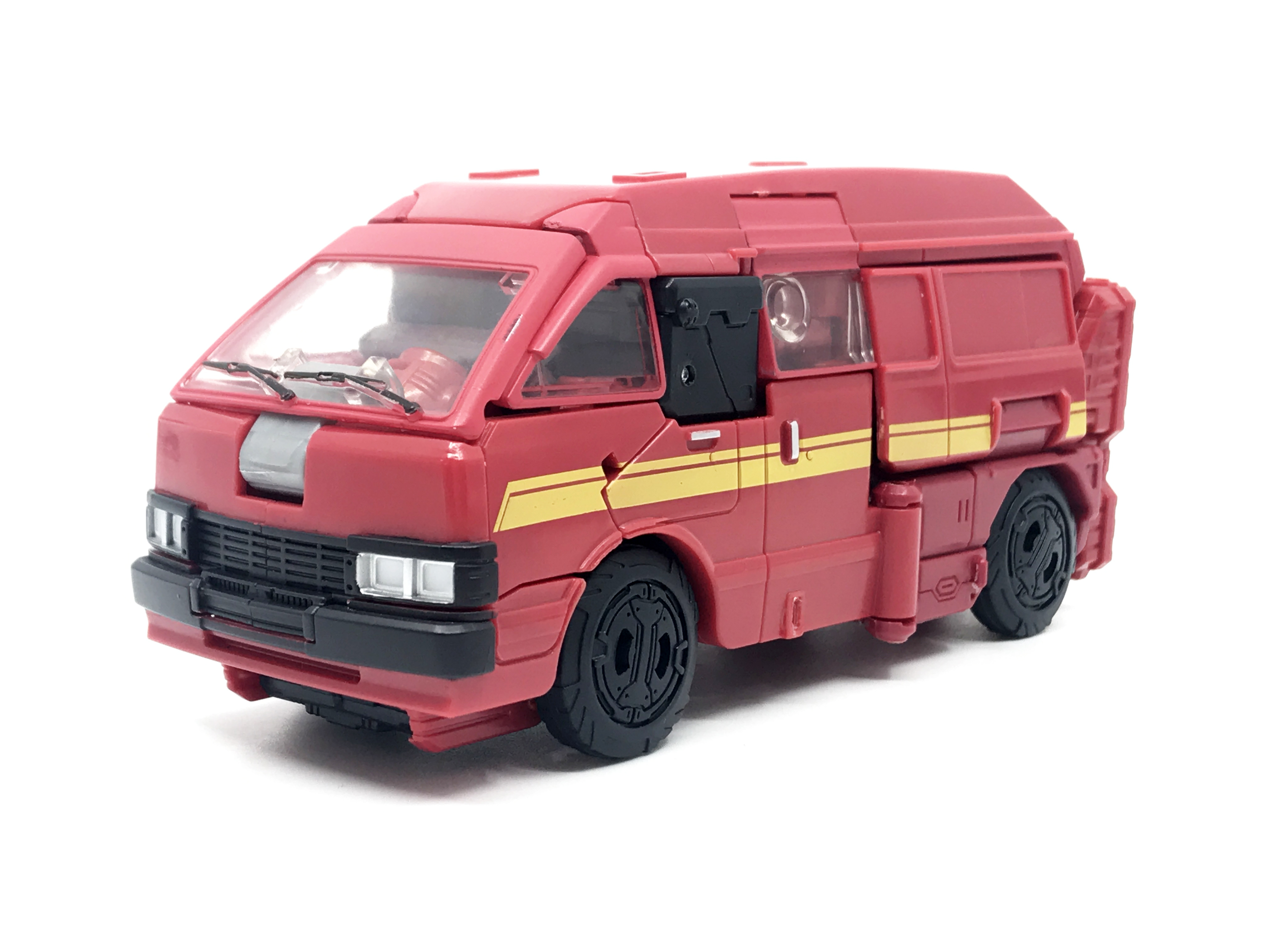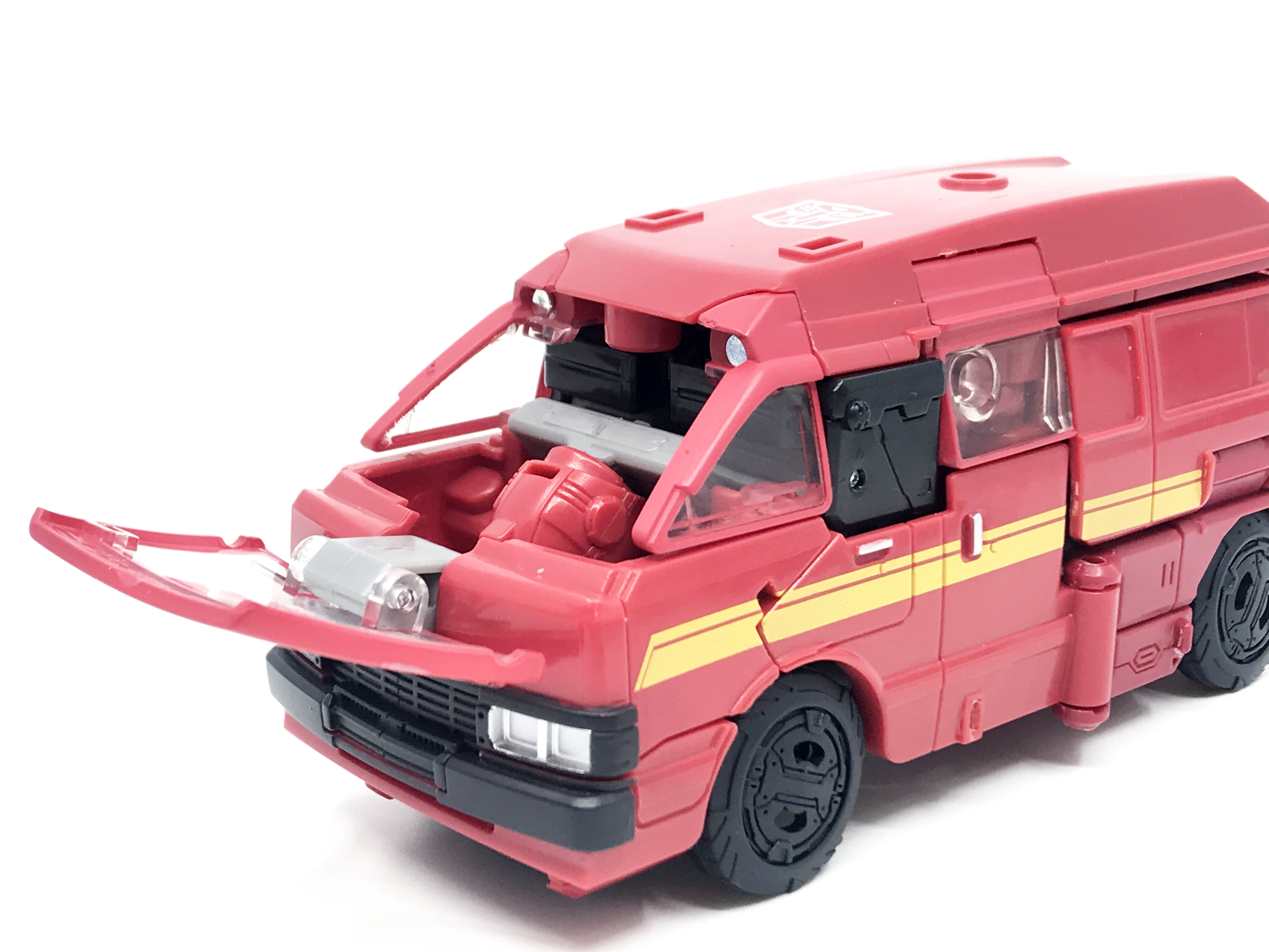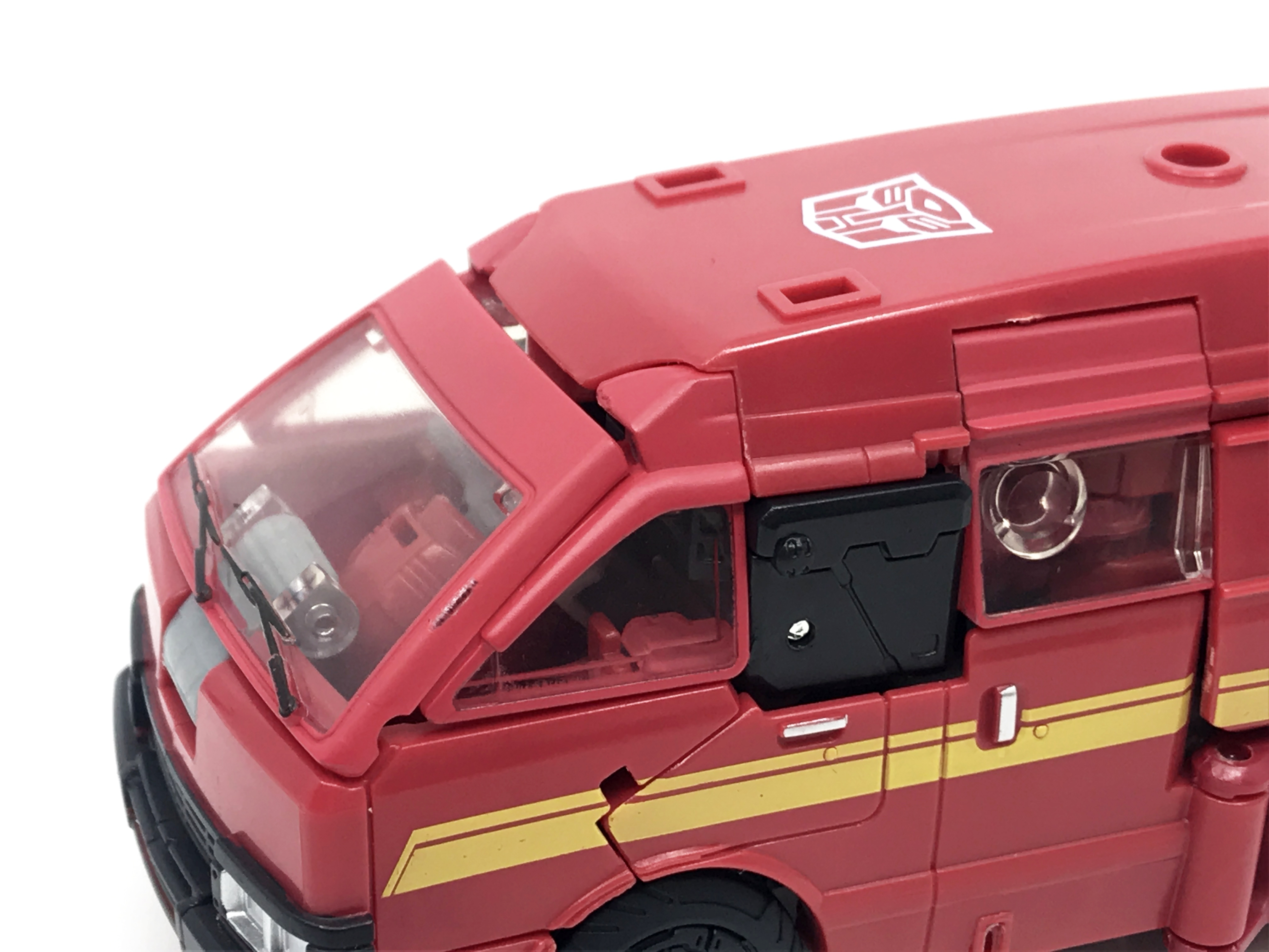 G1 애니메이션의 아이언하이드는 닛산 체리 바네트. 봉고차로 변신합니다. 어스라이즈 제품들은 범블비 빼고 라이선스가 없어 실제와 닮은꼴의 비클로 변신합니다. 꽤 닮은 편이지만 시즈 조형을 리툴 해서 그런지 로봇 모드 발이 그대로 나온 것이 안타까운 부분이죠.