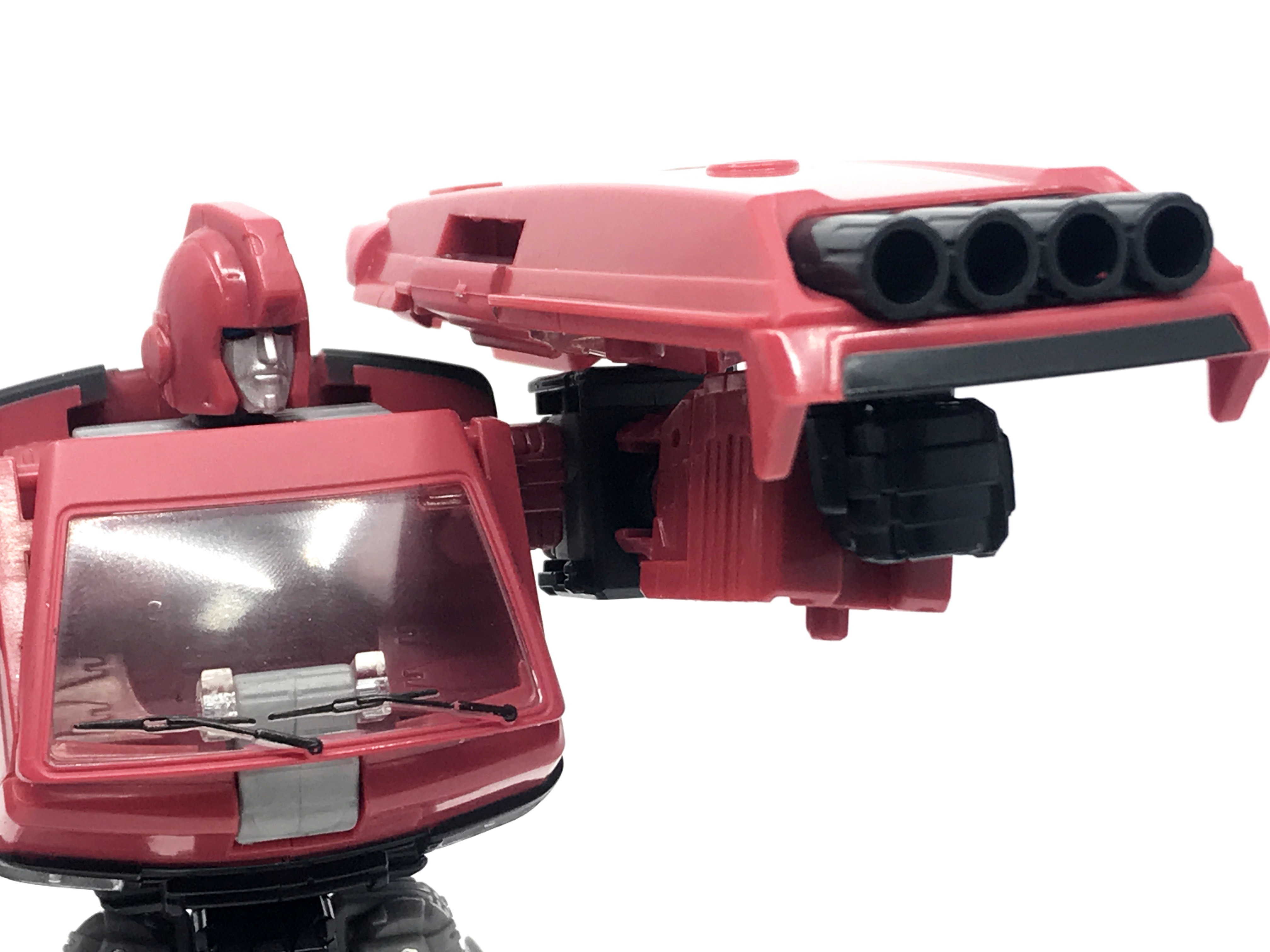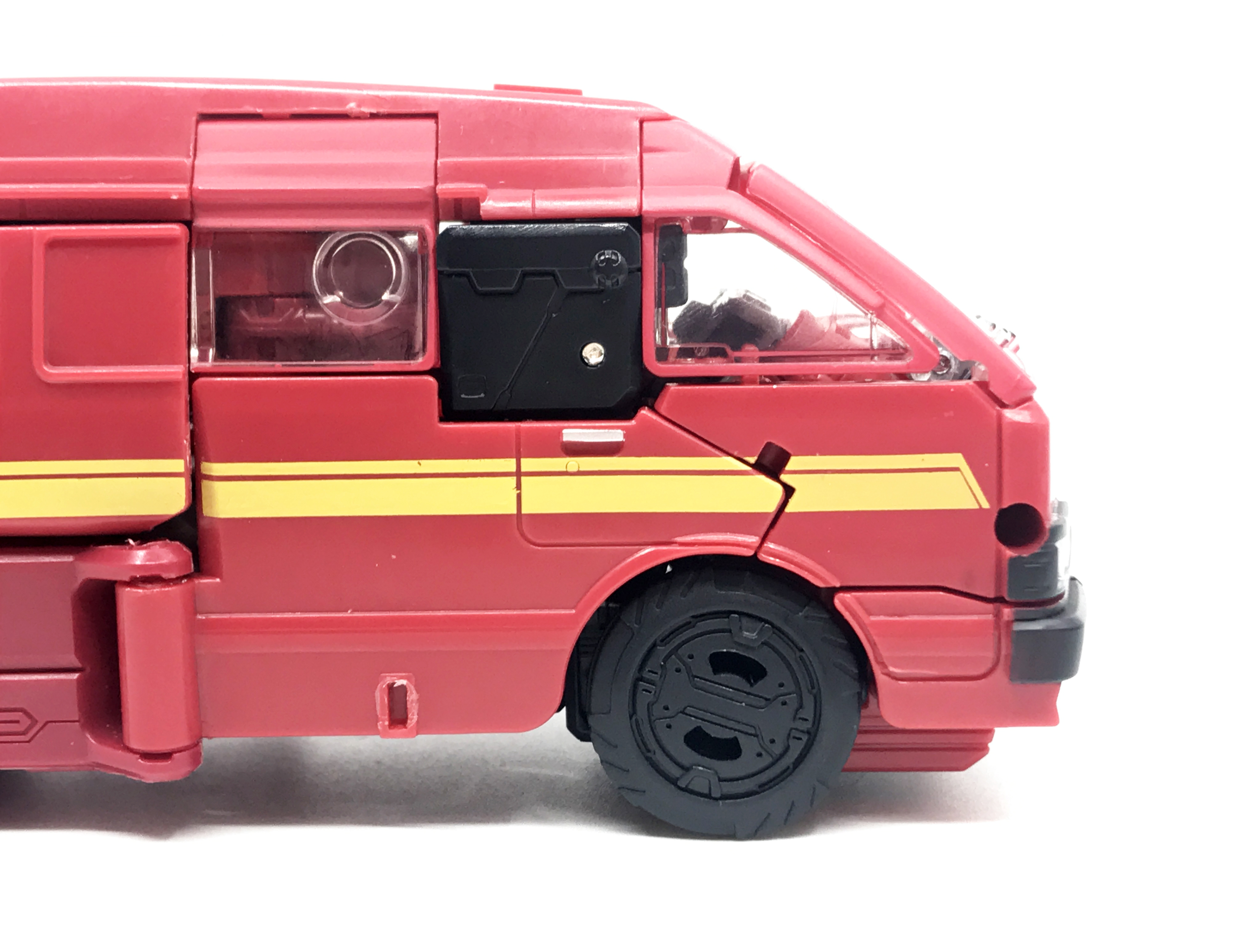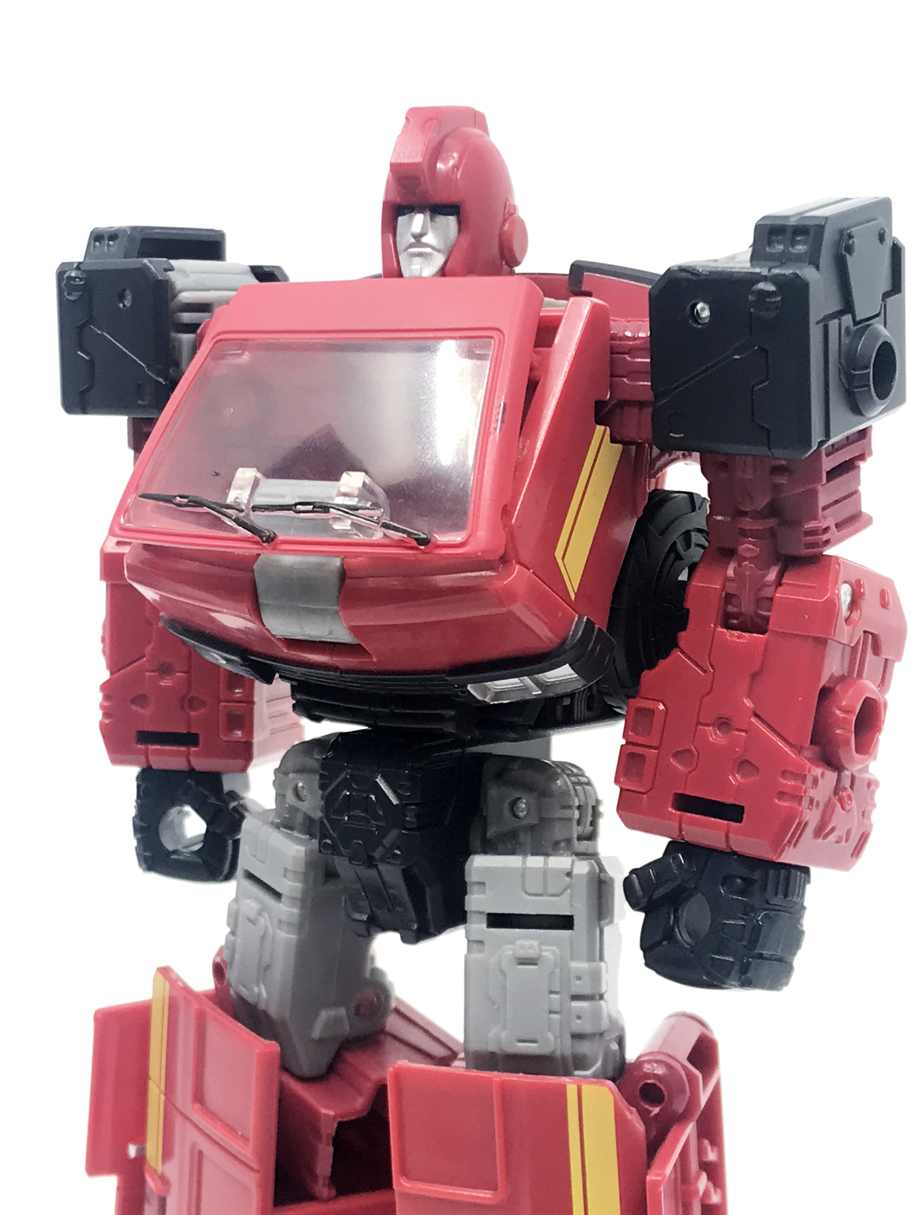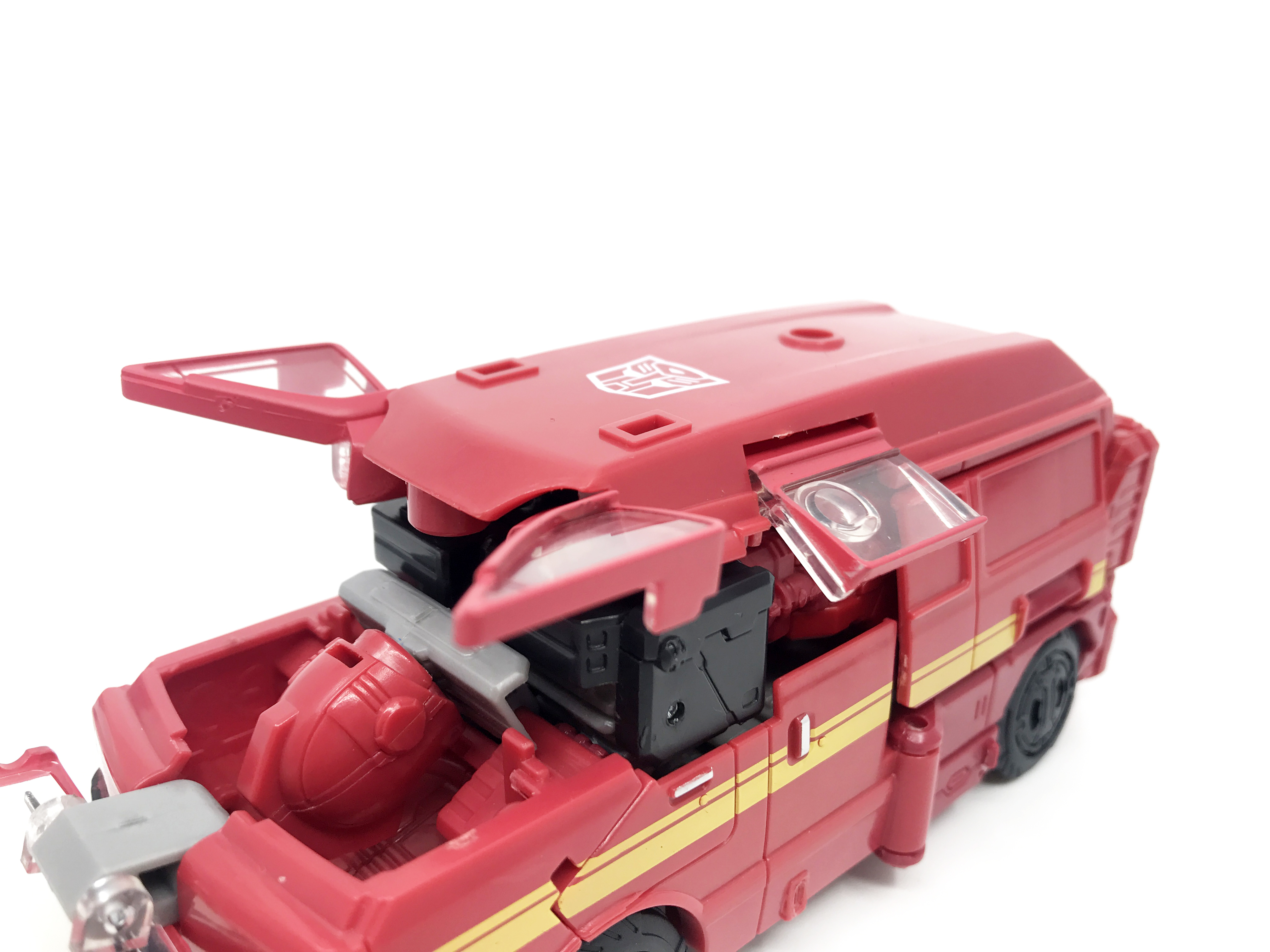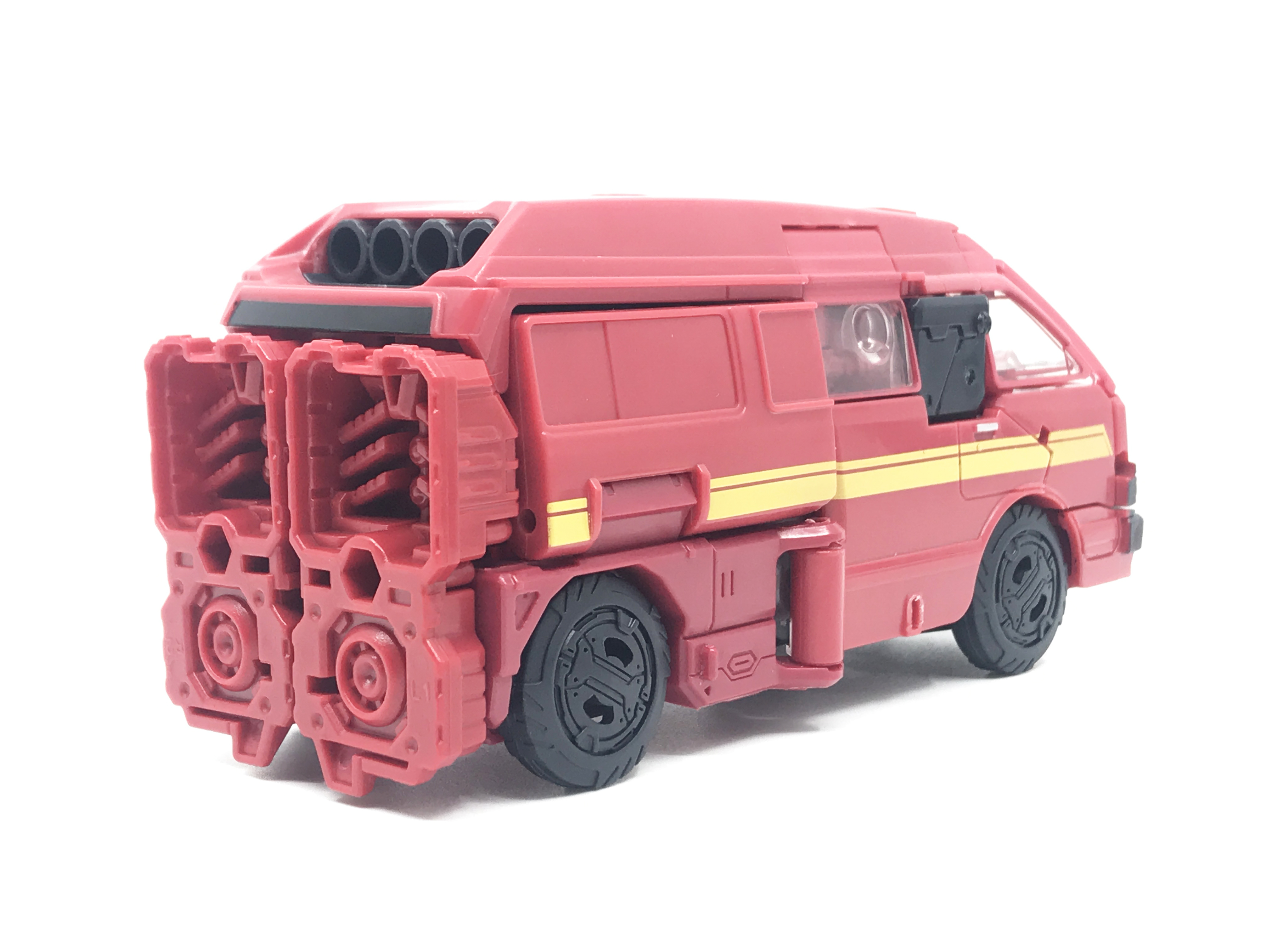 G1 애니메이션의 아이언하이드는 닛산 체리 바네트. 봉고차로 변신합니다. 어스라이즈 제품들은 범블비 빼고 라이선스가 없어 실제와 닮은꼴의 비클로 변신합니다. 꽤 닮은 편이지만 시즈 조형을 리툴 해서 그런지 로봇 모드 발이 그대로 나온 것이 안타까운 부분이죠.