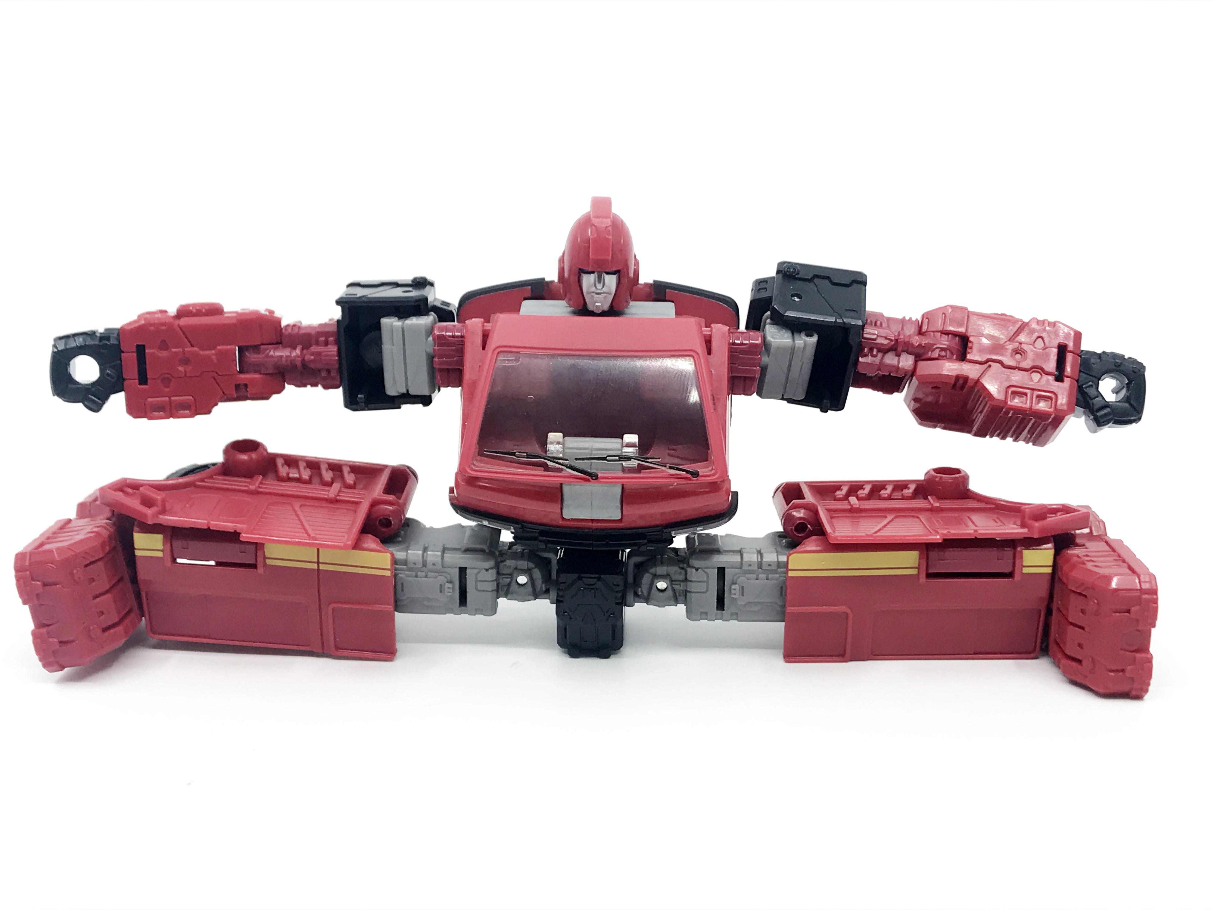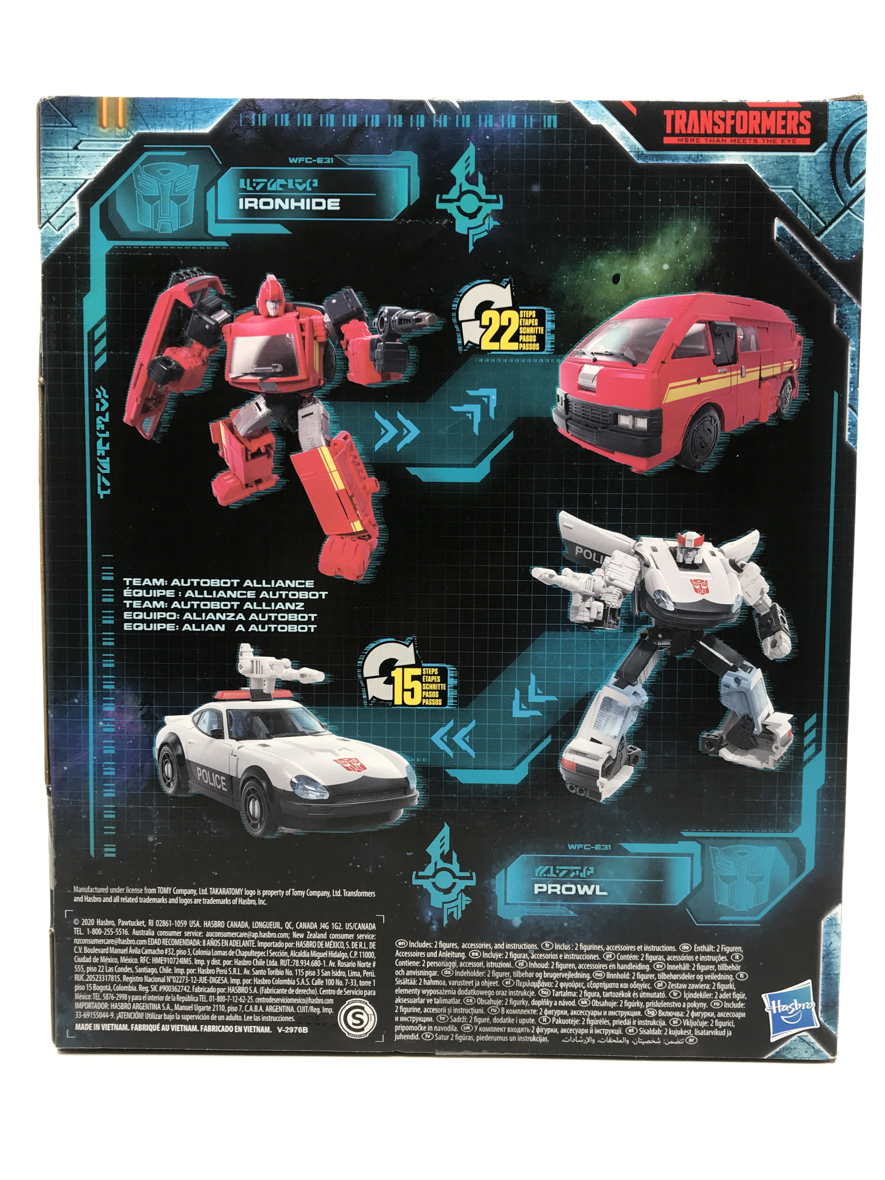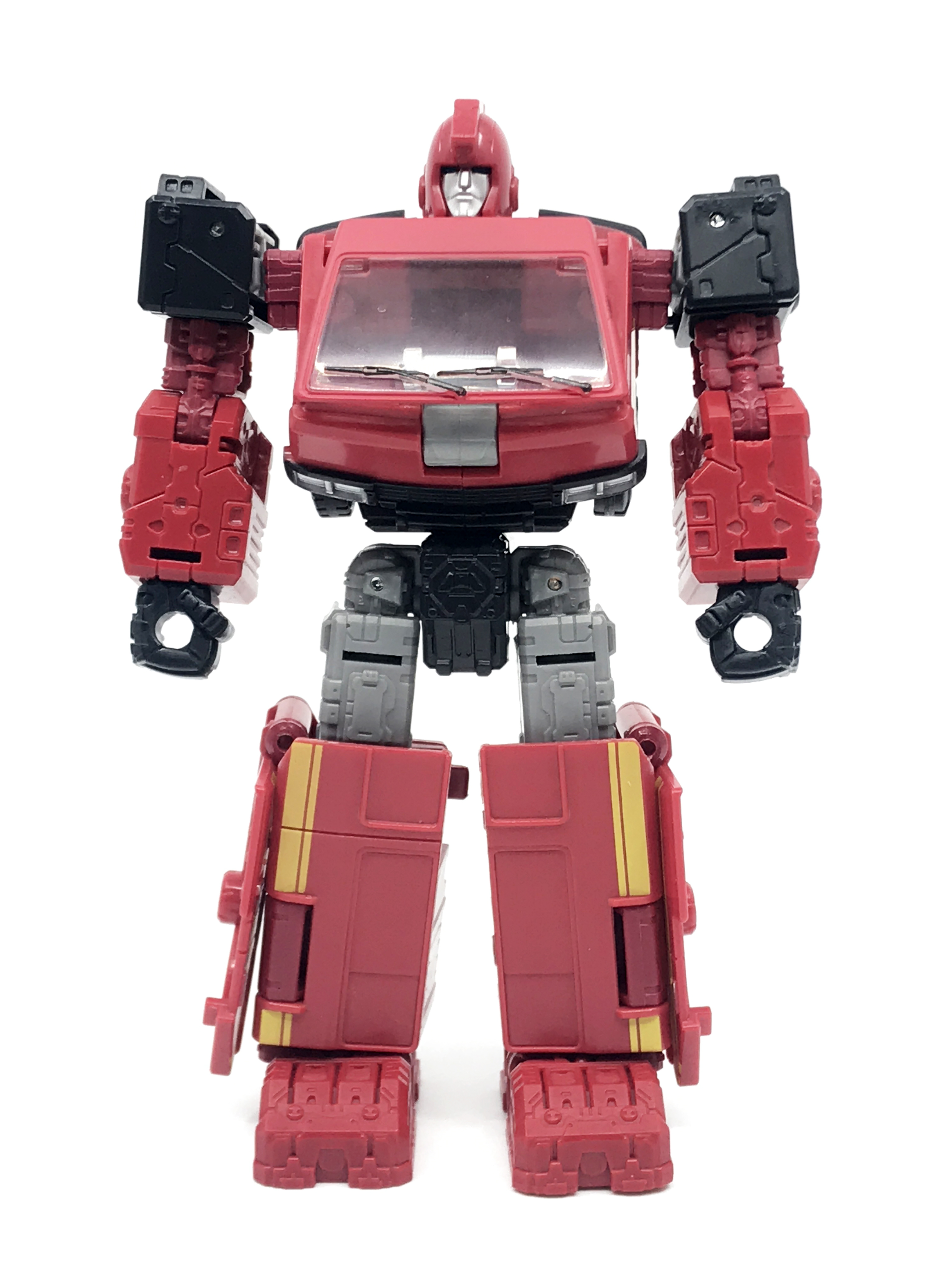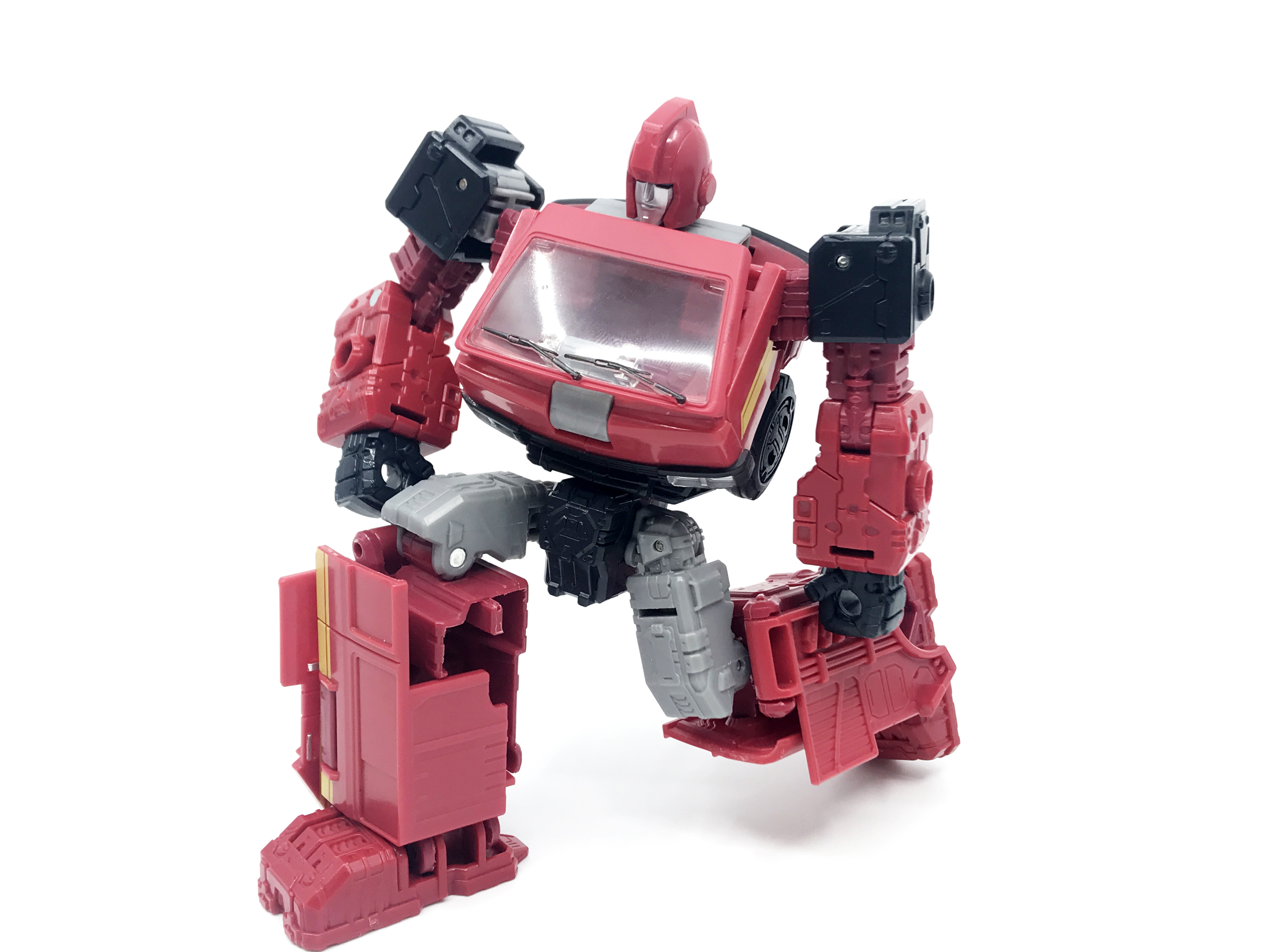G1 애니메이션의 아이언하이드는 닛산 체리 바네트. 봉고차로 변신합니다. 어스라이즈 제품들은 범블비 빼고 라이선스가 없어 실제와 닮은꼴의 비클로 변신합니다. 꽤 닮은 편이지만 시즈 조형을 리툴 해서 그런지 로봇 모드 발이 그대로 나온 것이 안타까운 부분이죠.