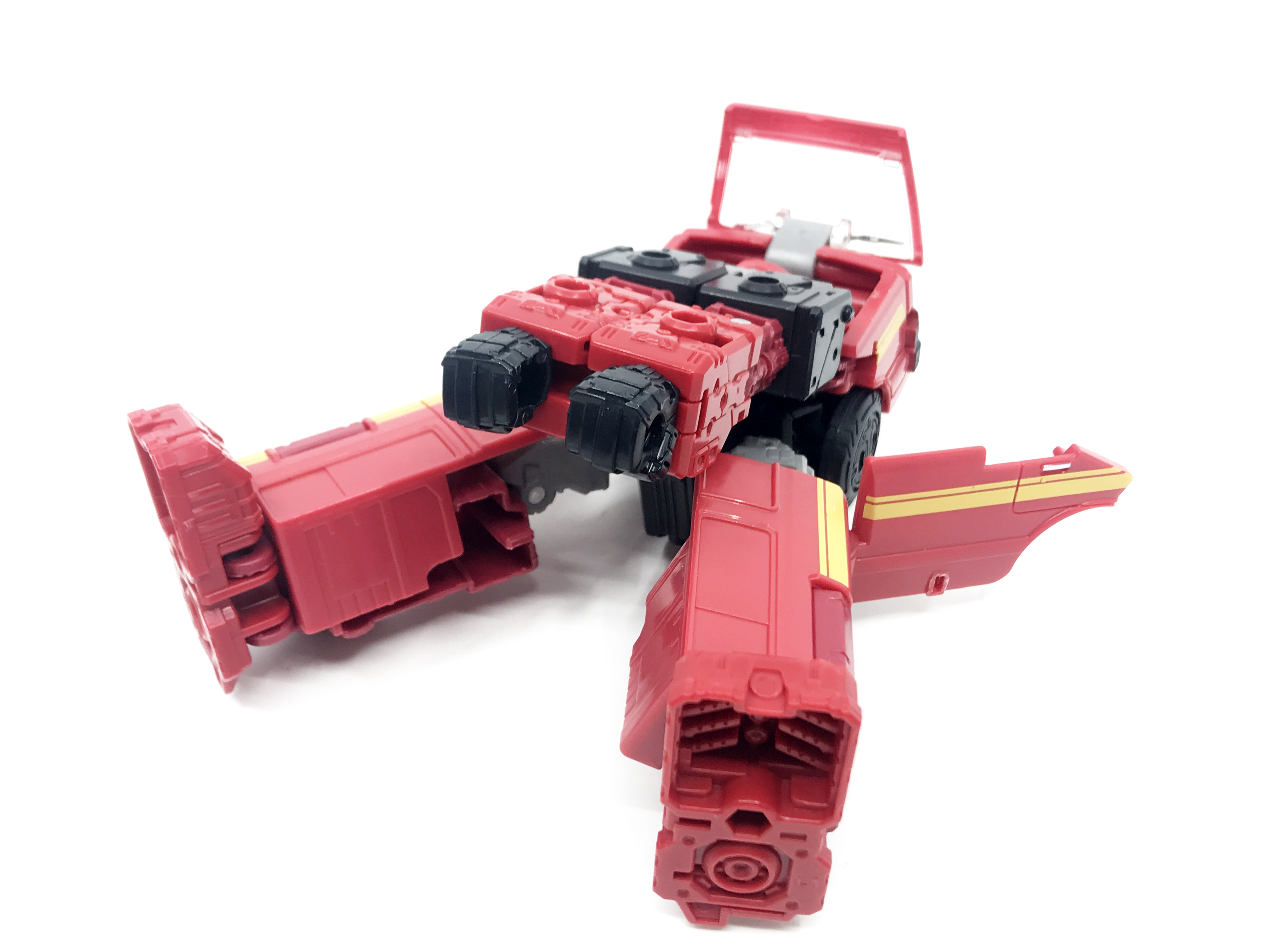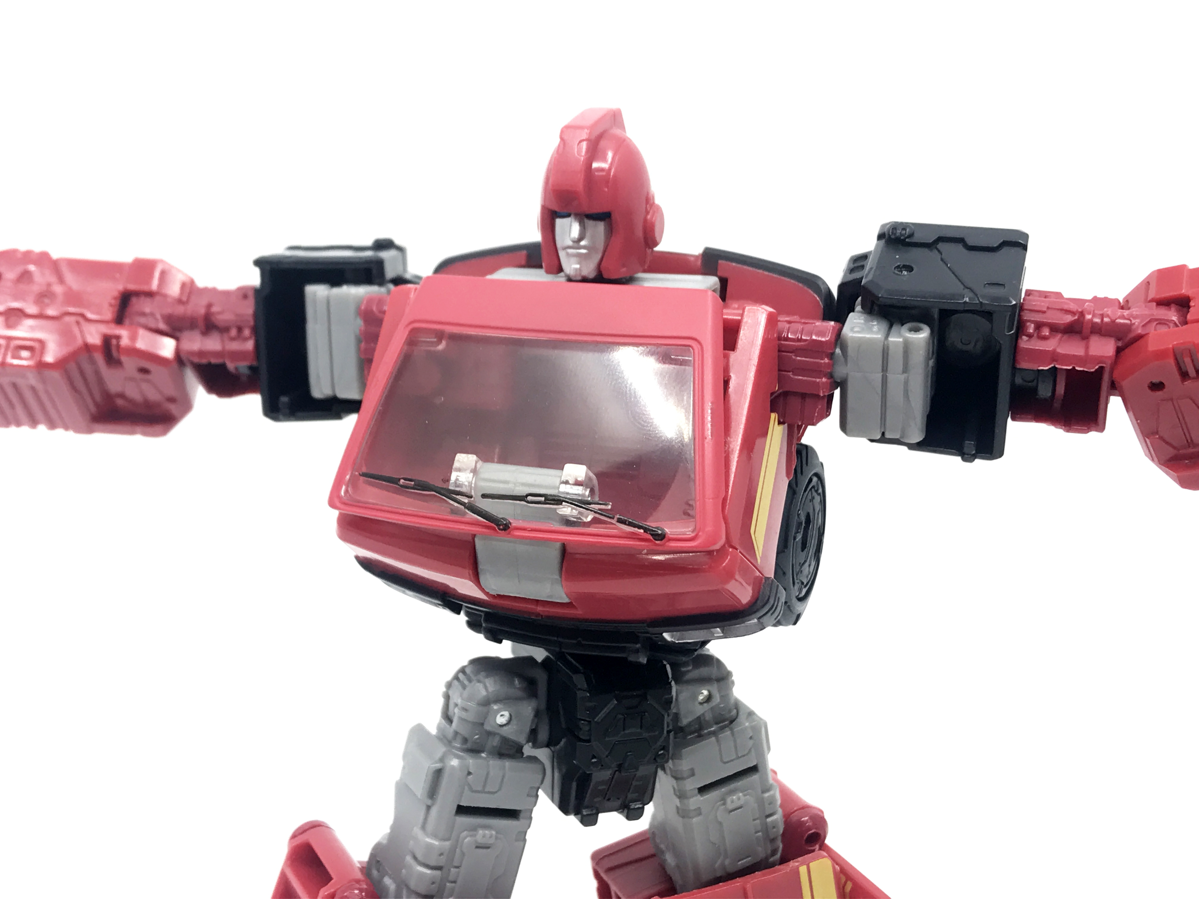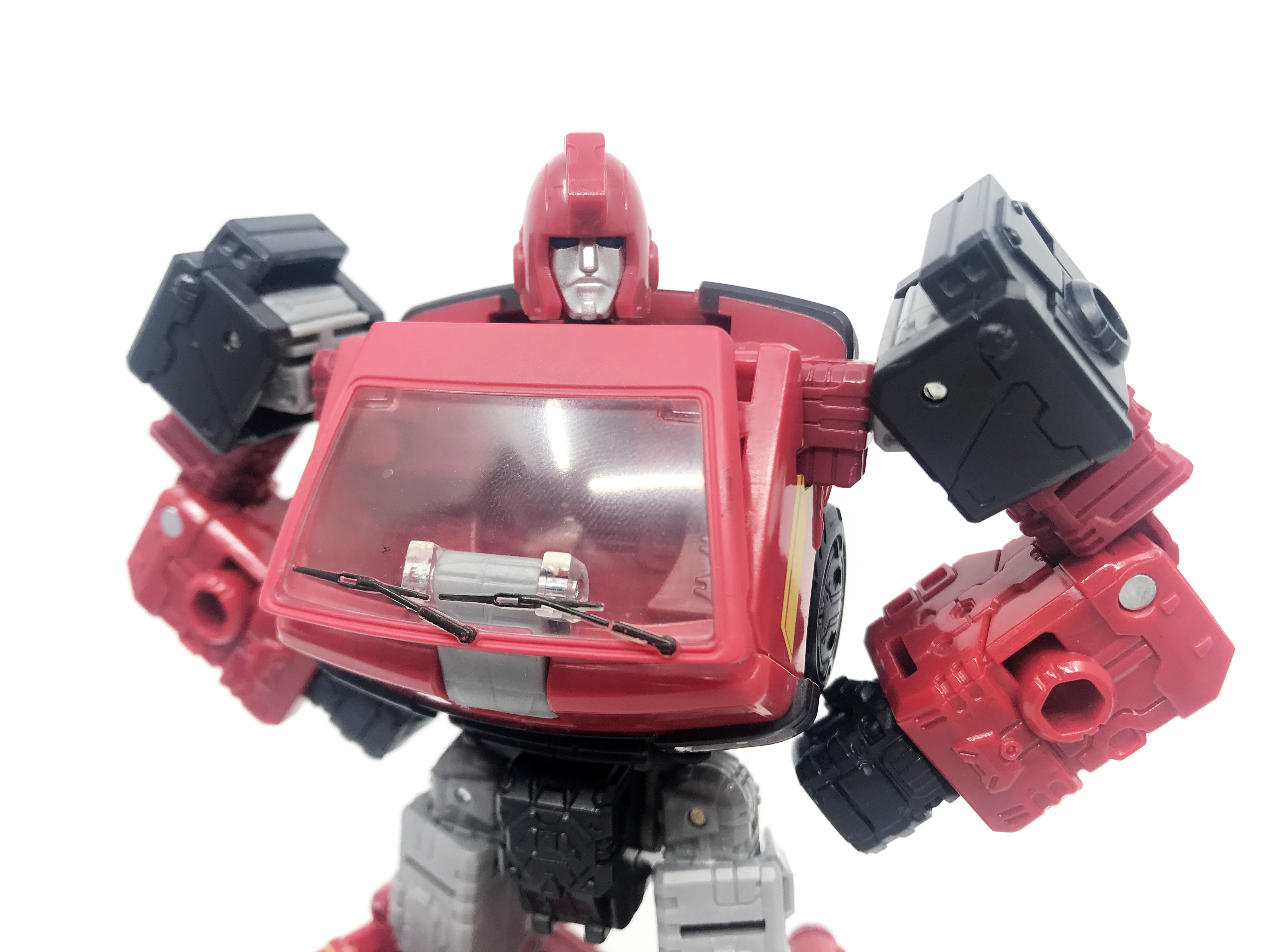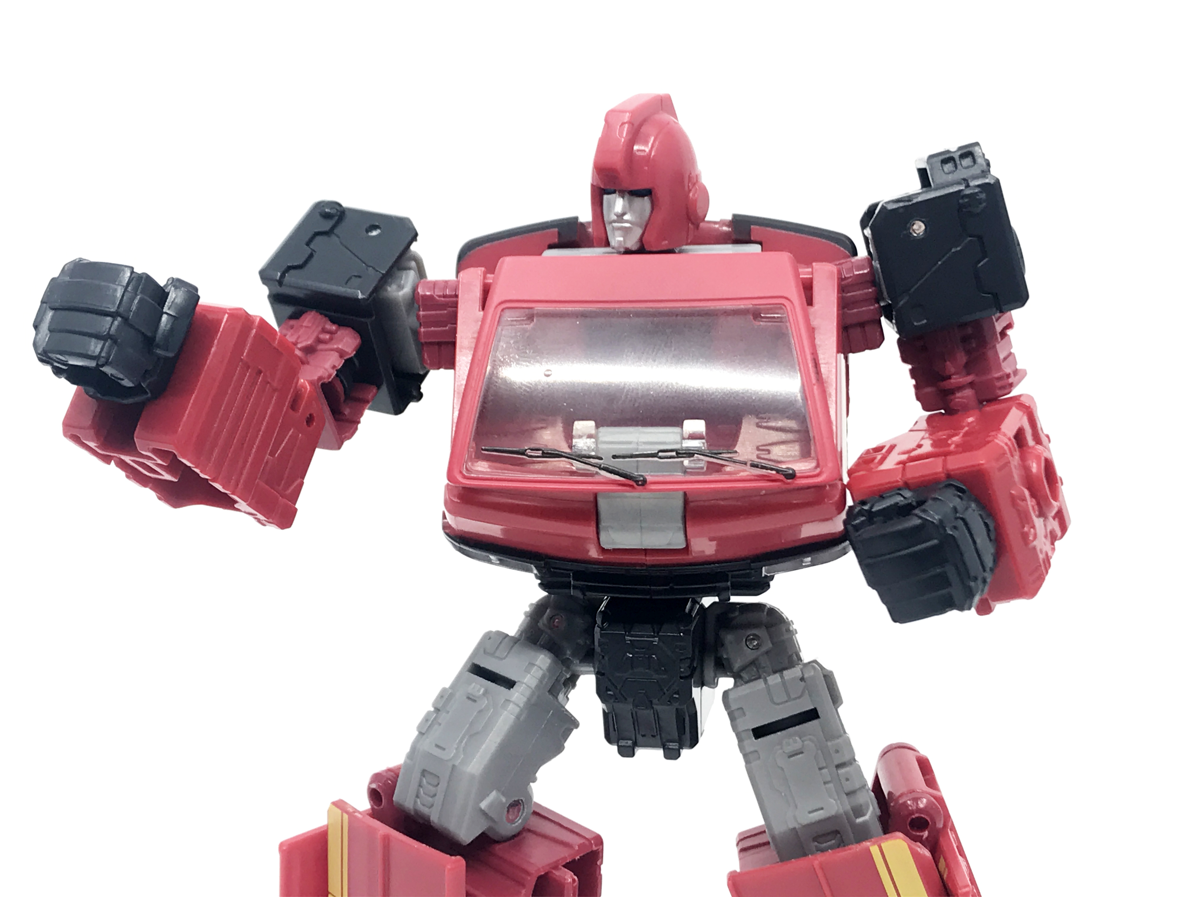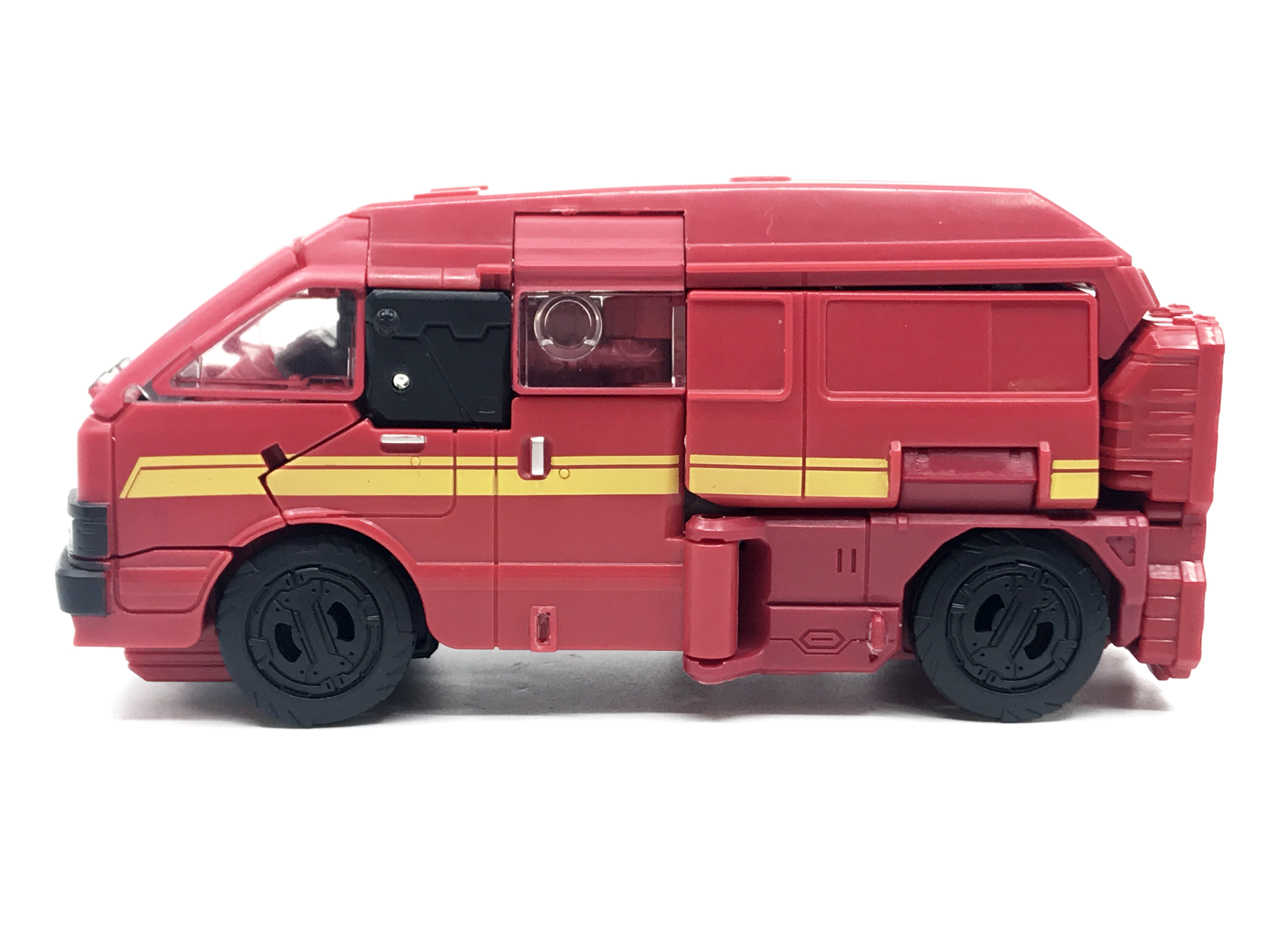 G1 애니메이션의 아이언하이드는 닛산 체리 바네트. 봉고차로 변신합니다. 어스라이즈 제품들은 범블비 빼고 라이선스가 없어 실제와 닮은꼴의 비클로 변신합니다. 꽤 닮은 편이지만 시즈 조형을 리툴 해서 그런지 로봇 모드 발이 그대로 나온 것이 안타까운 부분이죠.