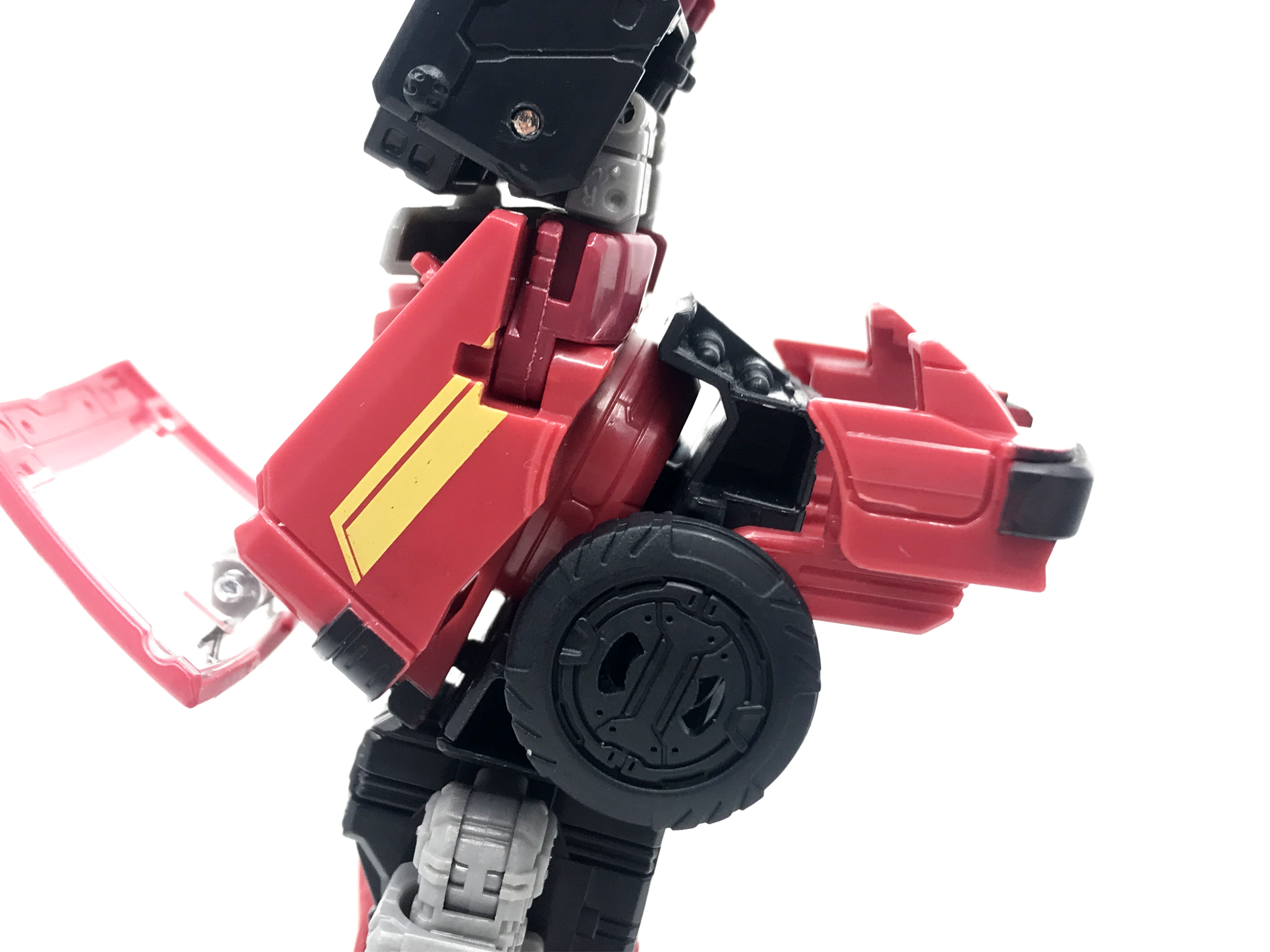 아이언하이드의 경우, 다이아클론 파워드 슈트 제품을 가져온 케이스라 구 완구와 애니메이션 디자인이 상당히 달랐기에 변신 방법 역시 차이 납니다. 그래도 어깨에서 나오는 바퀴나 다리에서 수납된 바퀴 같은 일부 요소는 재현된 편.