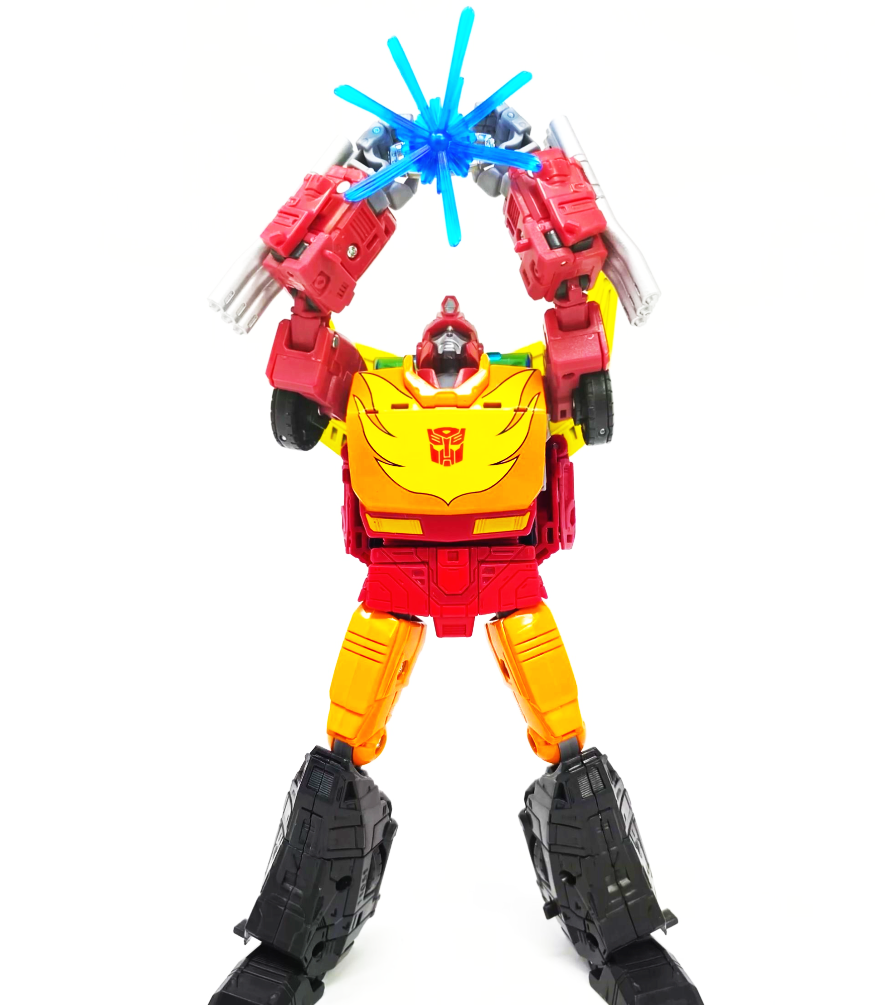 커맨더급으로 가격이 책정됐지만 본체는 큰 보이저급 수준입니다. 트레일러 크기를 조금 더 줄였으면 리더급 정도의 가격대가 나오지 않았을까는 생각도 해보지만, 이 정도면 괜찮은 것 같습니다. 본체가 큰 보이저급 수준이라 타 제품들과 비교해도 잘 어울려요. 옵티머스와의 투샷도 마음에 들지만 갈바트론과의 투샷은 더더욱 마음에 듭니다. 실물을 빨리 보고 싶어요.