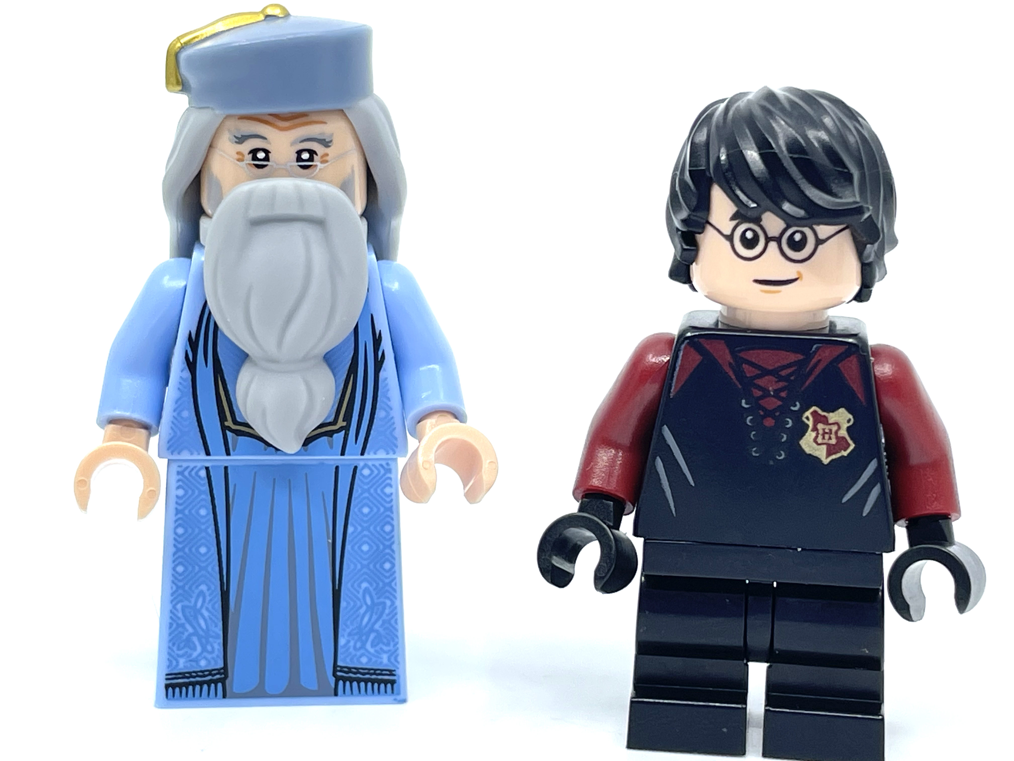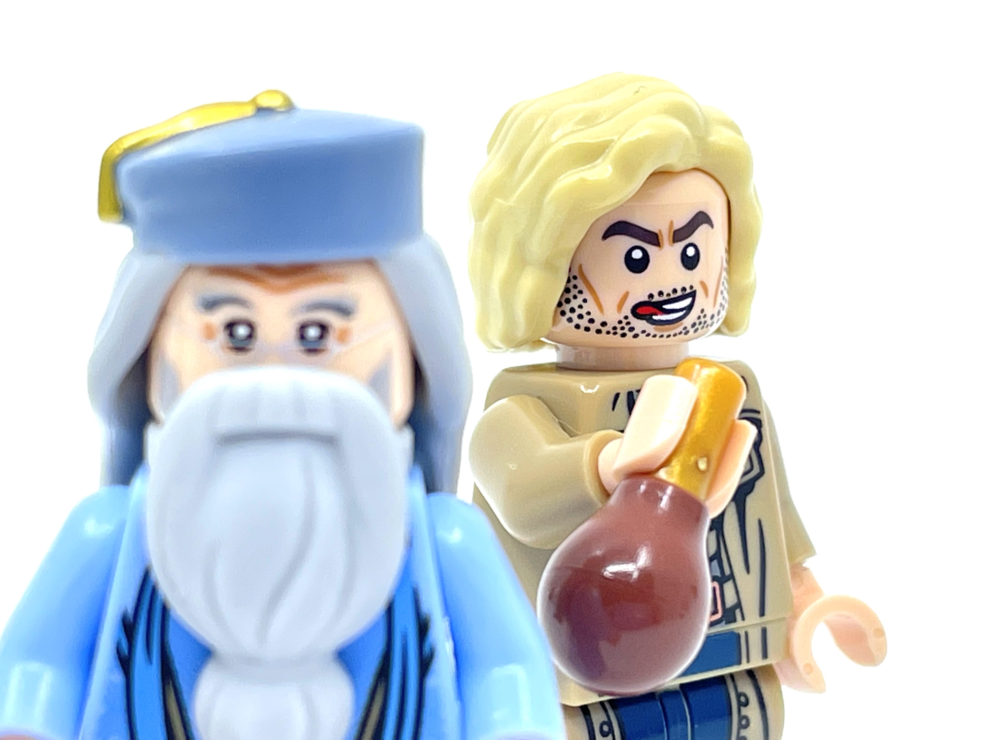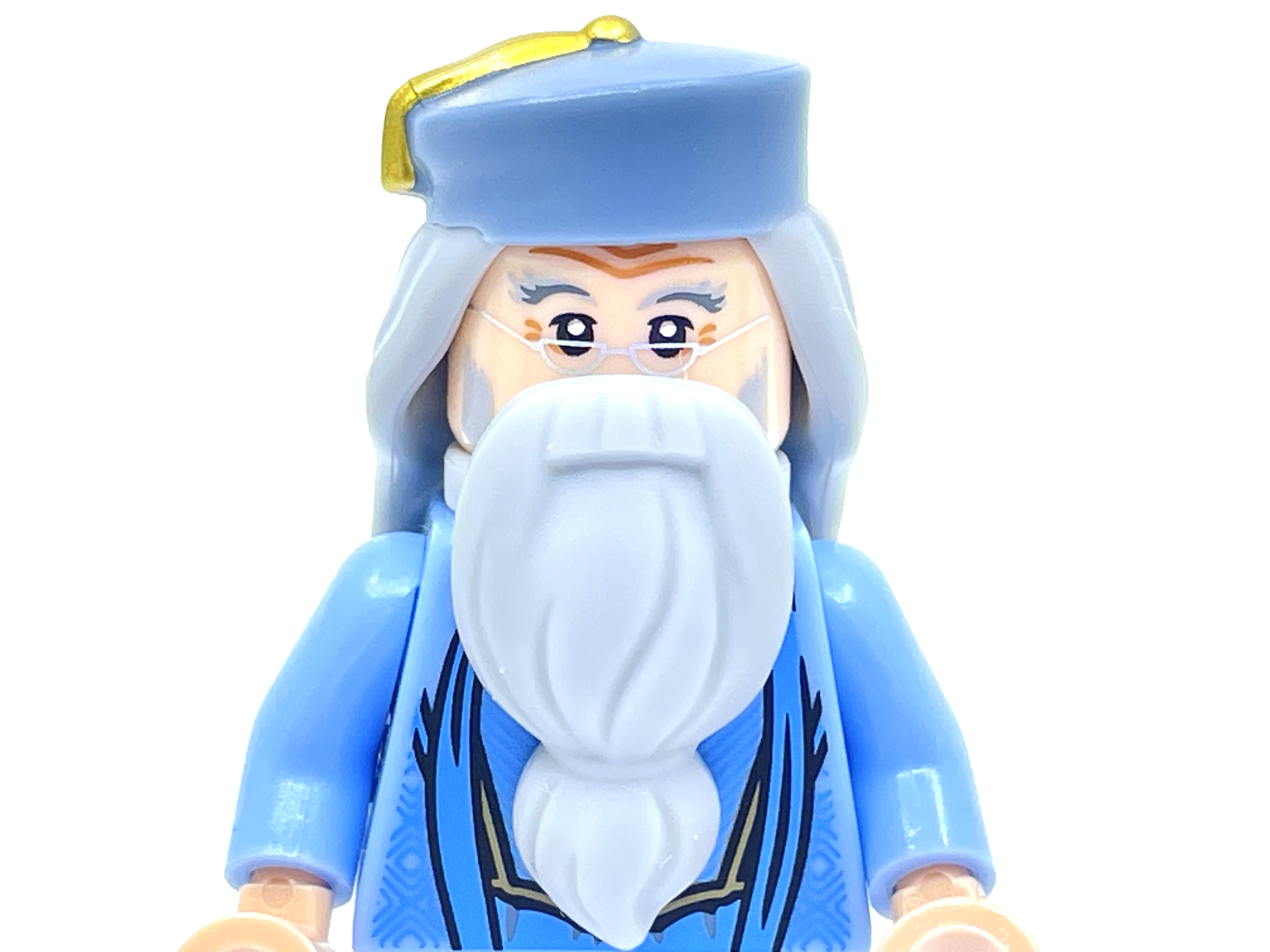 극중에 나온 덤블도어의 모습. 레고 미니피겨의 경우 푸른색이 더욱 짙게 나왔다는 정도를 제외하면 동일합니다.