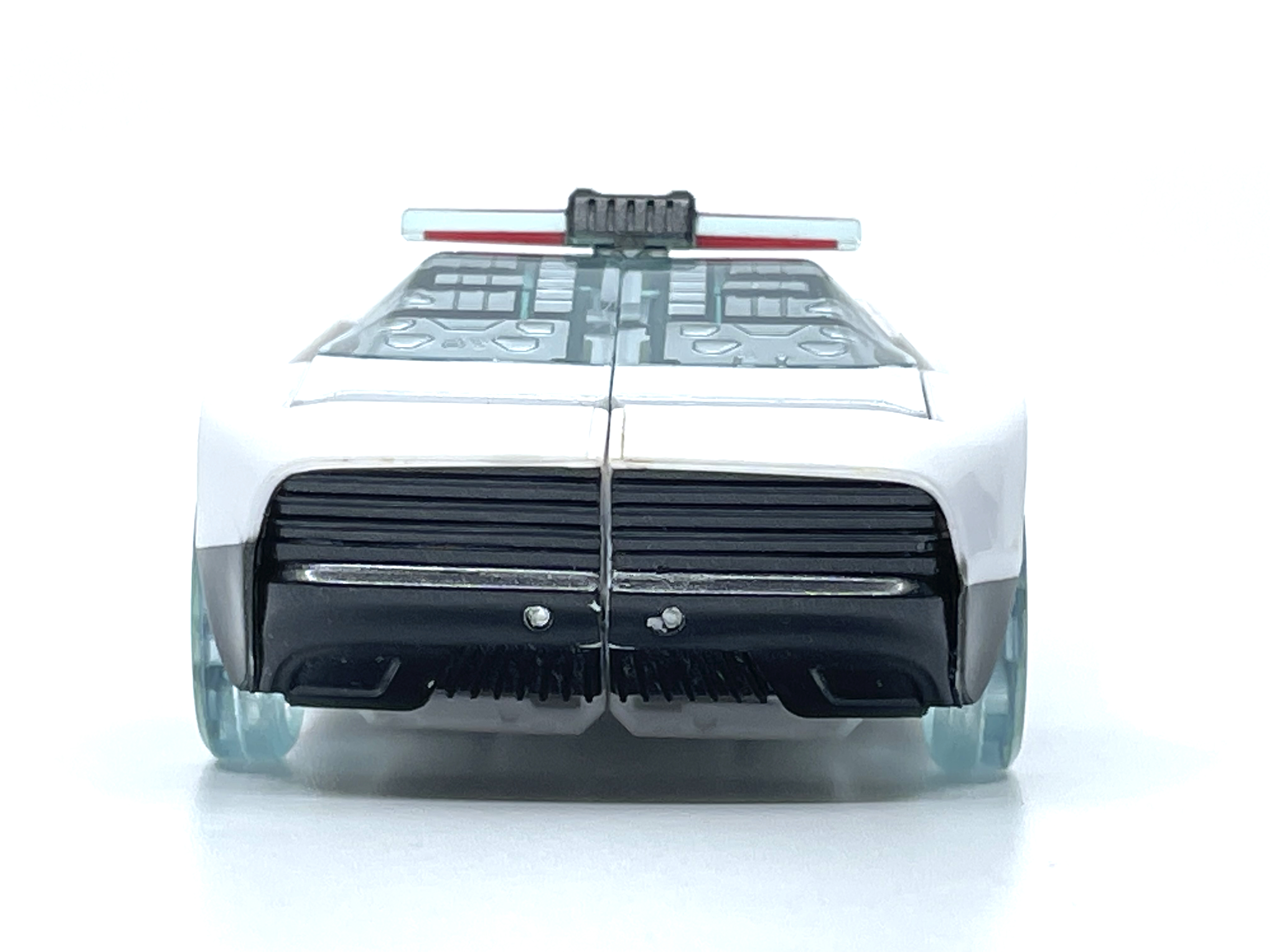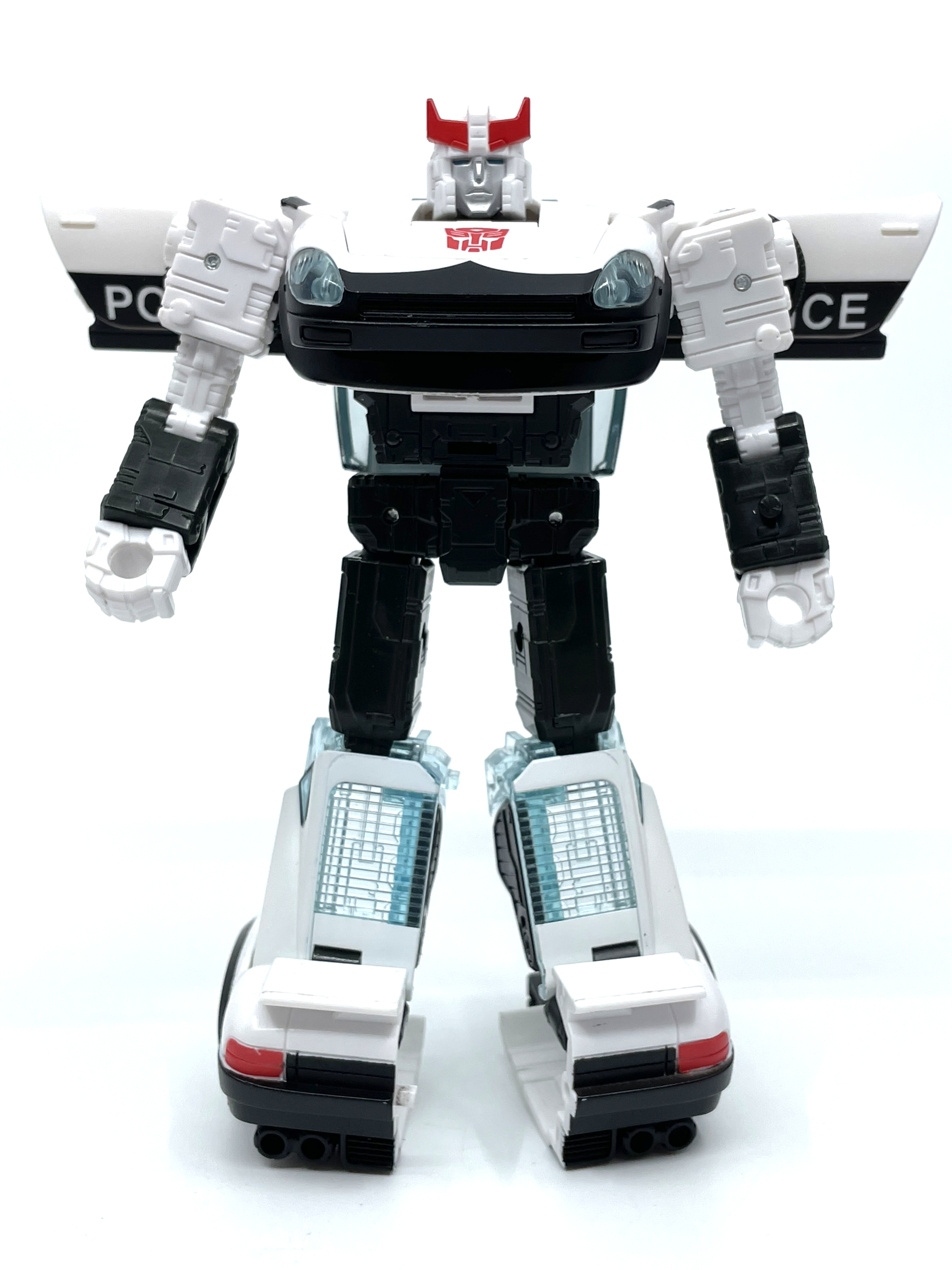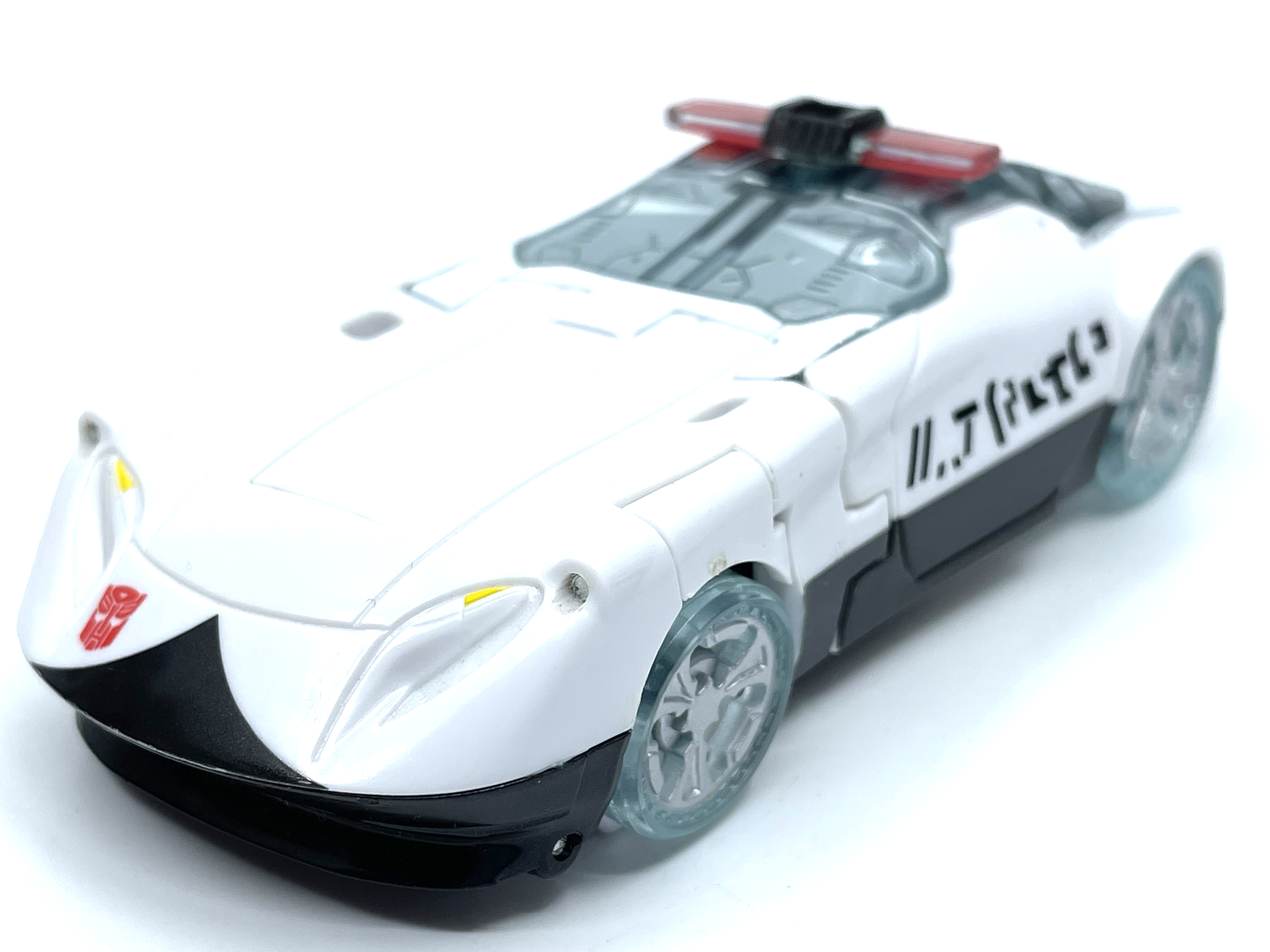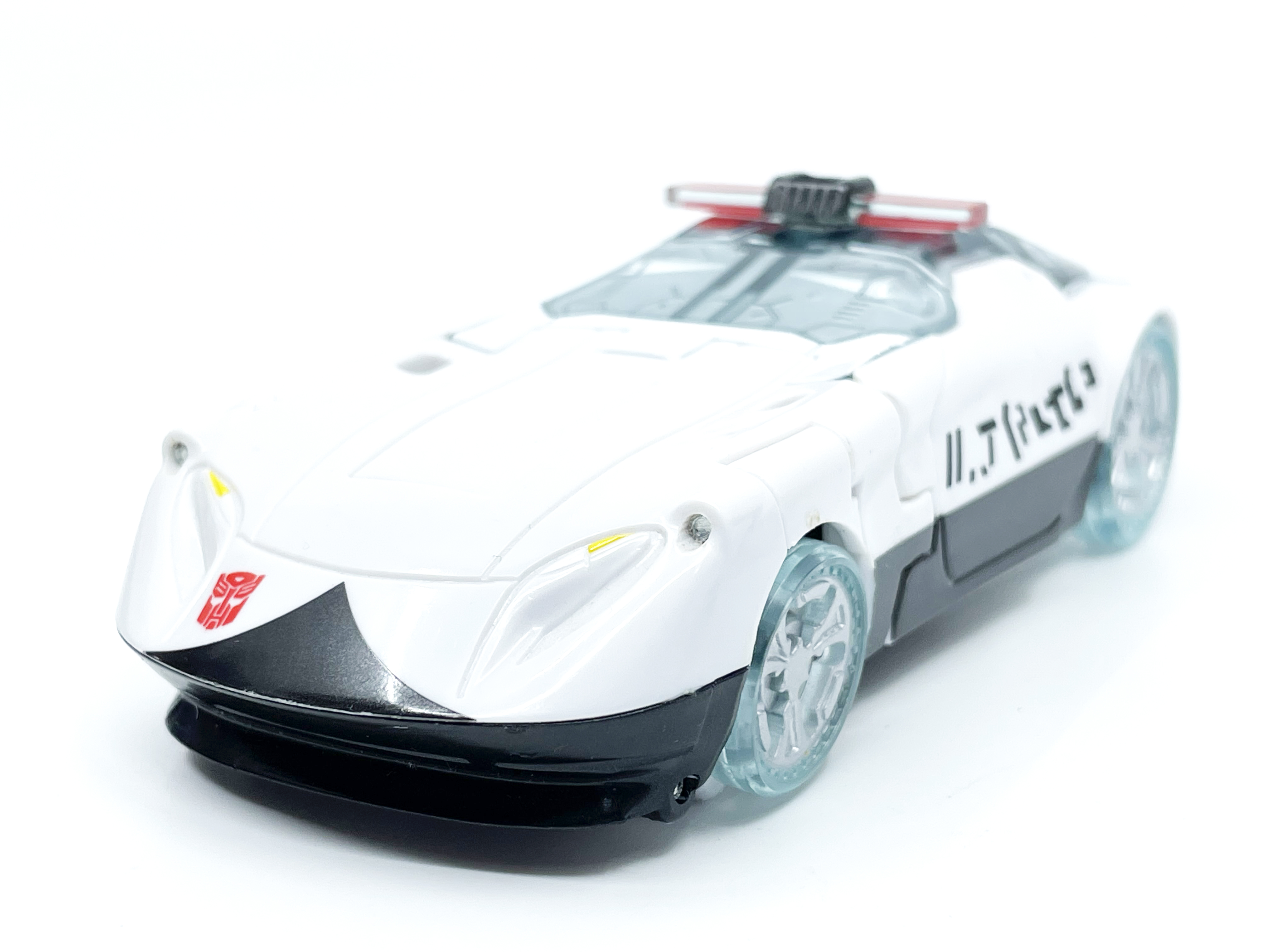 측면에 그려진 문자는 사이버트론어입니다. 프라울에 그려진 문구는 Police 라는 뜻.