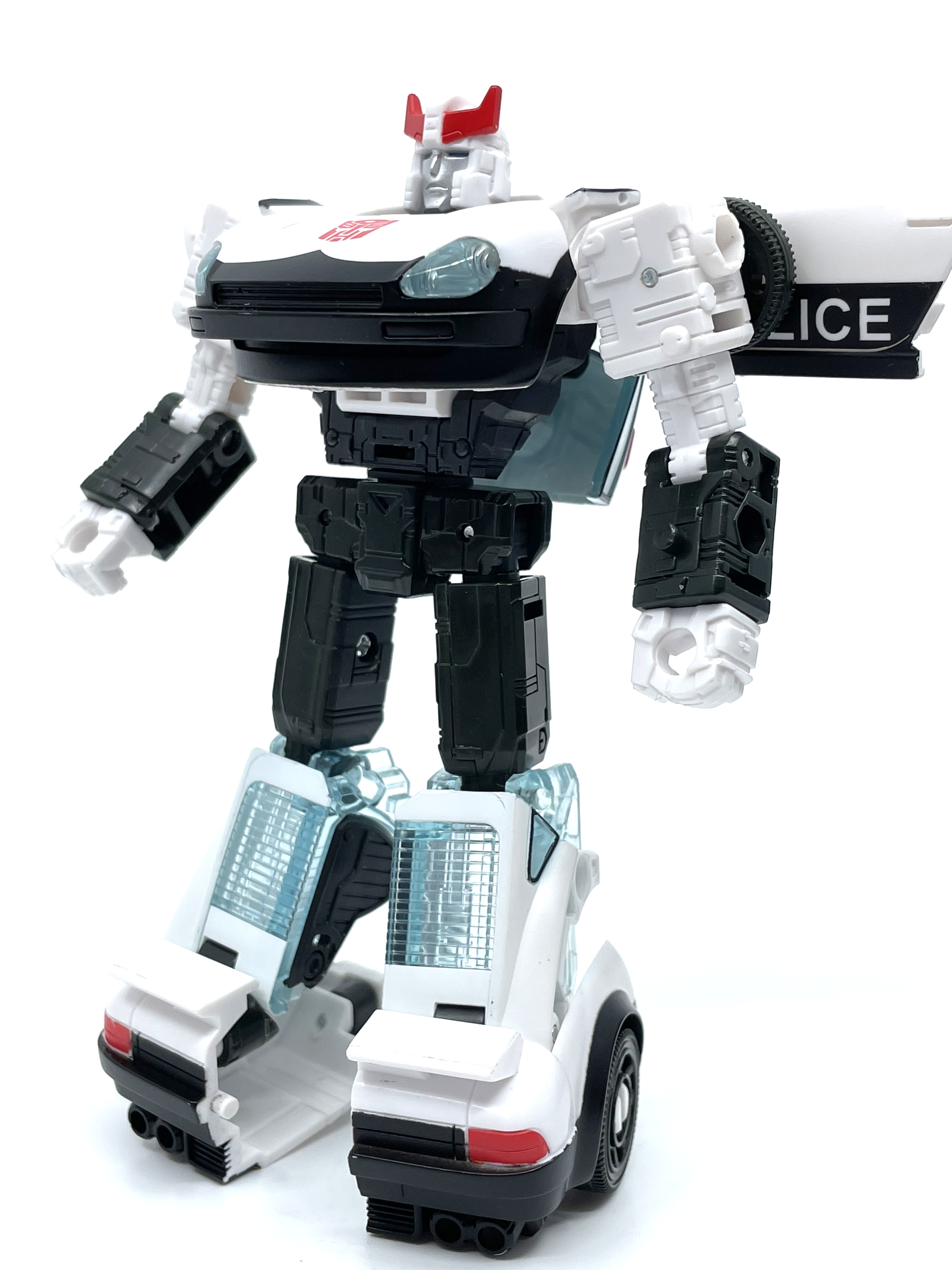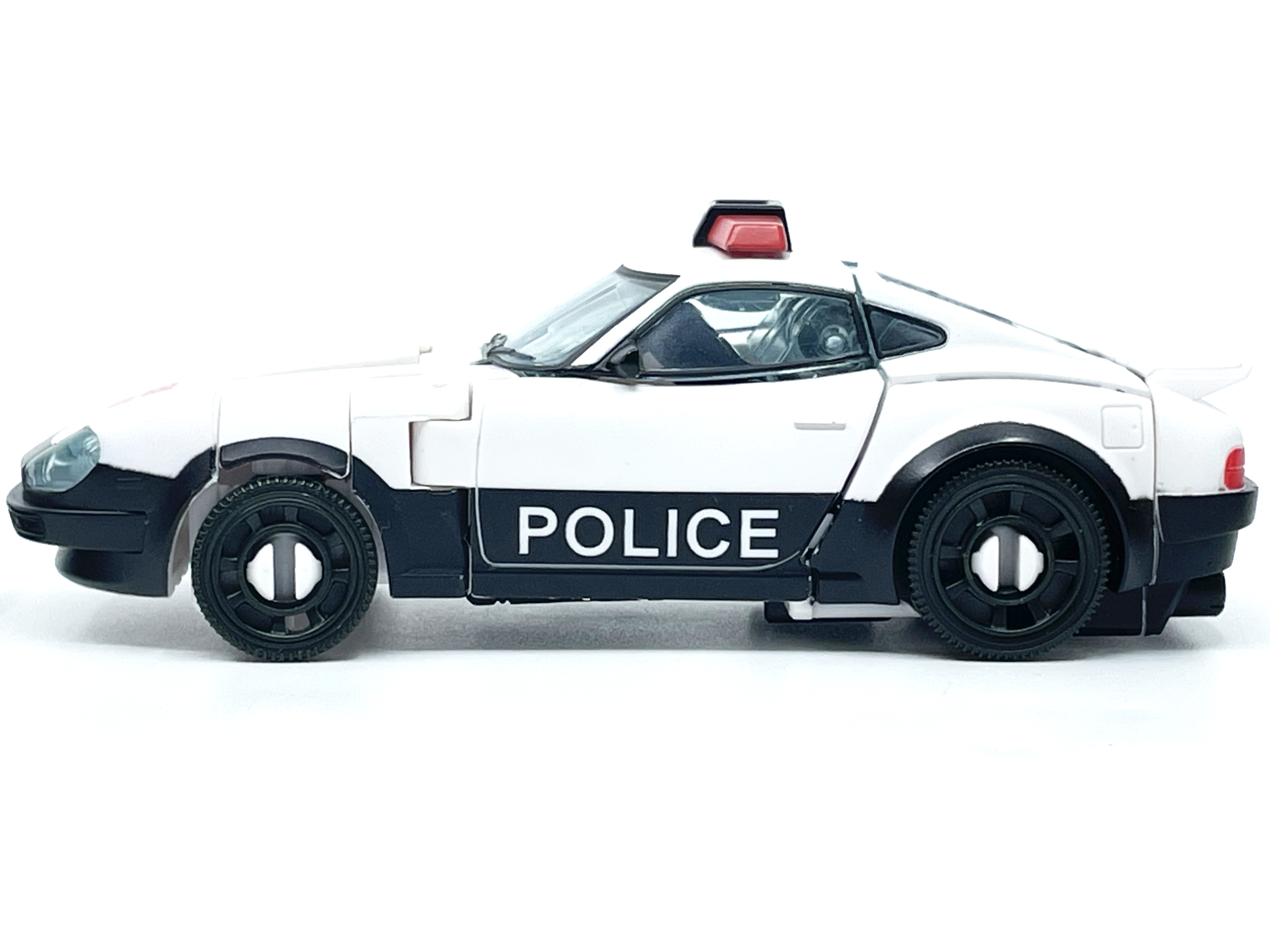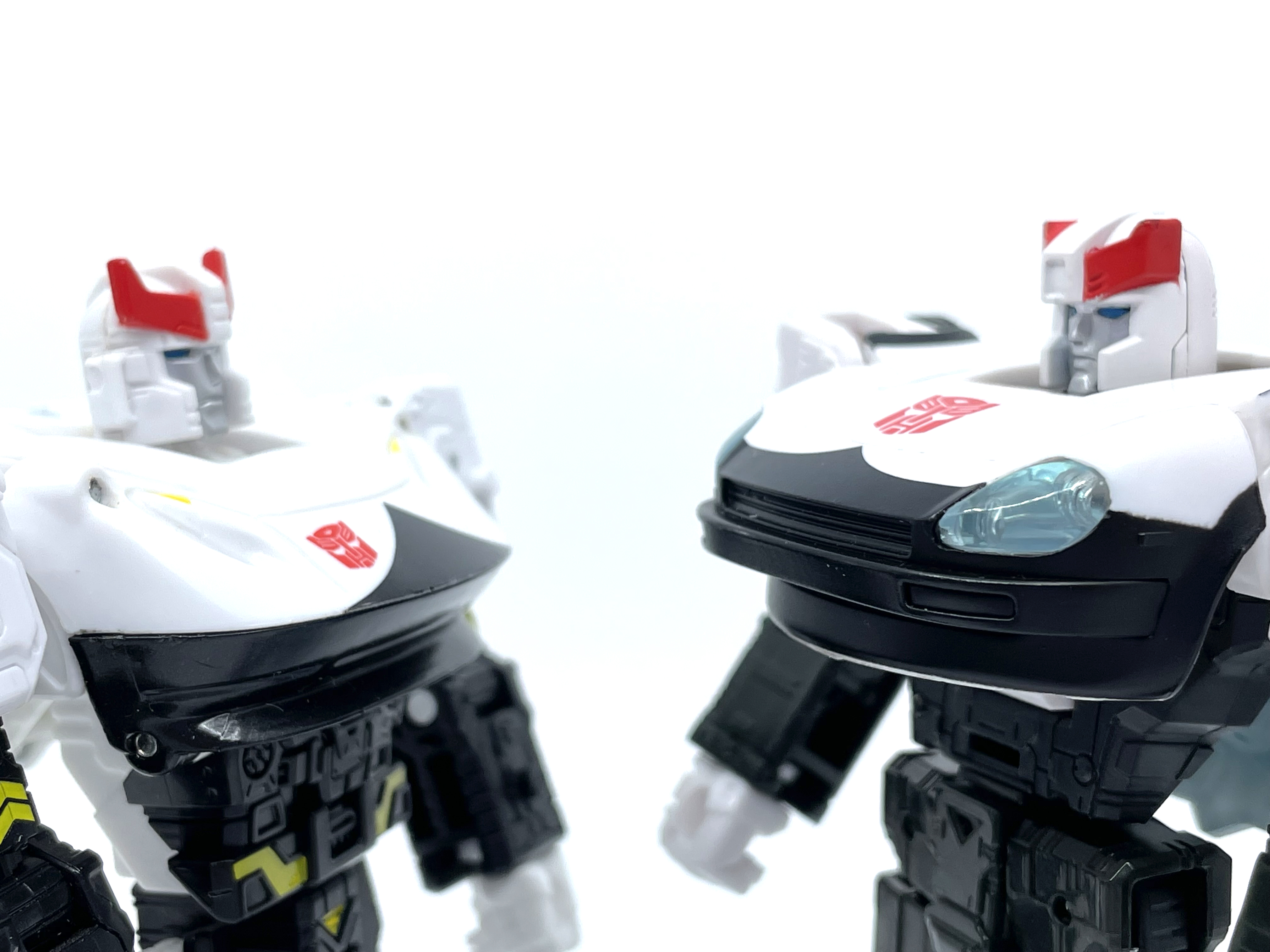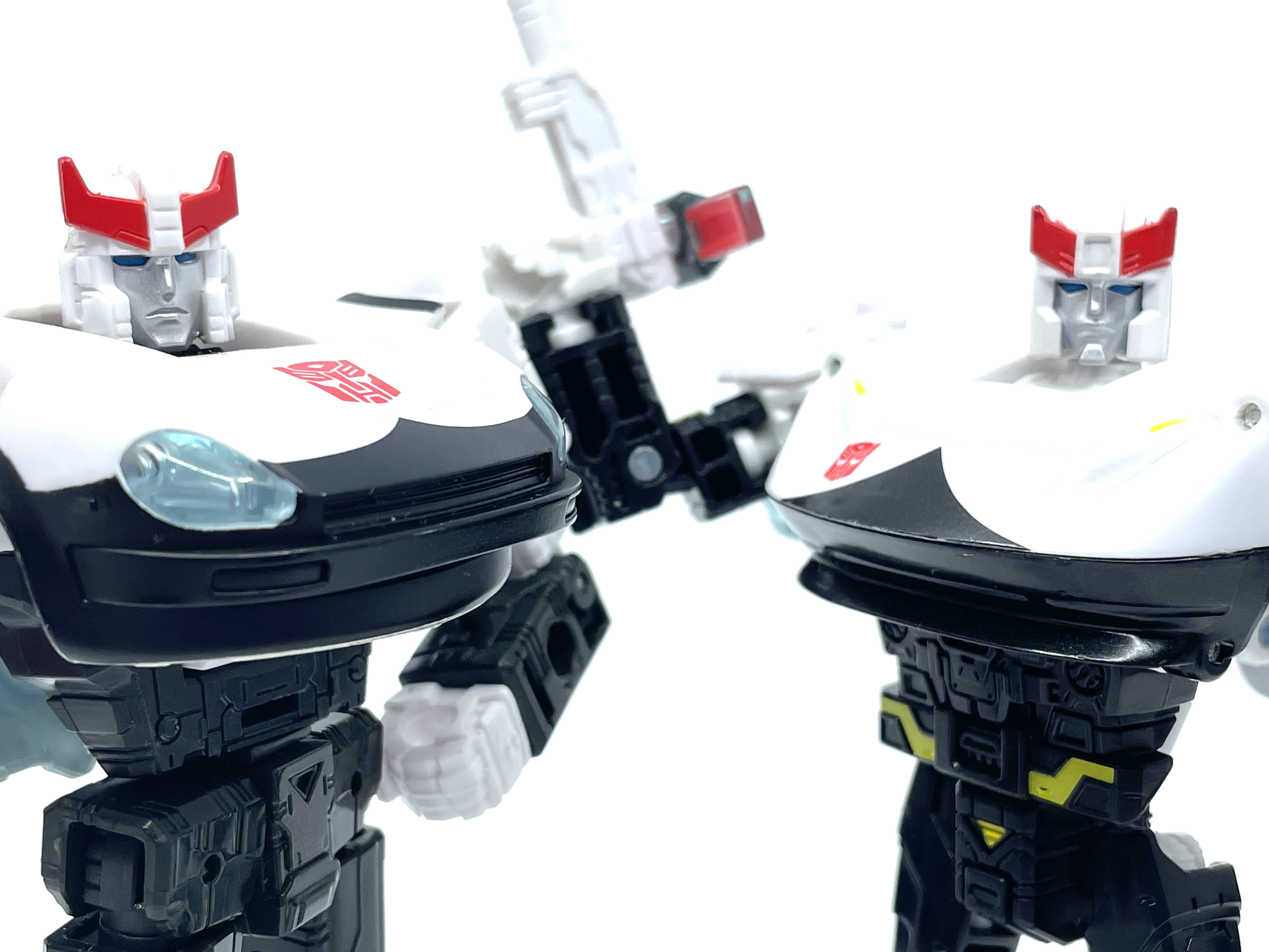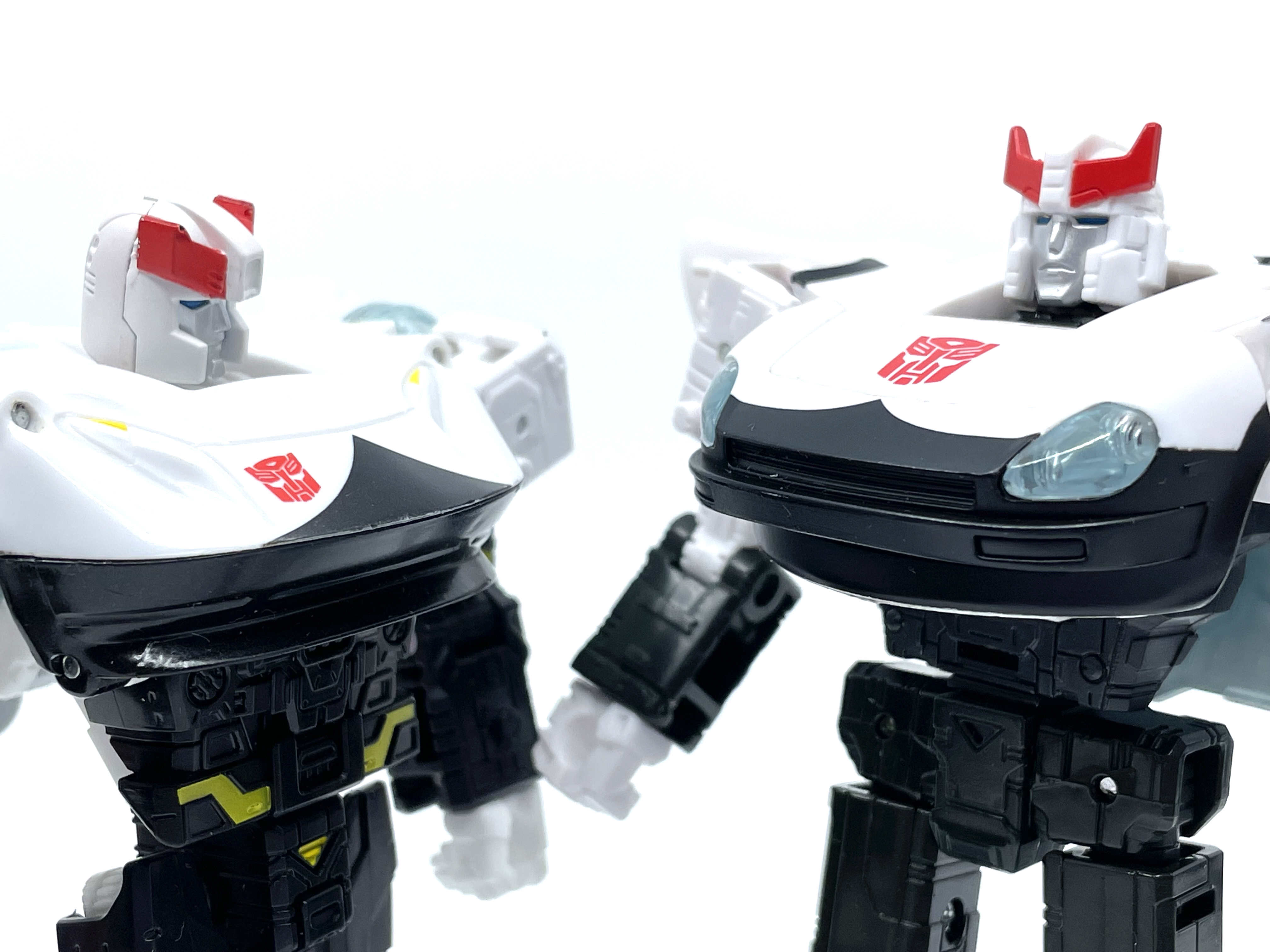 측면 비교. 양 차량 모두 좌우측에 사이버트론어와 영어로 Police라고 적힌 것이 특징.