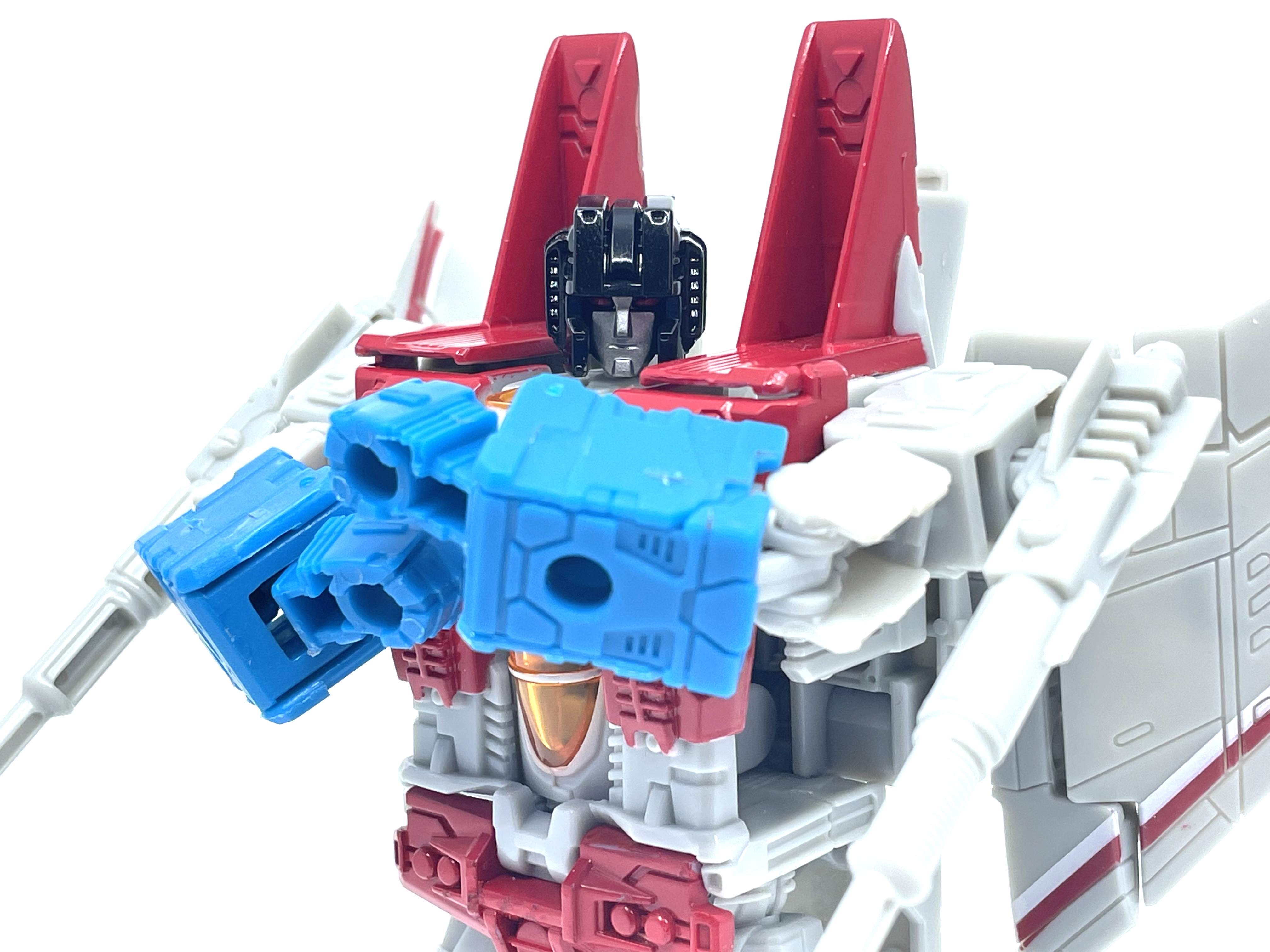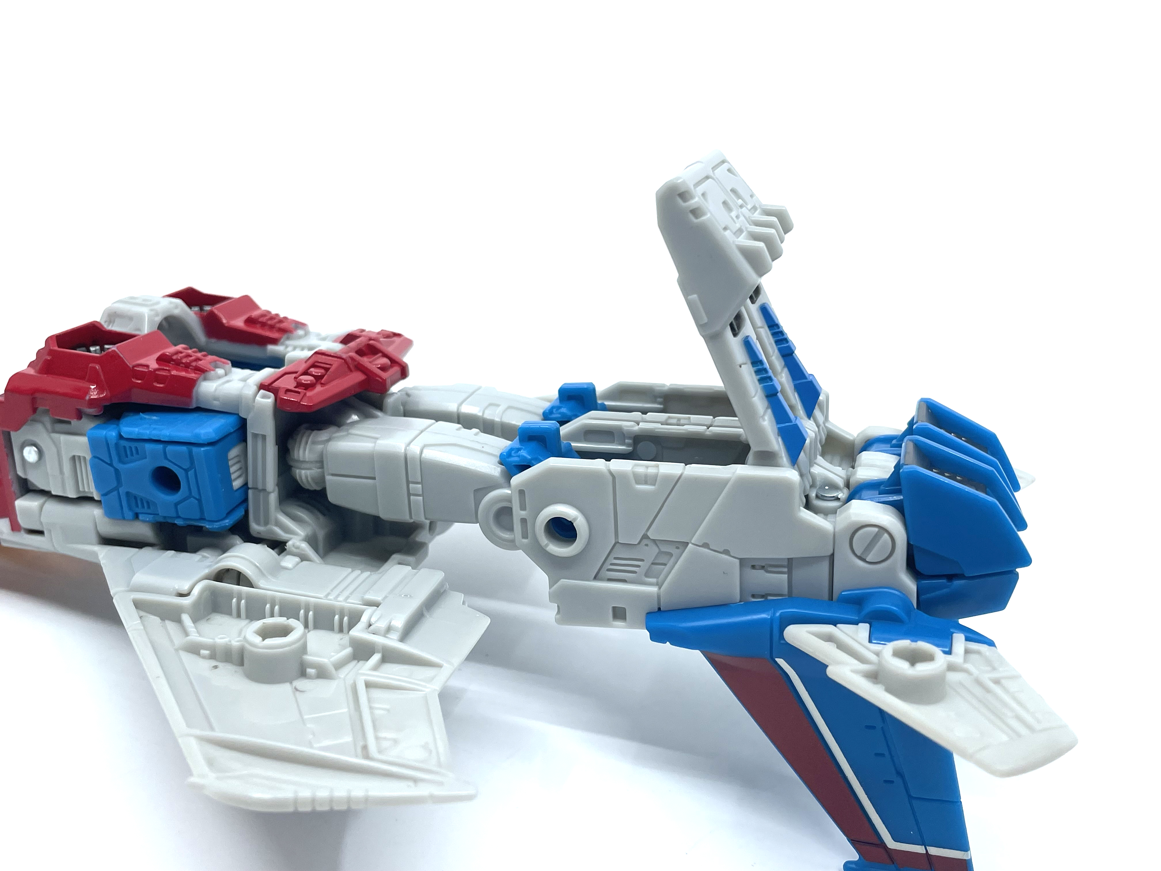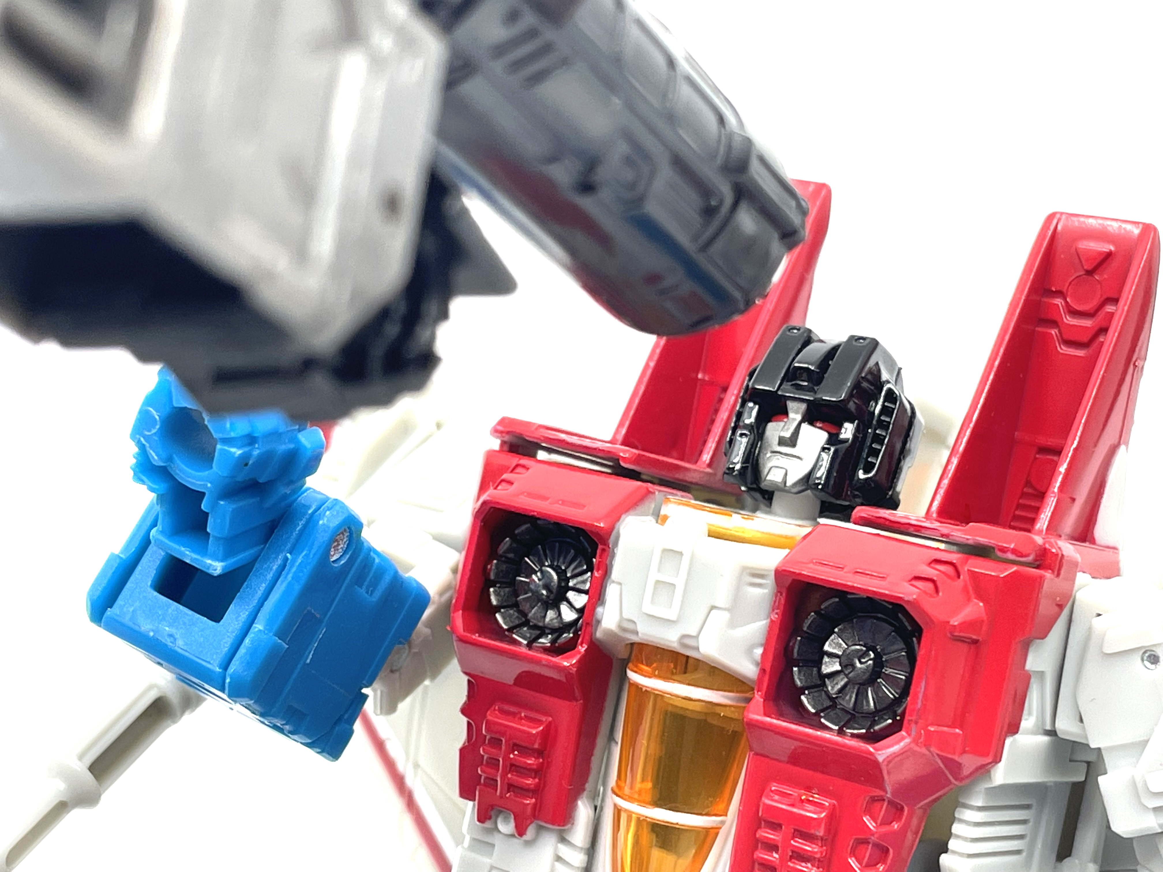 변신 구조 탓에 허리 회전 기믹은 존재하지 않습니다. 시즈 조형 스타스크림은 셸포머인 대신 허리 회전을 비롯한 뛰어난 가동을 보였던 걸 생각하면 조금 아쉬운 모습.