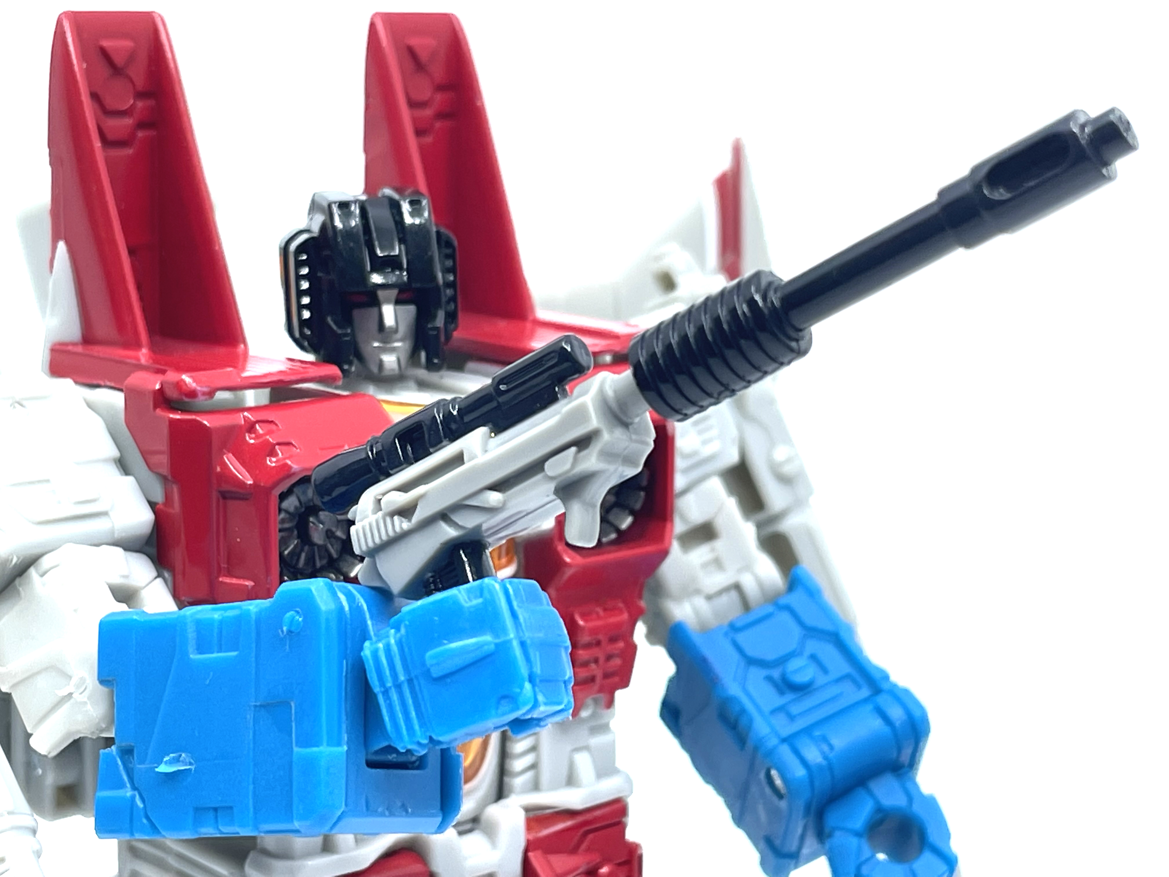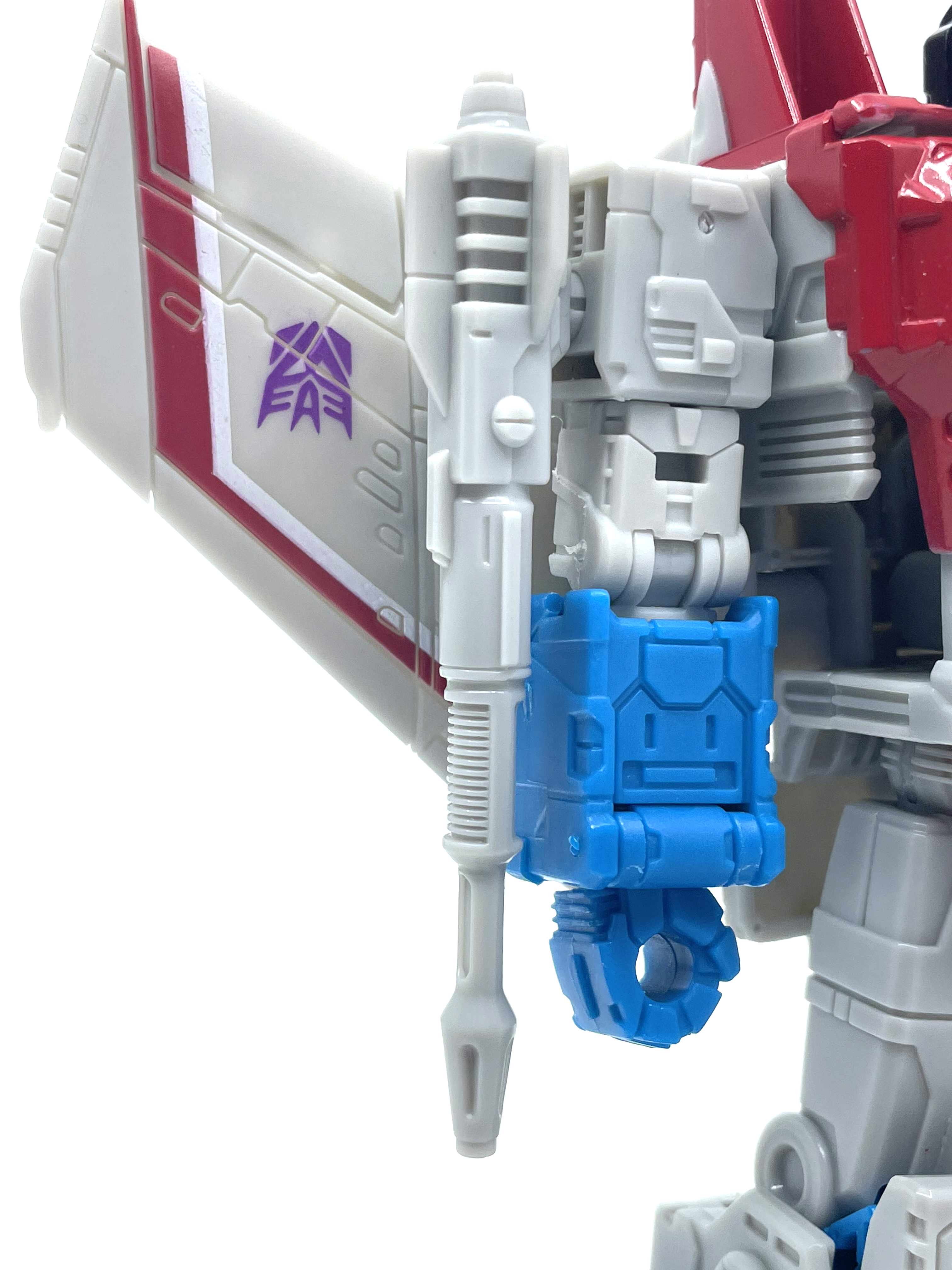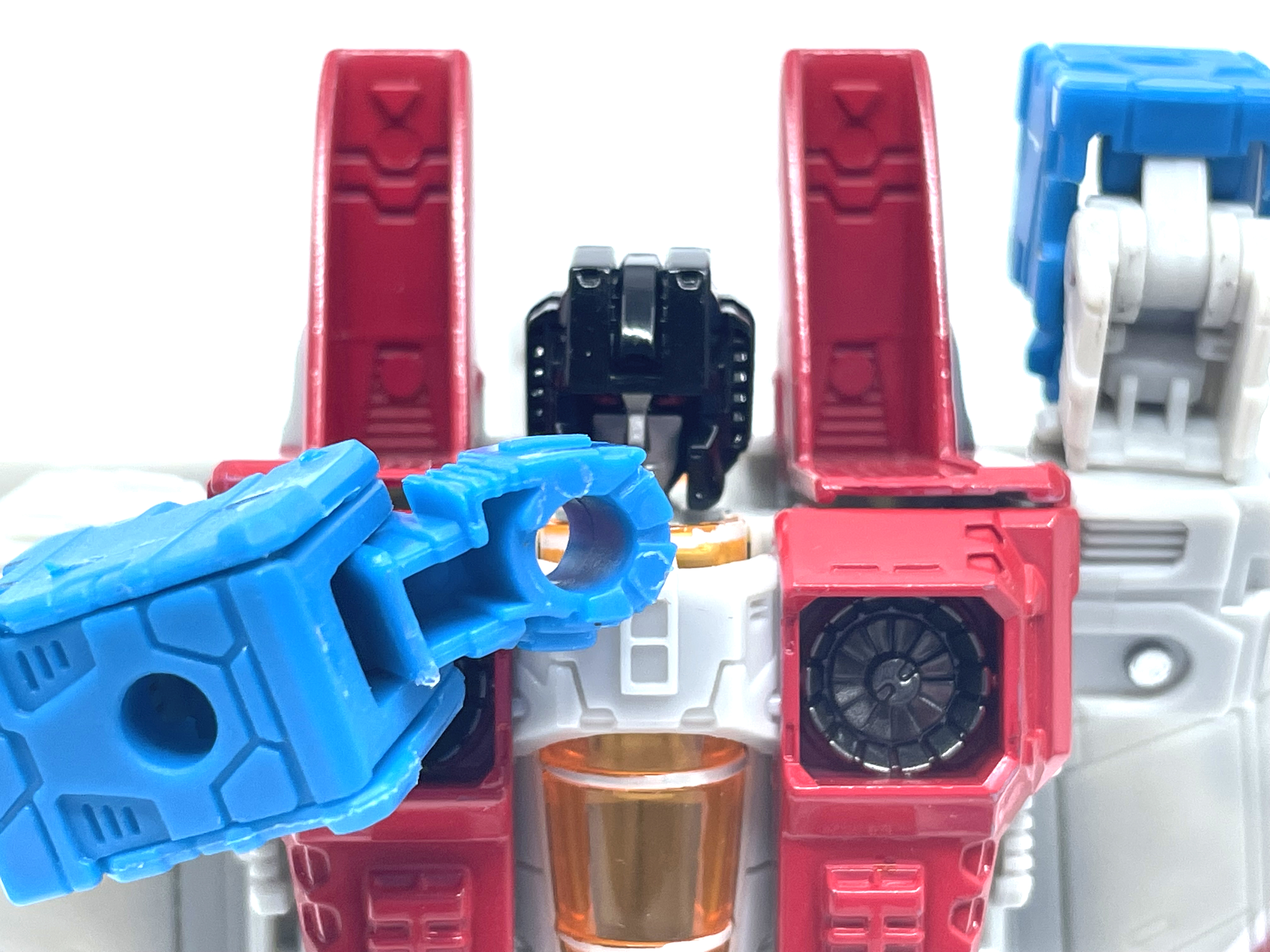 변신 구조 탓에 허리 회전 기믹은 존재하지 않습니다. 시즈 조형 스타스크림은 셸포머인 대신 허리 회전을 비롯한 뛰어난 가동을 보였던 걸 생각하면 조금 아쉬운 모습.