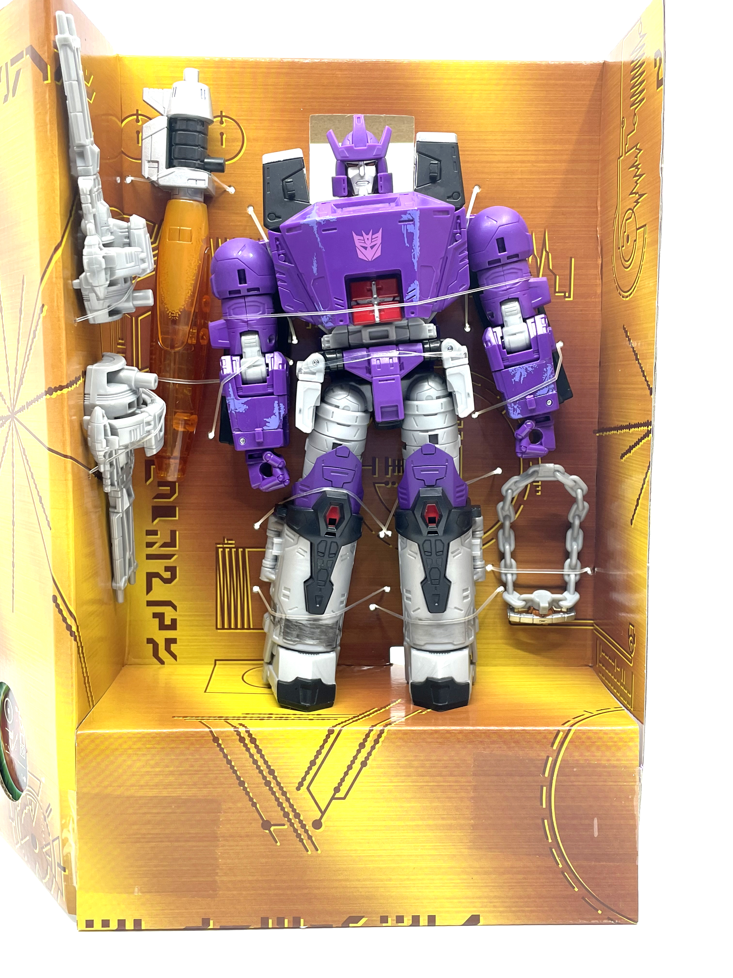 측면엔 갈바트론의 로봇 모드와 비클 모드 일러스트가 그려졌습니다.