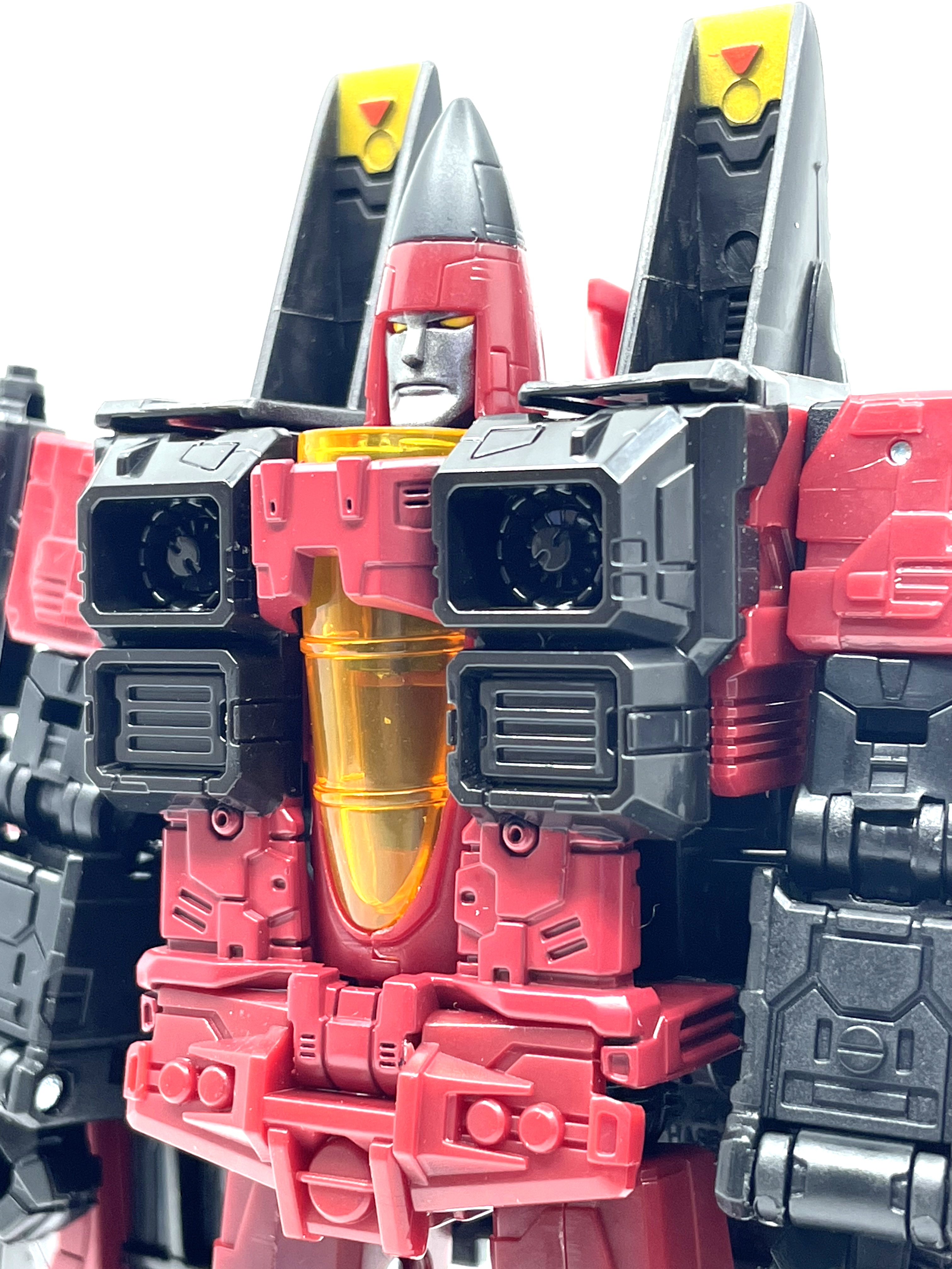 스러스트는 본래 다른 정찰대 엘리트들과 달리 회색 얼굴을 하고 있는데, 어스라이즈 제품에선 다른 애들과 똑같이 어두운 얼굴을 하고 있습니다.