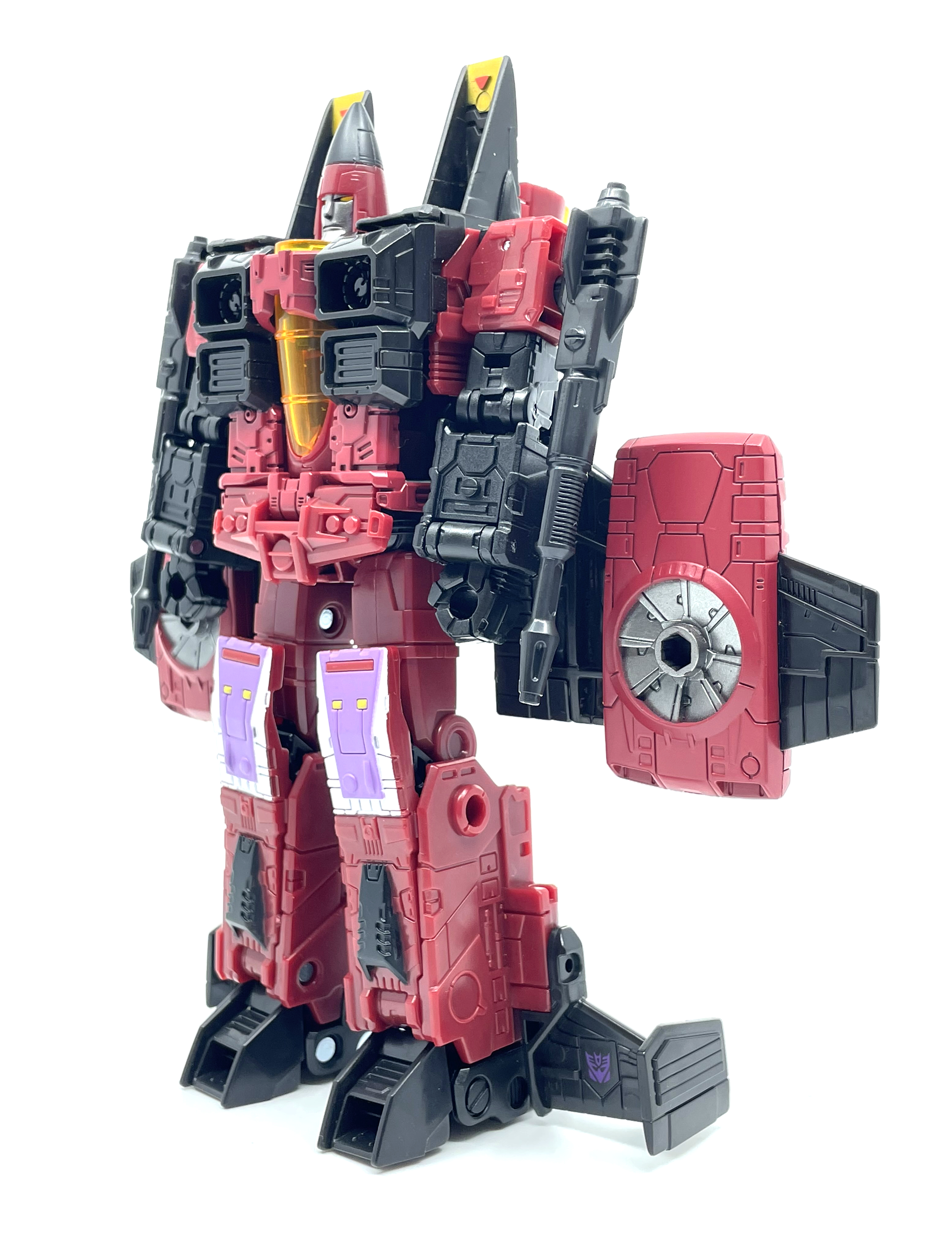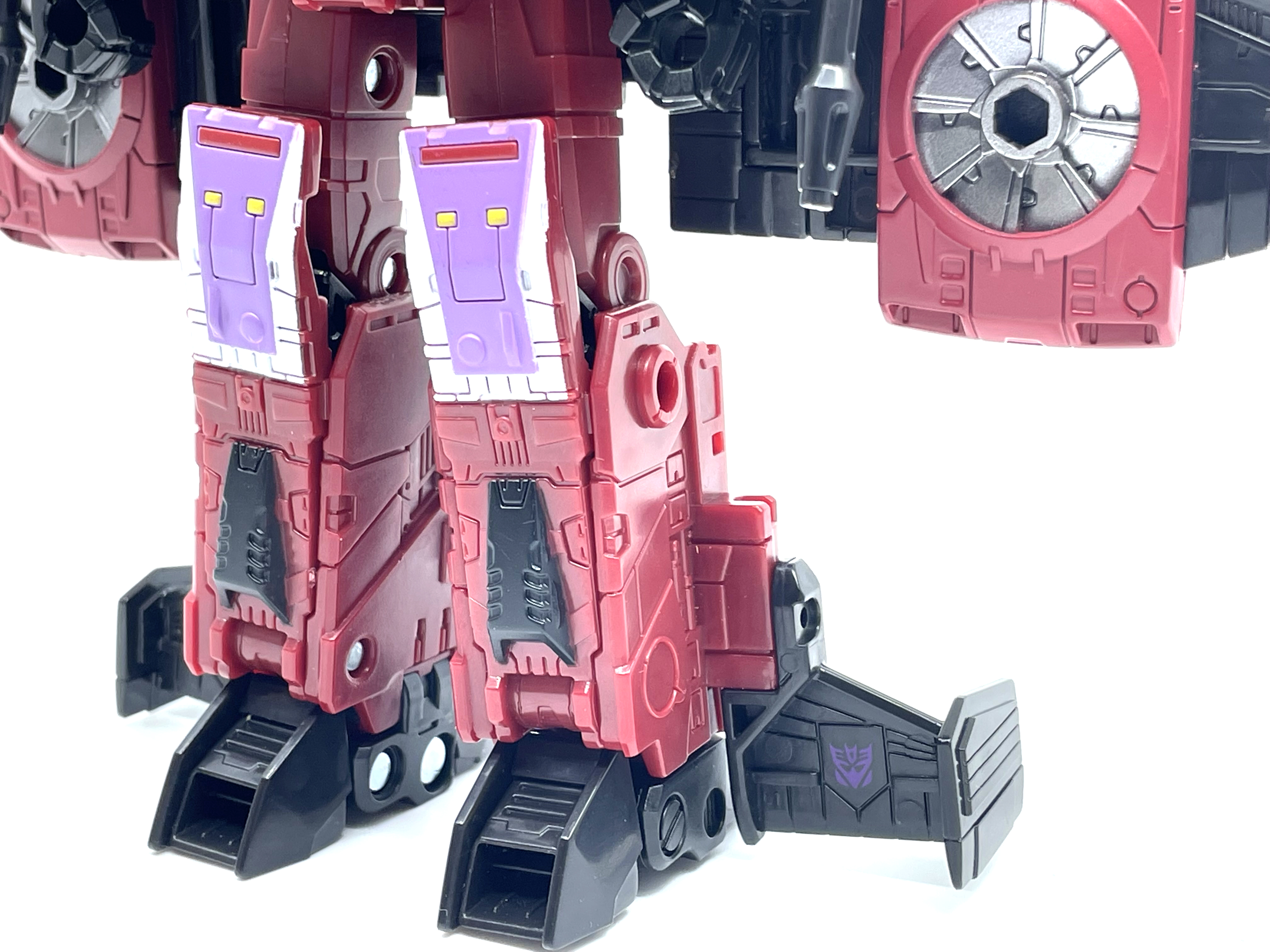 다리에 달린 작은 날개에 디셉티콘 마크를 볼 수 있습니다.