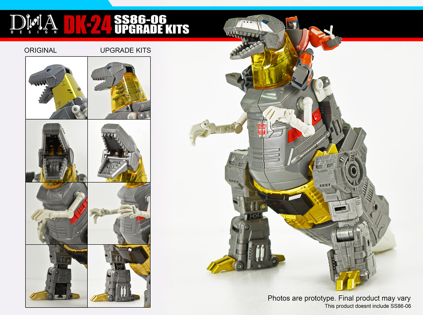 <트랜스포머 스튜디오> 라인으로 발매된 스튜디오 86 그림록은 요 근래 보기 힘든 리더급 트랜스포머로서 훌륭한 완성도를 가진 제품입니다. 다만, 제품에 포함된 윌리가 아쉬운 점이 있고 구판 완구와 달리 에너고 소드가 없다는 점을 단점으로 뽑는 사람들이 많았는데 DNA 디자인에서 이를 보충하기 위한 업그레이드 킷이 출시된다고 합니다.