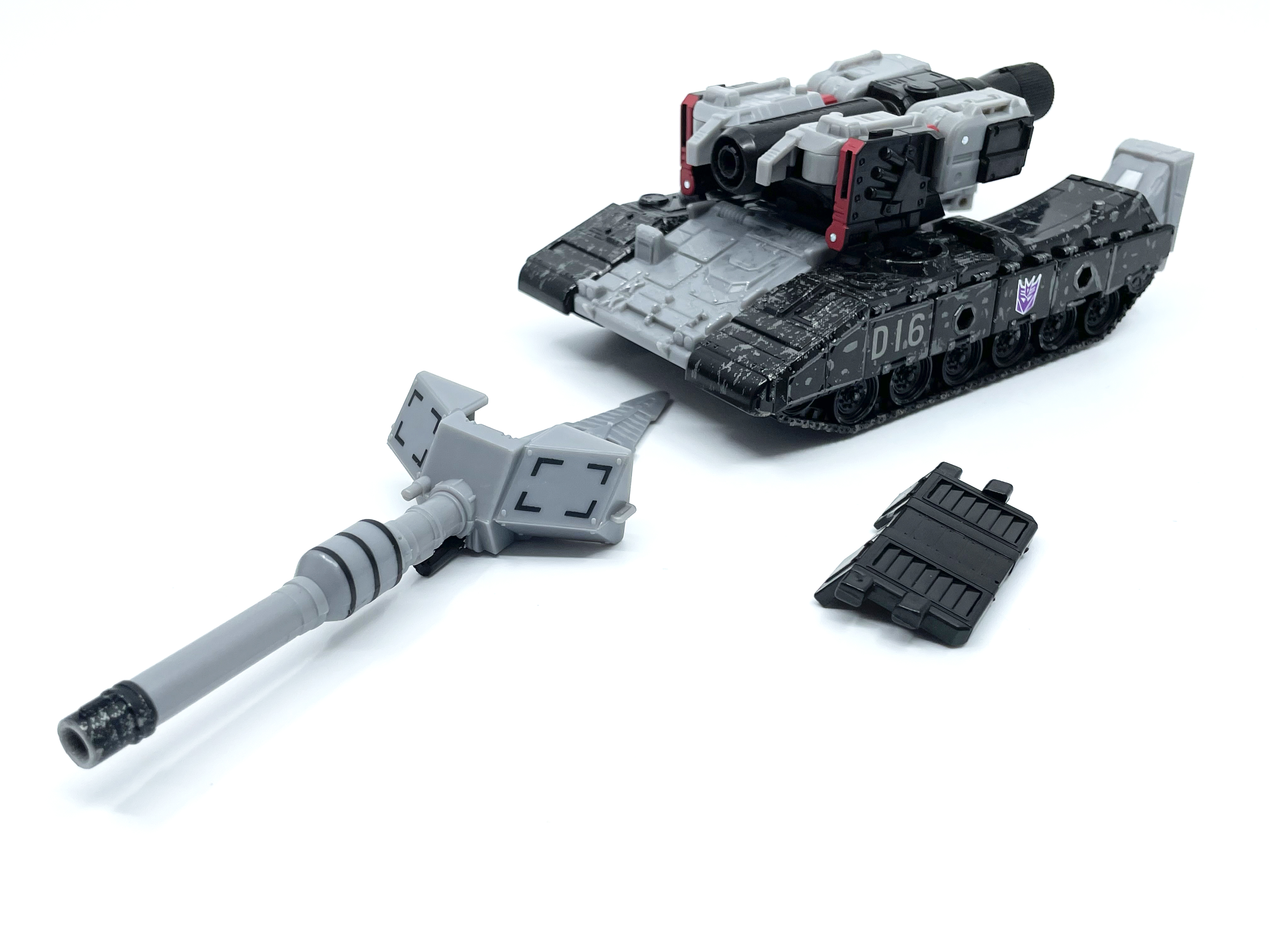 비클 모드 디자인은 G1 애니메이션과 달리 M1 에이브럼스 탱크를 기반으로 했습니다. 물론, 어스라이즈 제품 대부분이 그렇듯이 실제 M1 에이브람스가 아닌 에이브람스를 기반으로한 가상의 탱크입니다. 에이브럼스 탱크는 G2 메가트론 때부터 메가트론의 비클 모드로 사용된 전통이 있는 탱크지요.