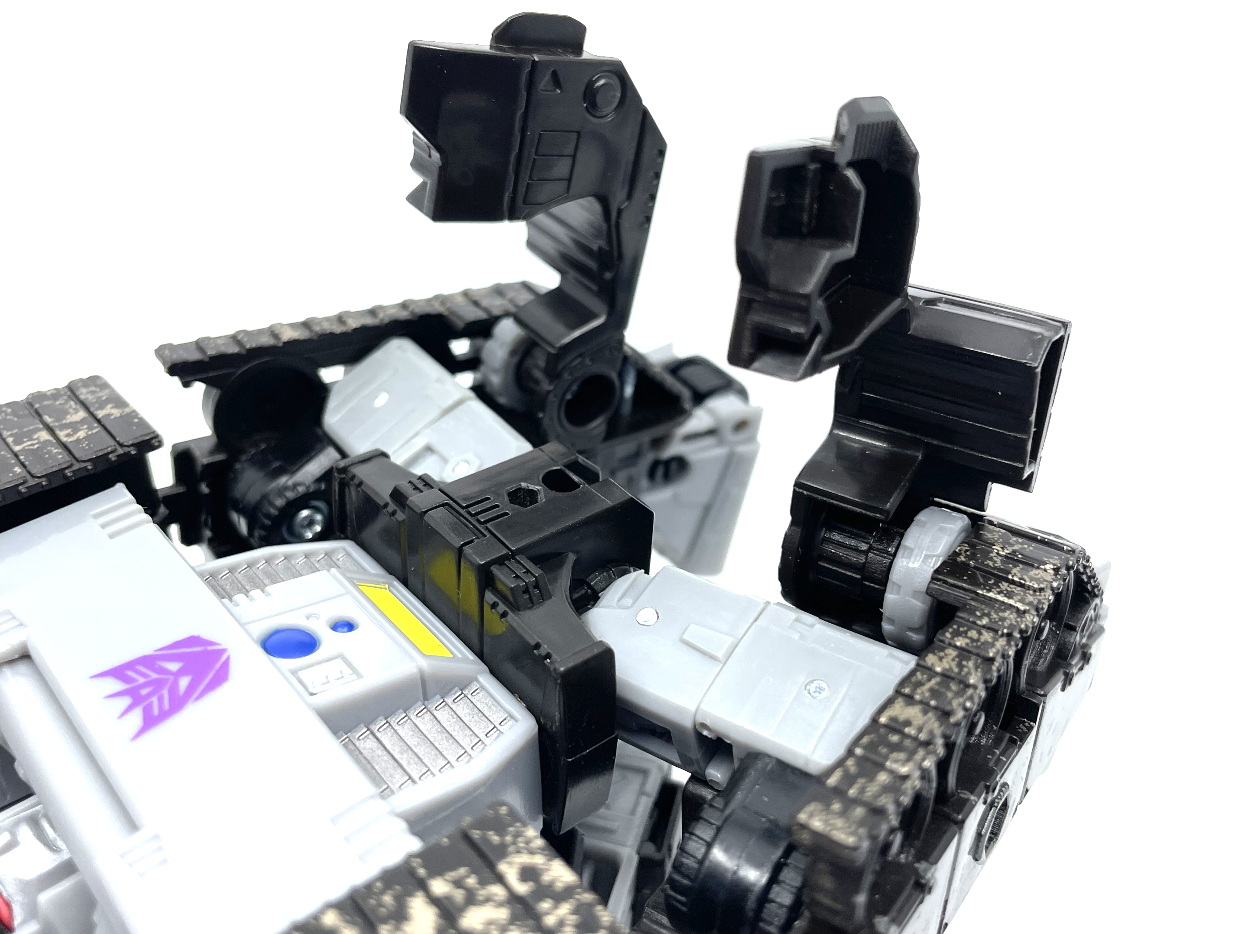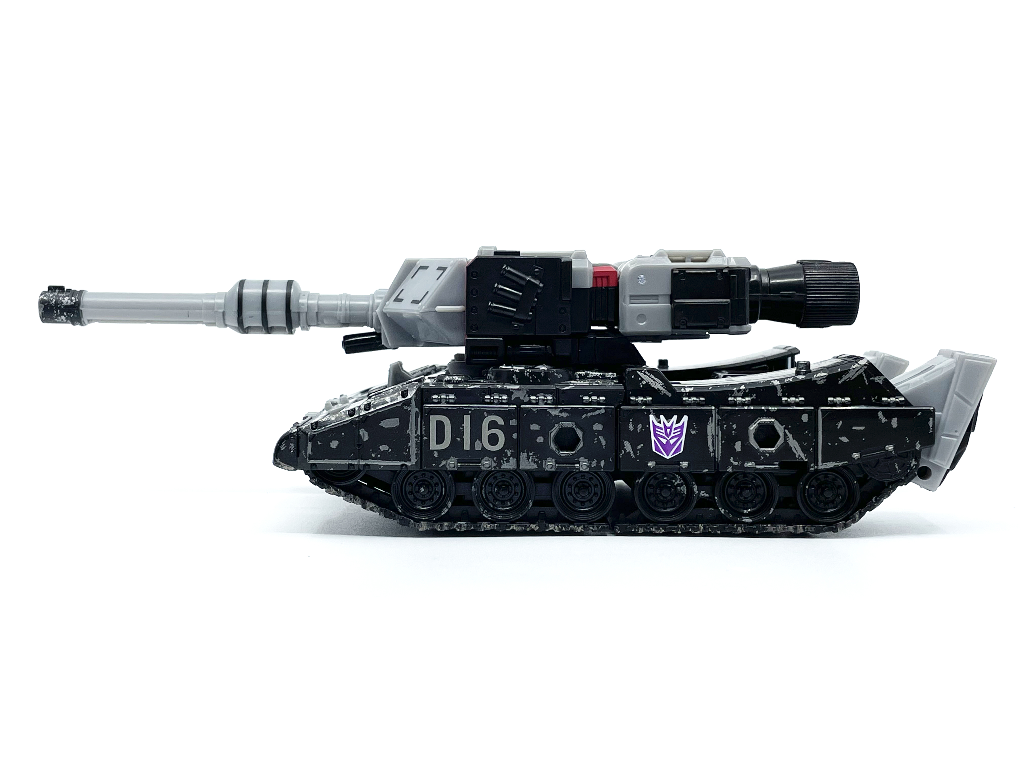 어스라이즈 제품들이 G1 애니메이션을 더욱 닮게 나오듯이, 메가트론 역시 G1 애니메이션과 더더욱 닮은 디자인으로 출시됐습니다. 비클 모드가 달라서 등에 달리는 총구가 없고, 옆구리에 빨간칠이 되지 않았지만 재현도가 무척 높은 편입니다.